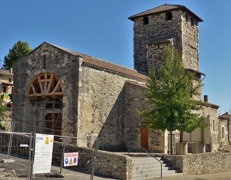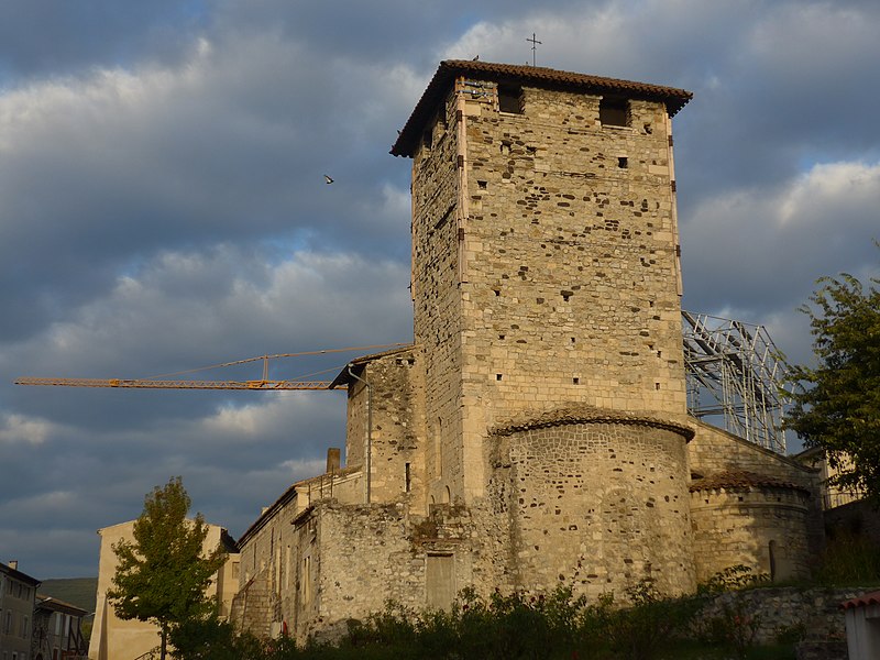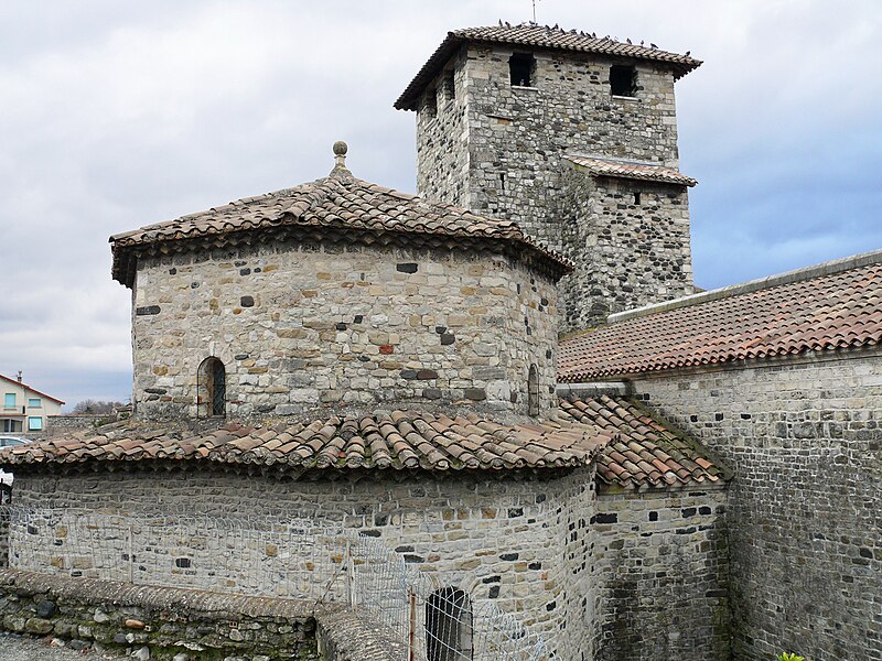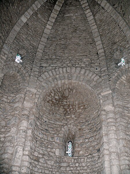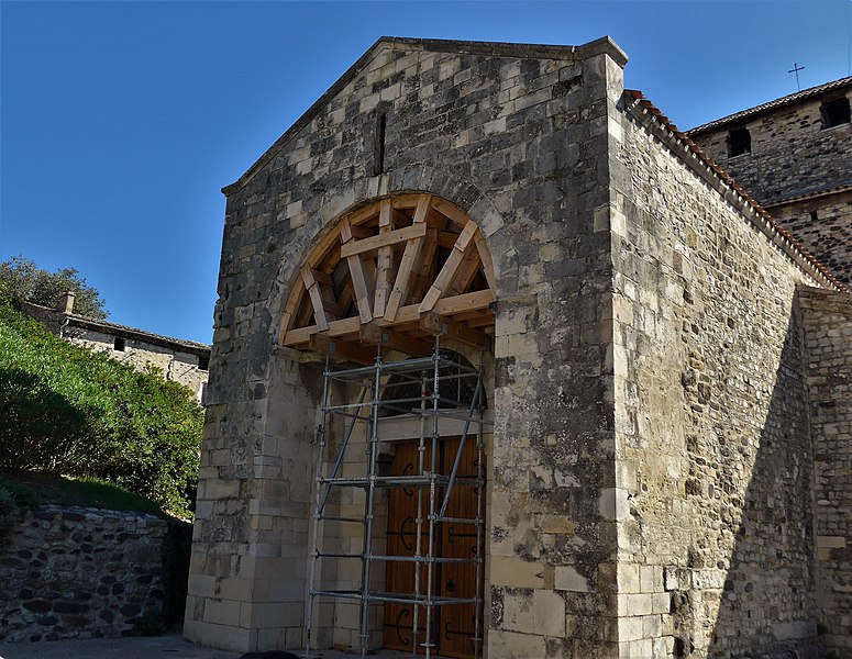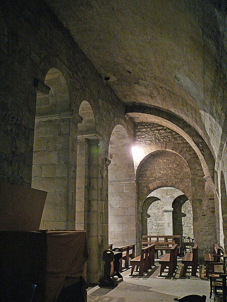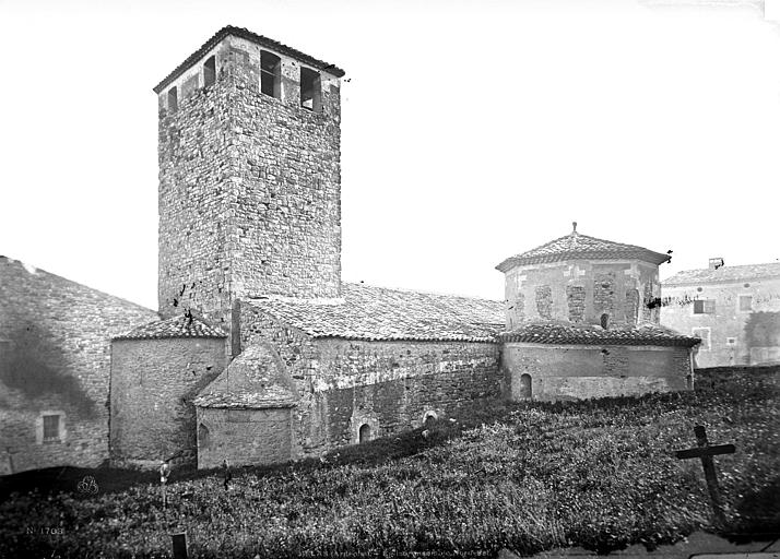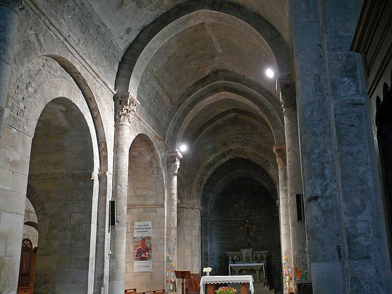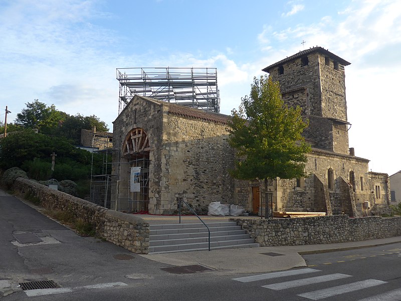 L'église comporte trois nefs. La nef nord, la plus ancienne et peut‑être établie sur les fondations du monastère primitif, date du XIe siècle ; elle présente une abside en cul‑de‑four, des bandes lombardes, des tombes sous dallage et une voûte en demi‑berceau. La nef centrale, du XIIe siècle, compte cinq travées voûtées en berceau brisé ; les quatre premières travées sont attribuées au début du XIIe siècle et la cinquième, jouxtant l'abside, est couverte par une coupole octogonale sur trompe qui porte le clocher ; un escalier à vis placé sur le flanc sud dessert ce clocher. Les chapiteaux de la nef centrale sont ornés, dont deux historiés représentant le sacrifice d'Abraham et la pesée des âmes ; on y observe aussi la représentation d'un poisson, peut‑être un rappel de l'ichtus. Le bas‑côté sud est une reconstruction du XIXe siècle. Le plan romain de l'ensemble est comparable à celui d'autres églises de la vallée du Rhône.