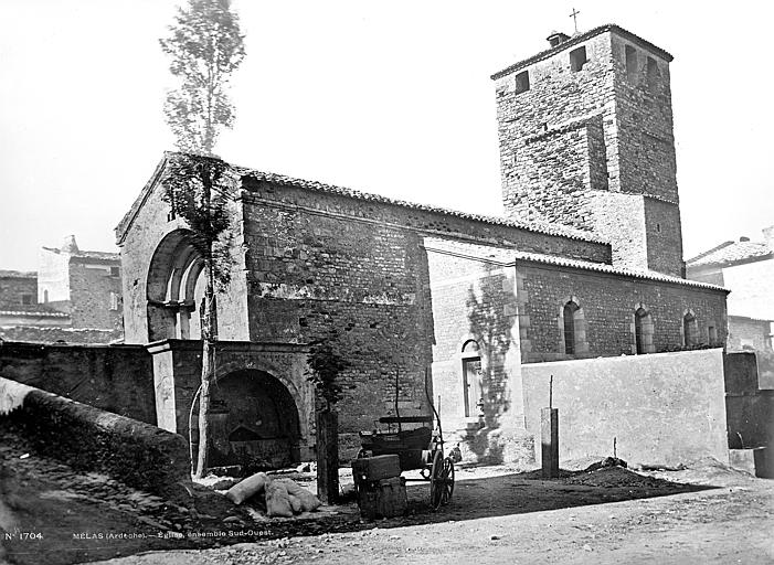 L'église Saint-Étienne de Mélas se situe dans le quartier de Mélas, sur la commune du Teil (Ardèche, Auvergne-Rhône-Alpes). Classée au titre des monuments historiques depuis 1875, elle occupe le premier lieu de peuplement de la commune, le long de l'ancienne voie romaine reliant Nîmes à Lyon par Alba. Une tradition et des documents anciens font état de la fondation d'un monastère de femmes dédié à saint Étienne et saint Saturnin, attribuée à Frédégonde vers 550 et mentionnée dans la « charta vetus » rédigée autour de 950 ; la filiation de ce monastère reste toutefois inconnue. Des mentions ultérieures la citent en 1275 sous le nom d'« Ecclesia de Malacio », puis comme prieuré au XIVe siècle, et son rattachement à l'abbaye de Cruas n'est pas daté avec certitude. Une hypothèse ancienne faisant de Mélas un castrum romain refuge de l'évêque d'Alba a été proposée au XIXe siècle mais est aujourd'hui rejetée.