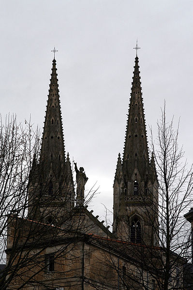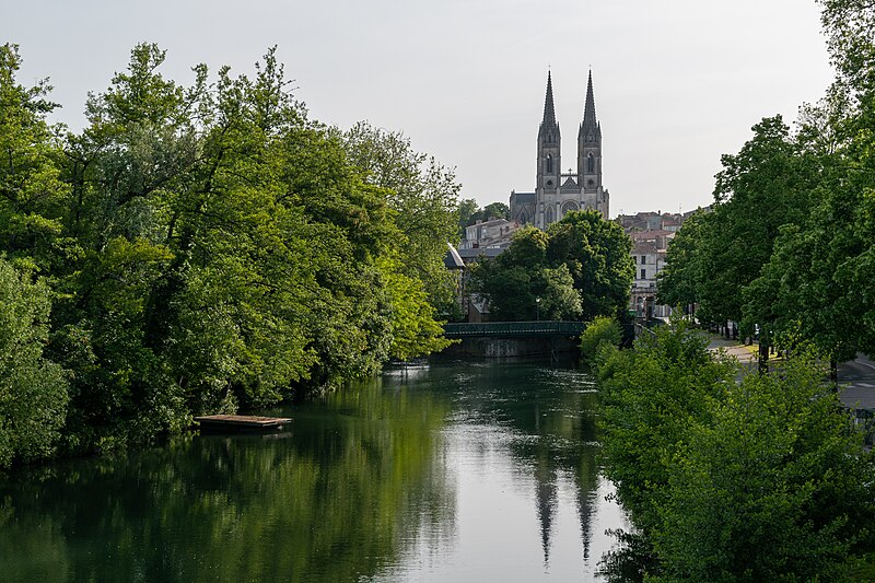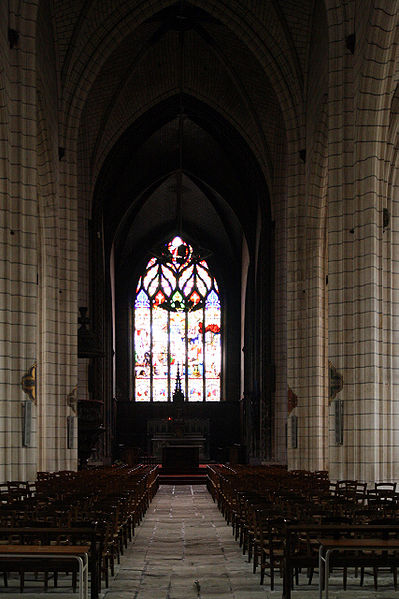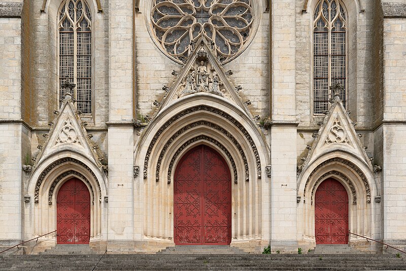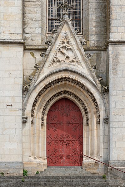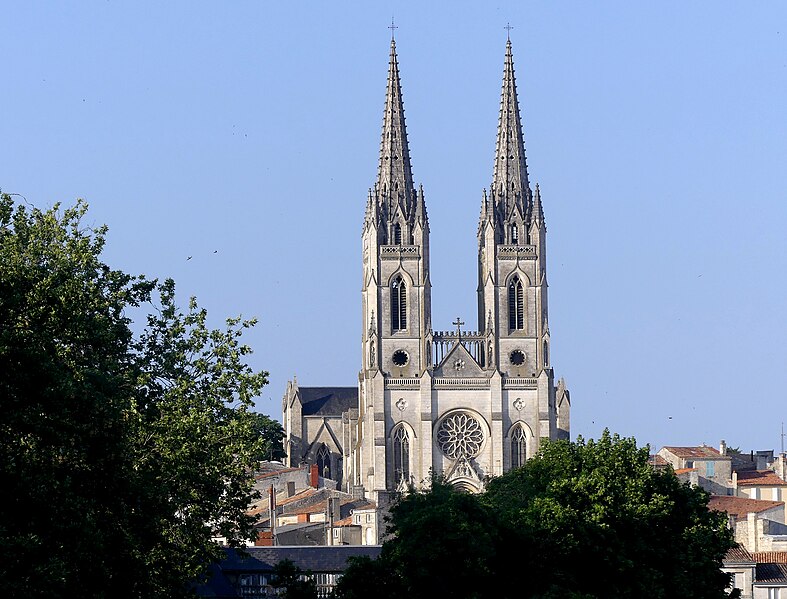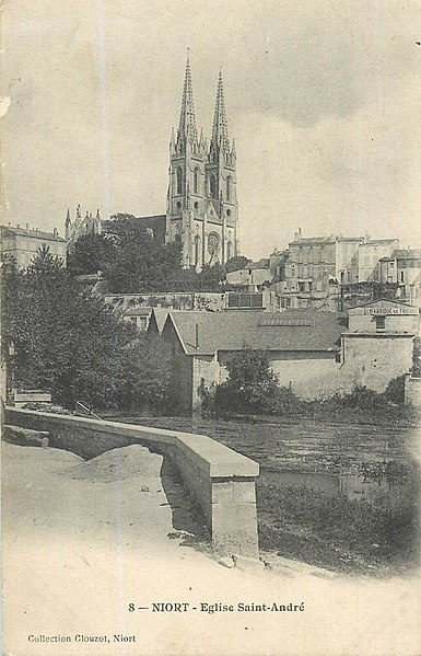 L'église Saint-André, située à Niort dans les Deux-Sèvres, est l'une des grandes églises de la ville ; elle dépend du diocèse de Poitiers et de la paroisse Saint-Pierre-et-Saint-Paul et est inscrite aux Monuments historiques depuis 2015. Consacrée à l'apôtre saint André, elle domine la ville par ses hautes flèches et donne sur la rue Saint-André et la place Martin-Bastard. Une première église romane a été bâtie à cet emplacement au XIe siècle et a été réaménagée en style gothique aux XVe siècle puis modifiée à la Renaissance. L'édifice primitif fut en grande partie détruit par les huguenots en 1588 ; seuls subsistèrent deux travées du chœur et deux chapelles. L'église fut ensuite reconstruite et agrandie, puis saccagée à la Révolution : sous la Terreur elle servit de « temple de la Montagne » et, plus tard, de hangar à fourrage pendant la guerre de Vendée. Restée très délabrée, elle fit l'objet d'un projet de reconstruction porté par l'abbé Hippolyte Rabier ; l'édifice actuel réutilise seulement une partie du chœur ancien. L'église néogothique fut élevée de 1855 à 1863 par l'architecte niortais Théophile Segrétain, puis achevée par son successeur Jean-Baptiste Perlat ; Segrétain offrit de travailler bénévolement, ainsi que certains peintres et décorateurs. L'inauguration eut lieu le 4 septembre 1874. Aujourd'hui, l'édifice souffre d'un certain état de dégradation, notamment des fresques, et a été victime de plusieurs actes de vandalisme, le dernier en date étant le 8 août 2020. De style néogothique, l'église est orientée, de plan en croix latine avec un chevet plat, et se distingue par ses tours jumelles en façade culminant à 70 mètres et surmontées de flèches de type Kreisker percées d'oculi et de baies en arc en accolade. Trois portails à voussures sculptées de personnages et de motifs végétaux donnent accès à l'édifice ; le portail central est surmonté d'une rosace et le gable représente Jésus remettant la croix à saint André à gauche et les clefs du royaume à saint Pierre à droite, tandis que d'autres détails sculptés figurent un ange, un soldat romain et un moine. Les bras du transept sont percés d'une rosace et de portes surmontées de baies en arc brisé à lancettes, chacun flanqué d'une chapelle éclairée par des doubles-baies en arc brisé ; le chevet, encadré de contreforts et de tourelles d'escalier, s'ouvre sur une grande baie en arc brisé surmontée d'une rosace. Les trois cloches de la tour nord ont été baptisées en 1865. La nef, voûtée d'ogives dans le style Plantagenêt, est bordée d'arcades en arc brisé reposant sur des pilastres ; une colonne ronde engagée et son chapiteau, vestiges de l'église romane primitive, subsistent près de la sacristie. Les vitraux du chœur proviennent de l'atelier tourangeau fondé par Julien-Léopold Lobin et achevés par son fils ; l'imposant vitrail de 1858, composé de cinq lancettes, décrit la vie de saint André selon le modèle du vitrail-tableau, montrant notamment le Christ en gloire, la condamnation de saint André et, en bas, des médaillons illustrant des épisodes de sa vie. Les vitraux des bas-côtés, datant de la fin du XIXe siècle, représentent divers saints — saint Blaise, saint Nicolas, sainte Macrine, sainte Radegonde — ainsi que la Vierge des Douleurs et Jésus aux outrages ; les grandes rosaces de la façade et des pignons nord et sud figurent respectivement saint Dominique, la Vierge et saint Joseph. Les verrières de la nef, posées en 1963 par l'atelier Van Guy de Tours, utilisent la technique du verre éclaté serti dans le béton et illustrent les sept sacrements. Le décor intérieur est principalement l'œuvre du peintre niortais Louis Germain, auteur notamment du grand tableau La Fuite en Égypte (1860) et de fresques représentant des scènes de la vie du Christ, ainsi que de tableaux datés de la fin du XIXe siècle ; le peintre rouennais Louis-Adolphe Lecoq d’Arpentigny réalisa la décoration murale symbolique, et la chapelle des fonts baptismaux date de 1884. Le tableau de la Déposition de Croix fut offert par Napoléon III et le Christ en Croix (1772) est attribué à François-Adrien Latinville. Le maître-autel, conçu par l'atelier Bordas de Poitiers en 1874, présente un retable néogothique et un devant d'autel illustrant la Multiplication des pains ; la statuaire, nombreuse, reflète le goût du XIXe siècle. La chaire, classée aux Monuments historiques en 1942, date du XVIIe siècle et provient d'un carmel ; elle porte un panneau central représentant sainte Thérèse d'Avila en extase. Le Christ en croix du chœur, classé aux Monuments historiques en 2002, provient de l'abbaye des Châtelliers et date du XVIIe siècle ; les stalles du chœur datent de 1884 et les bénitiers de 1780. Les grandes orgues de tribune, œuvre de A. Cavaillé-Coll-Convers datées de 1924 et révisées en 1960 par Deliancourt, sont aujourd'hui muettes et hors d'usage, tandis que l'orgue de chœur (1926, Brun et Binette) est très délabré.