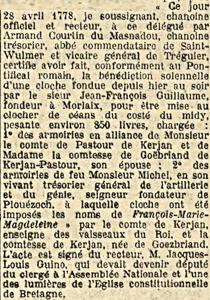 Clocher (cad. B 61) : classement par arrêté du 27 mars 1914