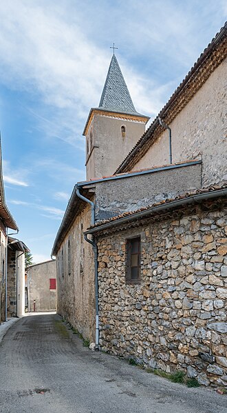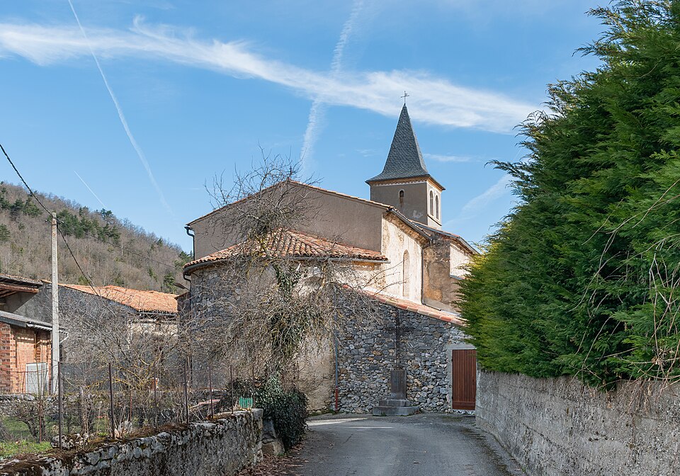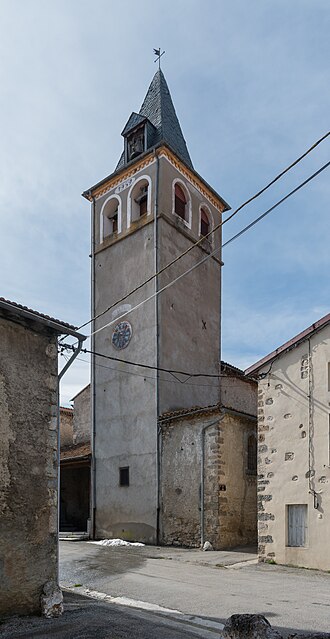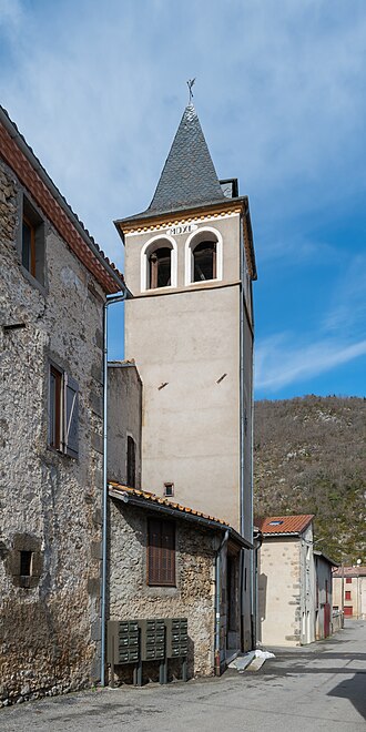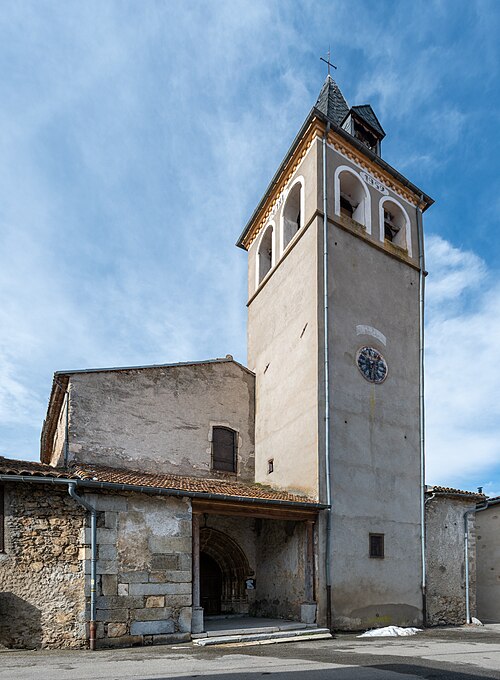 L'église Saint-Jean-Baptiste, située dans l'Aude (France), présente une nef unique bordée de huit chapelles latérales. Une courte travée de chœur précède un sanctuaire en demi‑cercle dont l'abside est attribuée à la fin du XVe siècle ou au XVIe siècle. La travée de chœur est voûtée sur nervures en boudin à méplat. Un retable y a été installé à la fin du XVIIe siècle. À l'ouest, l'édifice est précédé d'un porche décalé vers le nord en raison de la présence du clocher. Celui‑ci se présente sous la forme d'une tour carrée surmontée d'une couverture en pavillon. Le porche abrite un portail en arc brisé composé de treize claveaux et entouré d'une archivolte saillante à courts retours horizontaux. Les ébrasements sont ornés de colonnettes supportant les moulures de l'archivolte, avec des chapiteaux décorés. Le portail occidental a été inscrit au titre des monuments historiques en 1952.