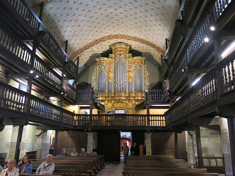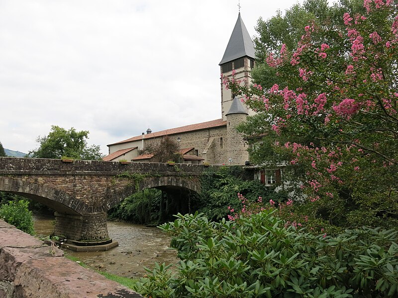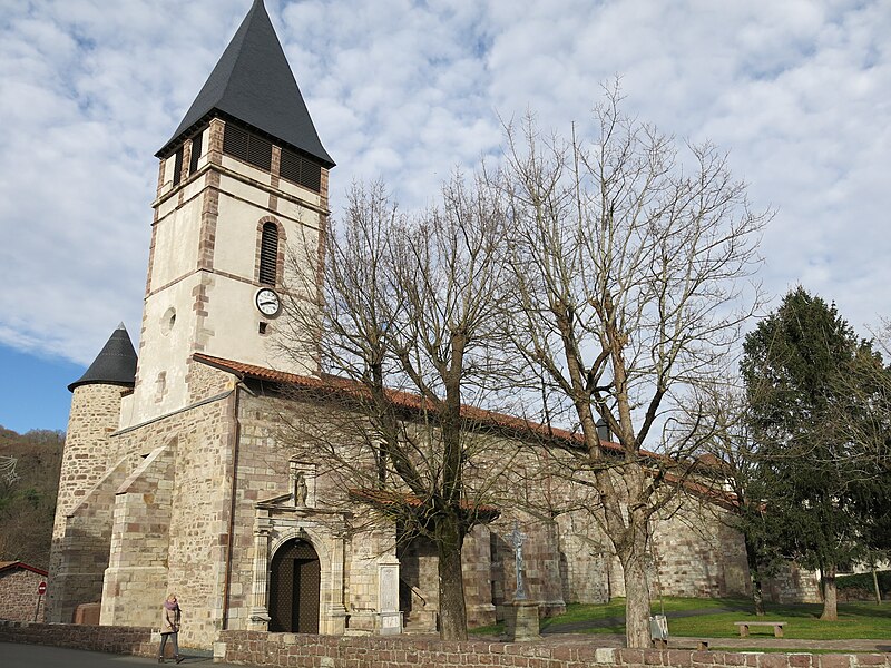 L'église Saint-Étienne de Baïgorry, qui a donné son nom à la commune de Saint-Étienne-de-Baïgorry dans les Pyrénées-Atlantiques, est d'origine romane et a été remaniée à l'époque gothique puis aux XVIIe et XVIIIe siècles. Selon l'abbé Haristoy, sa construction remonterait au XIe siècle et s'inscrirait dans un style romano-byzantin. Orientée au sud-ouest et située près de la Nive des Aldudes, elle présente son entrée principale sur le côté sud. En 1236, le roi Thibaut Ier de Navarre la plaça sous la juridiction du monastère de Roncevaux. Le bâtiment porte à l'extérieur les traces de nombreux remaniements architecturaux non documentés. La nef en briques date de 1733 et le clocher de 1791; deux cloches récentes, Joanna et Mathildis, ont été bénies en 1929. Jusqu'en 1927, un cimetière entourait l'édifice avant d'être transféré hors du bourg. L'intérieur se compose de trois étages de tribunes; le retable est du XVIIe siècle et le porche a été réalisé en 1940. À l'entrée, la porte des cagots et un bénitier sont disposés à droite, tandis qu'à gauche se trouve la dalle funéraire de Jean d'Etxauz, mort en 1661, et la deuxième chapelle, dédiée aux vicomtes d'Etxauz. De chaque côté de la nef, une colonne romaine réemployée conserve un chapiteau primitif. Le chœur abrite plusieurs tableaux : au centre La Lapidation de saint Étienne, à droite Saint Joseph portant l'Enfant Jésus tenant des lys, et à gauche la Vierge et l'Enfant tendant un rosaire à saint Dominique et sainte Catherine de Sienne. L'autel principal est orné de statues des douze Apôtres et du Bon Pasteur, ainsi que de deux panneaux de bois de style maniériste représentant l'Adoration des mages à gauche et la Descente de Croix à droite; cet ensemble aurait été offert par Mgr Bertrand d'Etxauz. L'orgue, installé au-dessus de l'entrée par Rémy Malher, s'inspire des orgues baroques du XVIIIe siècle d'Allemagne du Sud. L'église a été inscrite aux monuments historiques le 18 avril 2014 puis classée le 9 juin 2015. Un dépliant destiné aux visiteurs est disponible dans l'église et des ressources complémentaires, photographies et notices figurent notamment sur Wikimedia Commons, Clochers de France, l'Observatoire du patrimoine religieux, la base Mérimée et MusicBrainz.