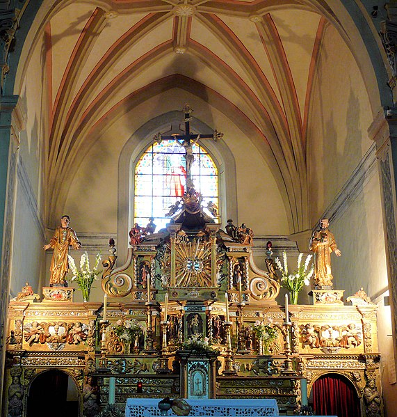 L'église des Dignitaires, ou Saint-Étienne, est une église catholique située à Saint-Étienne-de-Tinée, dans les Alpes-Maritimes. Une charte de 1066 mentionne le don du prieuré de « Sancti Stephani Tiniensi » à la cathédrale de Nice, et la seigneurie appartint à la famille de Thorame-Glandevès. Le chœur, vestige de l'ancienne église, est de style gothique du XIVe siècle et présente une voûte en étoile avec nervures, liernes, tiercerons et formerets engagés, dont Luc Thévenon souligne la rareté dans le Comté de Nice. Thévenon rapproche cette voûte de celle du porche de l'église Saint-Véran d'Utelle, datée du début du XVIe siècle. Le clocher, de style roman lombard, porte la date de 1492 et sa flèche octogonale a été refaite en 1669. En 1594, lors des troubles des guerres de religion, des troupes se réfugièrent dans l'église et le baron de Bueil y mit le feu, provoquant l'incendie du village ; seul le clocher résista et le culte dut être transféré dans les chapelles environnantes. Par un acte du 20 mai 1613, les maîtres d'œuvre Georges Emeric et Antoine Isoard s'engagèrent à reconstruire trois arcades effondrées, leurs piliers et à consolider les murs pour permettre la couverture de l'édifice. En 1783, l'évêque de Nice Valperga de Maglione, consterné par l'état de l'église, ordonna sa démolition et sa reconstruction, décision qui entraîna des tensions et nécessita le logement d'une troupe pour en assurer l'exécution. La communauté se conforma et, après le départ de la troupe le 6 juin 1784, l'architecte suisse Antoine Spinelli se rendit sur place le 29 juin 1784 ; son projet, contrôlé par Antonio Maria Lampo, fut approuvé et mis aux enchères le 24 septembre 1784. Les travaux furent confiés à l'entrepreneur Joseph Ballestre par un acte du 30 juin 1785 pour un montant de 16 490 lires et devaient s'achever en 1787, mais des matériaux de mauvaise qualité entraînèrent une interruption du chantier ; Ballestre abandonna le 1er mars 1788 et Spinelli dut reprendre les travaux. L'église fut consacrée le 4 décembre 1789 et le dernier paiement à Spinelli date de 1793. Le clocher a été classé au titre des monuments historiques le 14 janvier 1908, tandis que le reste de l'église, à l'exception de la partie classée, a été inscrit le 9 septembre 1935. La façade, de composition baroque, s'organise sur deux étages de pilastres à chapiteaux doriques au rez-de-chaussée et ioniques à l'étage, et se termine par un fronton triangulaire saillant encadré d'ailerons à volutes ; l'importance du fronton traduit une tendance néoclassique et fait de la façade une transition entre le baroque piémontais et le style néoclassique. Le plan est centré sur une vaste travée couverte par une calotte décorée d'une représentation de l'Assomption que Luc Thévenon attribue à Emmanuel Costa (1833-1921). L'édifice conserve une tour du XVe siècle de style roman lombard, un chœur gothique avec un maître-autel daté de 1669, une calotte au-dessus de la croisée du transept, ainsi que la nef et le bras nord du transept. L'église abrite un musée d'art religieux et plusieurs objets y sont recensés dans la base Palissy. Le maître-autel est en bois sculpté et doré à la feuille, de style baroque et daté de 1669 ; dans la première chapelle latérale, côté est, se trouve une toile de l'Annonciation datée de 1700 et attribuée au peintre niçois Jacques Bottéro. L'orgue, construit en 1829 par les facteurs toscans Josué, Joannes et Nicomède Agati, connut une longue période d'abandon et de dégradation avant d'être restauré en 1997 par Barthélemy Formentelli, qui l'a remis dans son état d'origine ; il est classé au titre d'objet depuis 1991.
