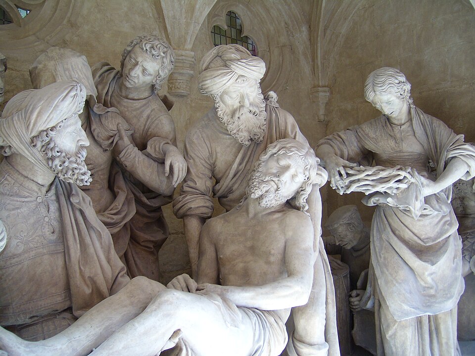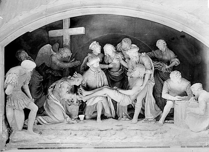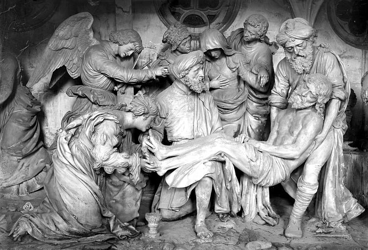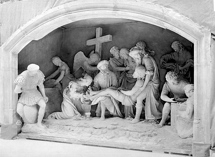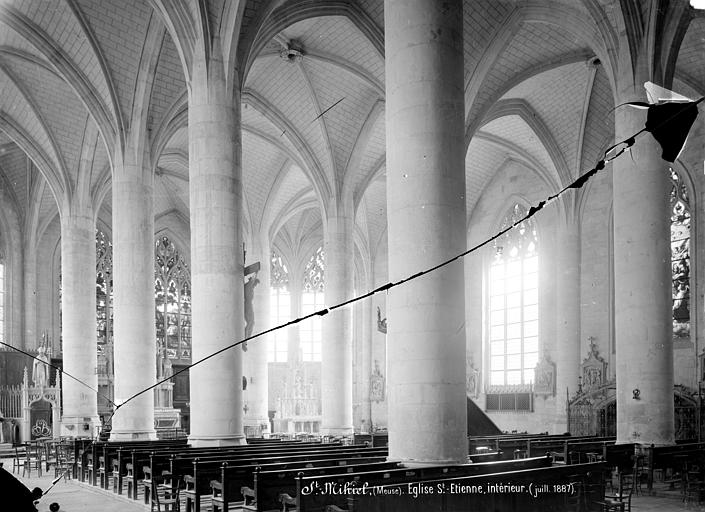 L'église Saint-Étienne de Saint-Mihiel, située dans le noyau ancien du Bourg en Meuse, est une église-halle liée à une fondation bénédictine attestée dès 961 et dont l'origine est parfois rapportée à la création d'une abbaye par le comte Wulfoad sur le site de Godonécourt en 709. Initialement placée sous le double vocable de Saint-Cyr et Sainte-Julitte, elle prend le nom de Saint-Étienne au XIIe siècle lorsque l'abbé de l'abbaye rapporte de Rome des reliques du martyr ; les accords de 1145, 1152 et 1194 la désignent déjà sous ce vocable. Au début du XIIIe siècle l'église est largement reconstruite : il en subsiste notamment quatre chapelles et la tribune centrale. Les sources signalent un agrandissement vers l'est au cours du XVIe siècle, daté selon les auteurs entre 1500 et 1543, avec des travaux attribués en partie au charpentier Jacques de He et une dédicace célébrée en 1545. En 1707 l'église devient collégiale et accueille onze chanoines ; en 1711 des autels encombrants sont supprimés et, en 1752, une nouvelle sacristie est édifiée par le charpentier Nicolas Richerd sur des plans de l'architecte Letixerant. La Révolution voit la confiscation des revenus de la paroisse, le refus du serment par le curé Gabriel Tocquot, la nomination de son vicaire François Forquignon comme curé et, en 1791, la division de la ville en deux paroisses, Saint-Étienne restant celle du Bourg. En 1793 l'église est interdite au culte et menacée de destruction, puis utilisée comme hôpital ; le culte est rétabli en 1802 mais des projets de démolition partielle aboutissent à une ordonnance royale en 1817 et à des travaux engagés dans les années 1820 qui entraînent la disparition d'une grande partie des structures du XIIe siècle et définissent l'aspect général actuel. Entre 1821 et 1825 la basse nef est démolie pour améliorer la circulation et la tour-clocher ainsi que la façade occidentale sont reconstruites sur des plans d'Augustin-Simon Viller par les entrepreneurs Sébastien Vivenot, Toussaint et Jean-Pierre Vierre ; les remplages de dix fenêtres sont remplacés de 1840 à 1842 par Joseph Notrel, puis la charpente est entièrement refaite en 1854 sur des plans de l'architecte Bazoche. La sacristie endommagée pendant la guerre 1914-1918 est reconstruite en 1927 et, pendant la même guerre, l'occupation allemande a affecté l'usage du lieu, qui fut attribué pour un temps au culte protestant. Une rénovation romane de 1076 est évoquée par certaines sources sans traces conservées ; l'essentiel des élévations visibles aujourd'hui date des campagnes du XVIe siècle et des interventions du XIXe siècle qui ont repris l'avant de l'édifice. L'église abrite un sépulcre remarquable de Ligier Richier, réalisé entre 1554 et 1564, installé dans le bas-côté droit par son fils et taillé dans une pierre de type Euville ; le commanditaire demeure inconnu. Cette mise au tombeau comprend treize personnages : au centre le Christ porté par Joseph d'Arimathie et Nicodème, à gauche Marie-Madeleine et Véronique tenant la couronne d'épines, et en arrière-plan Salomé, un ange portant la croix, Marie-Cléophas, la Vierge, saint Jean, deux soldats et un centurion. L'église Saint-Étienne et son sépulcre sont classés au titre des monuments historiques depuis le 27 août 1907.