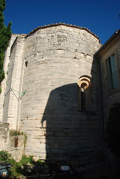 La façade méridionale, rythmée par de puissants contreforts, ne comporte que deux travées ; chacune est percée d'une fenêtre à triple ébrasement, encadrée de colonnettes aux chapiteaux finement sculptés. Le chevet semi-circulaire intègre une fenêtre absidiale à double ébrasement associée à un arc torique dans sa partie inférieure en pierre de taille, la partie supérieure constituant la surélévation polygonale en appareil irrégulier.