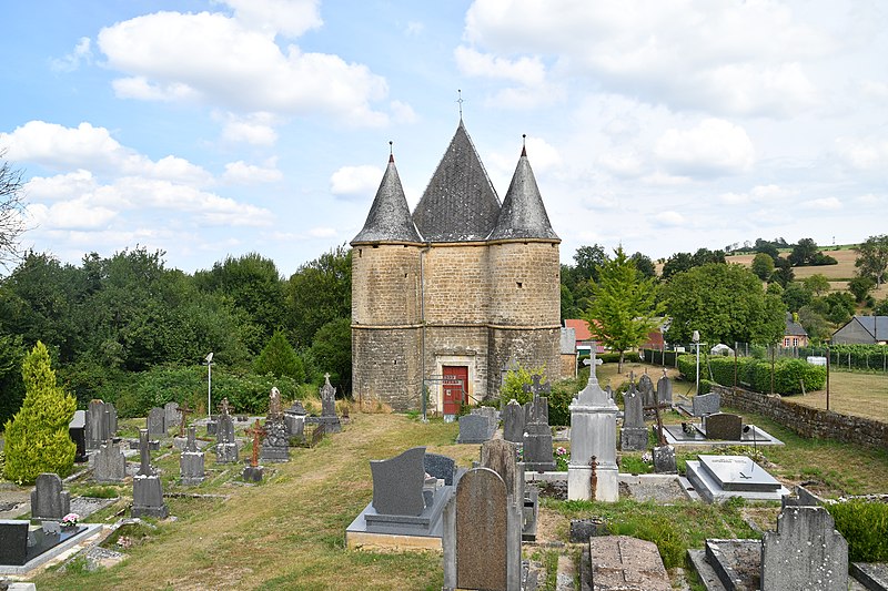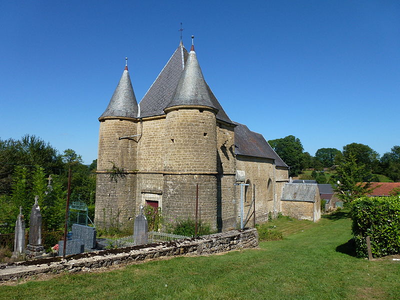 L'église Saint-Étienne de Servion se situe à Rouvroy-sur-Audry, dans les Ardennes. Elle fait partie du circuit des églises fortifiées de la Thiérache. La description mentionne des fortifications datées du XVe siècle, tandis que l'historique indique le XVIe siècle. L'édifice se distingue par un clocher-porche de plan carré flanqué de deux tours d'angles rondes, elles-mêmes percées de canonnières. La tour ronde nord comporte deux casemates superposées voûtées en coupoles ; la tour sud abrite un escalier à vis desservant les deux niveaux du clocher-porche. L'intérieur présente une salle voûtée à croisée d'ogives qui prend appui au milieu des murs plutôt que dans les angles. Une stèle gallo-romaine sculptée, représentant un homme et une femme, a été mise au jour le 4 septembre 1970 lors de travaux préalables à une réfection ; elle mesure 0,96 × 0,71 × 0,34. Parmi le mobilier, on note un maître-autel du XVIIIe siècle en pierre peinte, orné de quatre colonnes corinthiennes. L'édifice accueille également un centre culturel animé par l'association des Compagnons de Saint-Étienne. L'accès depuis le centre du village se fait par une ruelle montant entre les maisons et se prolongeant entre des haies. Le portail a été refait en 1829. Le clocher-porche a été classé au titre des monuments historiques en 1981 et le reste de l'église a été inscrit la même année.