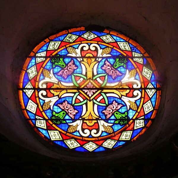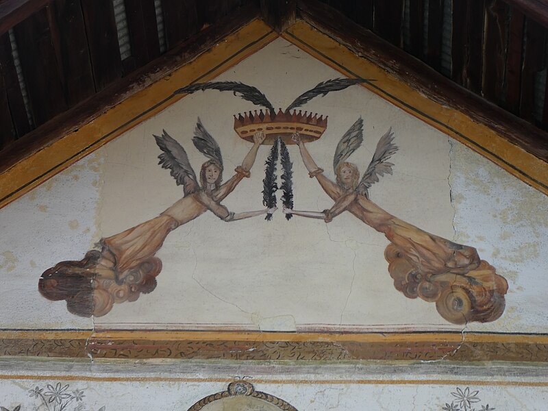 Ajout du décor du tympan de la porte sous le porche.