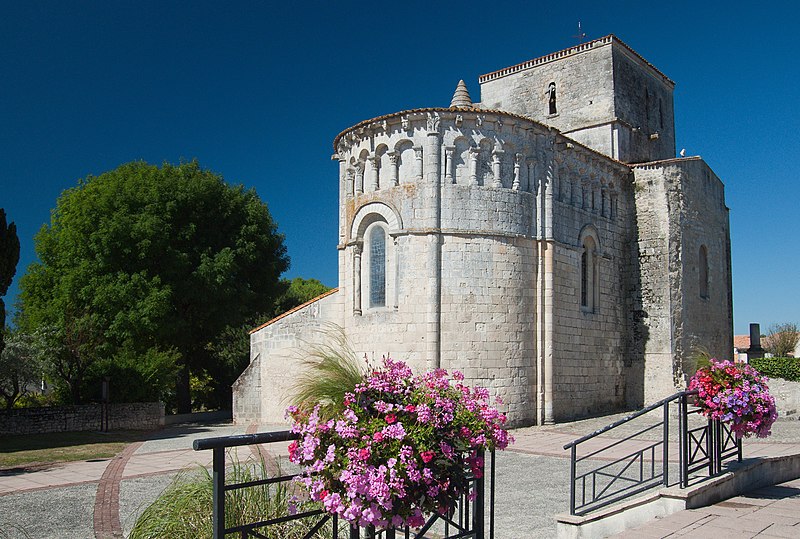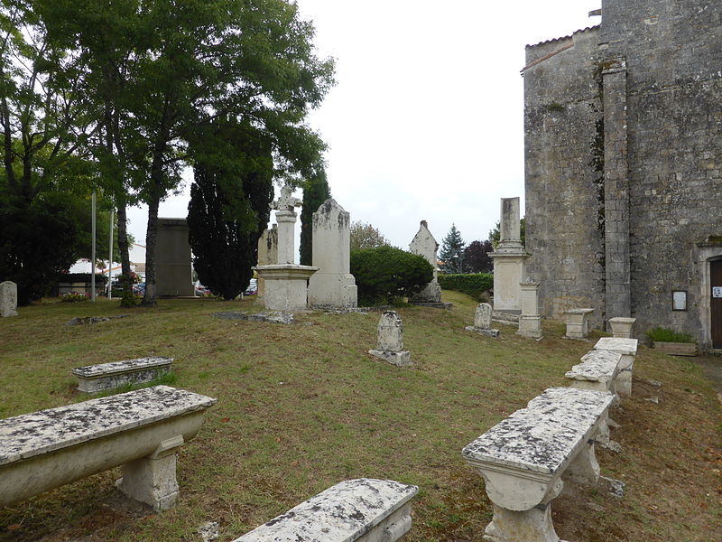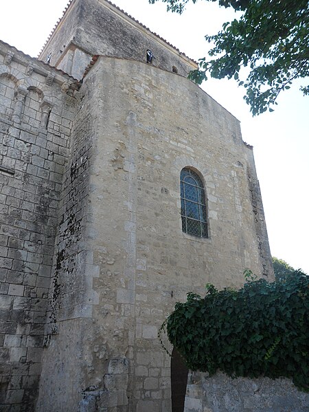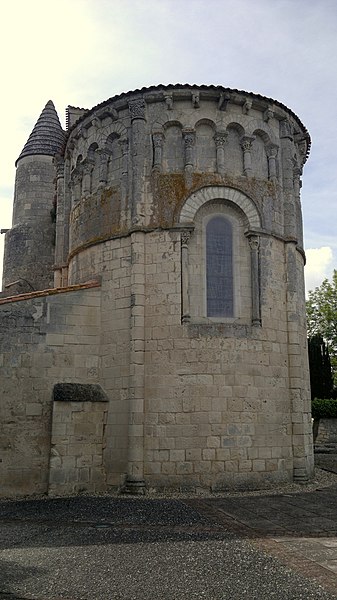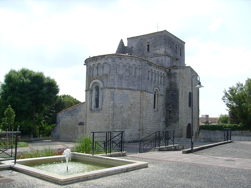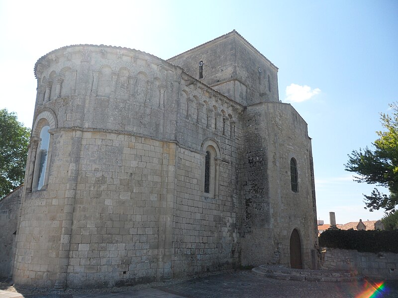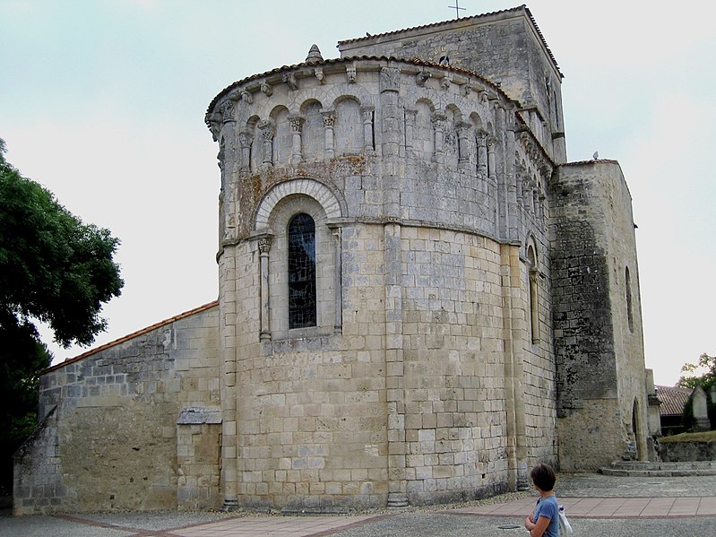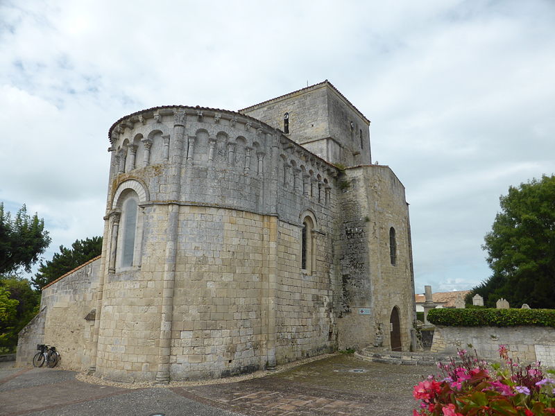Une porte latérale sud donne accès à une chapelle gothique de deux travées. Sur le mur nord subsiste une inscription du premier quart du XIIIe siècle relatant une donation pour qu'un cierge brûle pendant le sacrifice : « Gvmbaldvs de Corles dedi altari sti Stephani vnv cerv qicot accedatatvr ad sacfivm », traduite par « (Moi) Gombaud de Courlay, j'ai donné à l'autel de saint Étienne un cierge pour qu'il brûle durant le sacrifice. » L'abside contraste avec l'austérité intérieure par la présence d'un étage d'arcatures délimité par des colonnes-contreforts ; les arcs reposent sur de courtes colonnettes prolongées par des chapiteaux historiés ou ornés de motifs végétaux, conformément au style roman saintongeais, et le dernier niveau est occupé par une corniche à modillons sculptés de masques, animaux et personnages grimaçants. La Poste a consacré un timbre à cette église en 2004. Classée monument historique depuis le 4 septembre 1913, l'église et son cimetière adjacent, protégé depuis le 11 août 1936, font partie du patrimoine local.