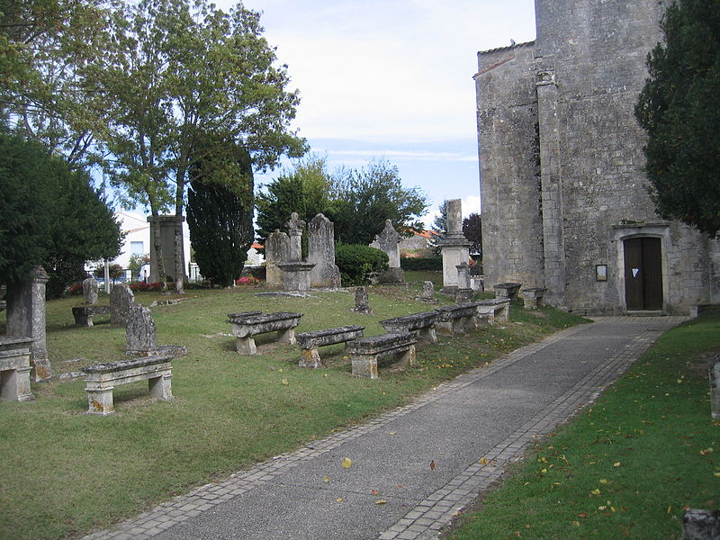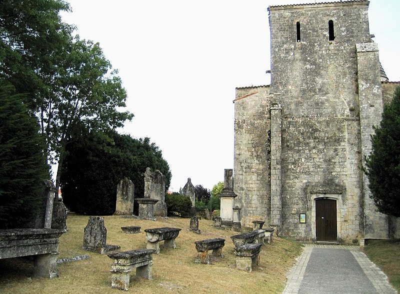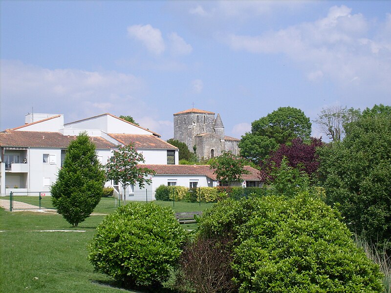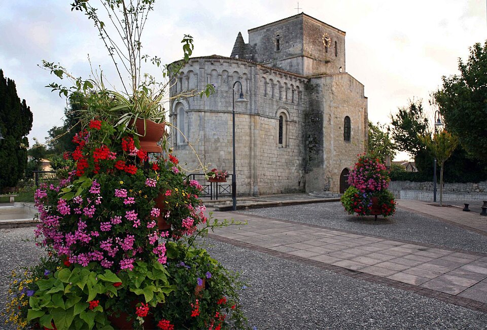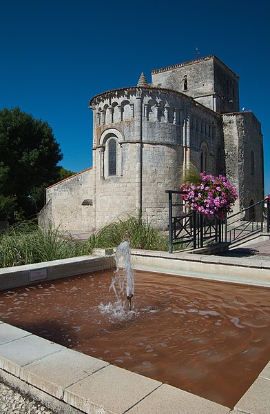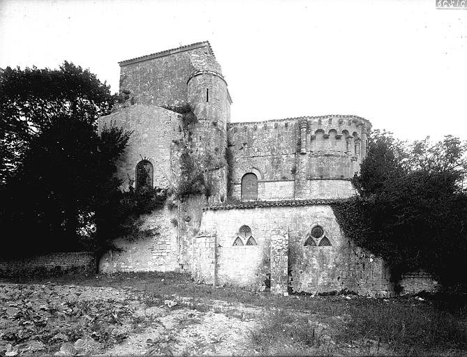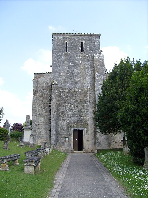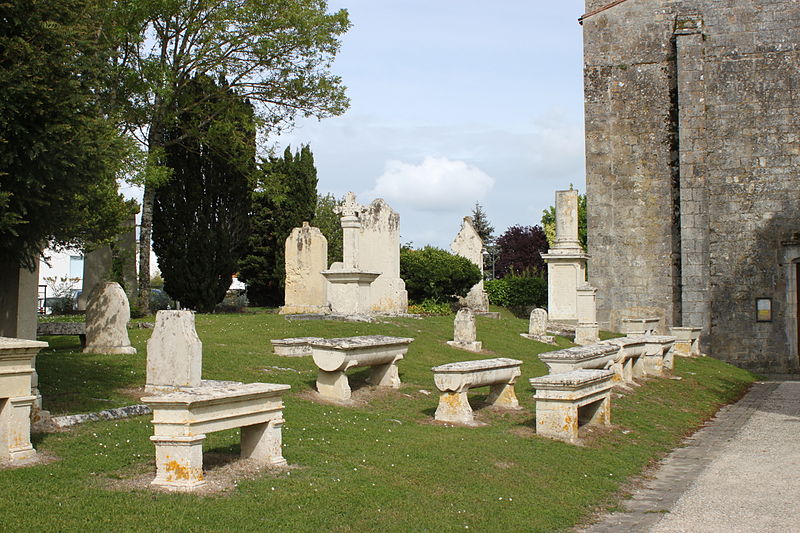 Une porte latérale sud donne accès à une chapelle gothique de deux travées. Sur le mur nord subsiste une inscription du premier quart du XIIIe siècle relatant une donation pour qu'un cierge brûle pendant le sacrifice : « Gvmbaldvs de Corles dedi altari sti Stephani vnv cerv qicot accedatatvr ad sacfivm », traduite par « (Moi) Gombaud de Courlay, j'ai donné à l'autel de saint Étienne un cierge pour qu'il brûle durant le sacrifice. » L'abside contraste avec l'austérité intérieure par la présence d'un étage d'arcatures délimité par des colonnes-contreforts ; les arcs reposent sur de courtes colonnettes prolongées par des chapiteaux historiés ou ornés de motifs végétaux, conformément au style roman saintongeais, et le dernier niveau est occupé par une corniche à modillons sculptés de masques, animaux et personnages grimaçants. La Poste a consacré un timbre à cette église en 2004. Classée monument historique depuis le 4 septembre 1913, l'église et son cimetière adjacent, protégé depuis le 11 août 1936, font partie du patrimoine local.