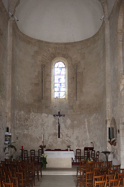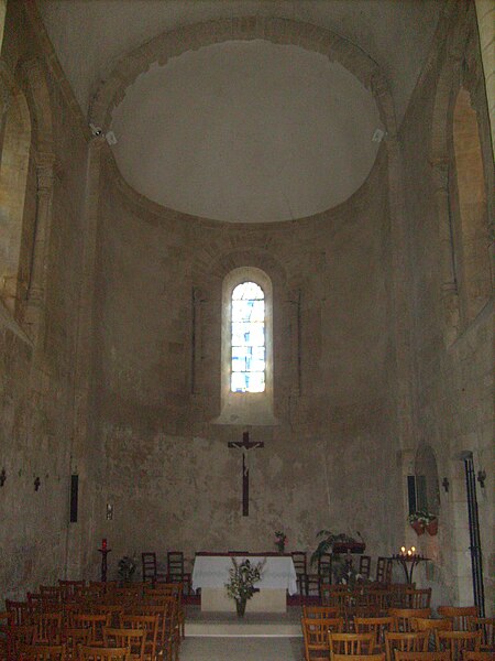 L'église actuelle semble remonter au premier ou au deuxième tiers du XIIe siècle, malgré des soubassements plus anciens et des reconstructions postérieures. L'édifice, considérablement mutilé, conserve le carré du transept, une partie des croisillons, le chœur et l'abside, ainsi qu'une petite chapelle voûtée d'ogives sur le flanc sud. La façade, reconstruite après la destruction de la nef, se présente comme un mur sobre où subsistent les traces de l'arc qui ouvrait jadis sur la nef. La croisée du transept porte les amorces d'une coupole sur trompes qui servait de base au puissant clocher carré encore en place. Les croisillons ont perdu une partie de leur profondeur et leurs absidioles ; le chœur, d'une profondeur remarquable, est voûté en berceau et éclairé par trois baies ornées de vitraux modernes. On y remarque des chapiteaux historiés représentant anges, animaux fabuleux et la lapidation de saint Étienne, ainsi que des motifs végétaux.