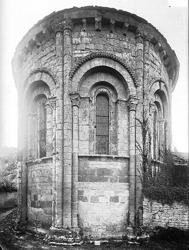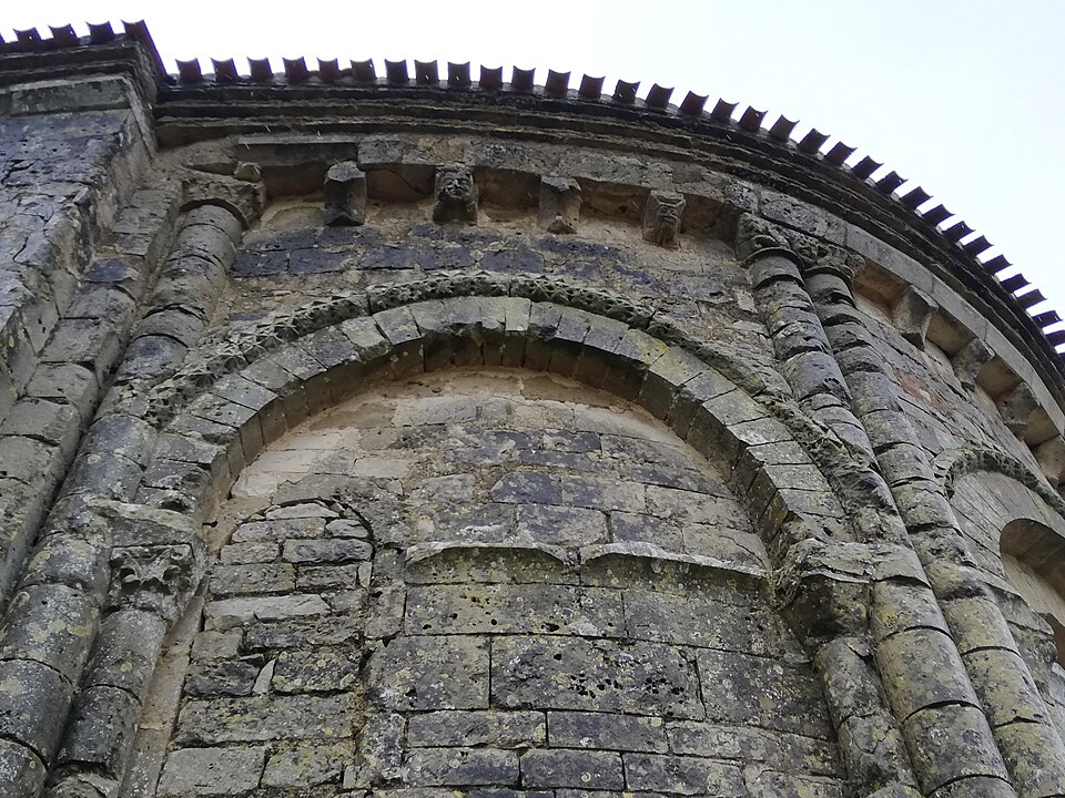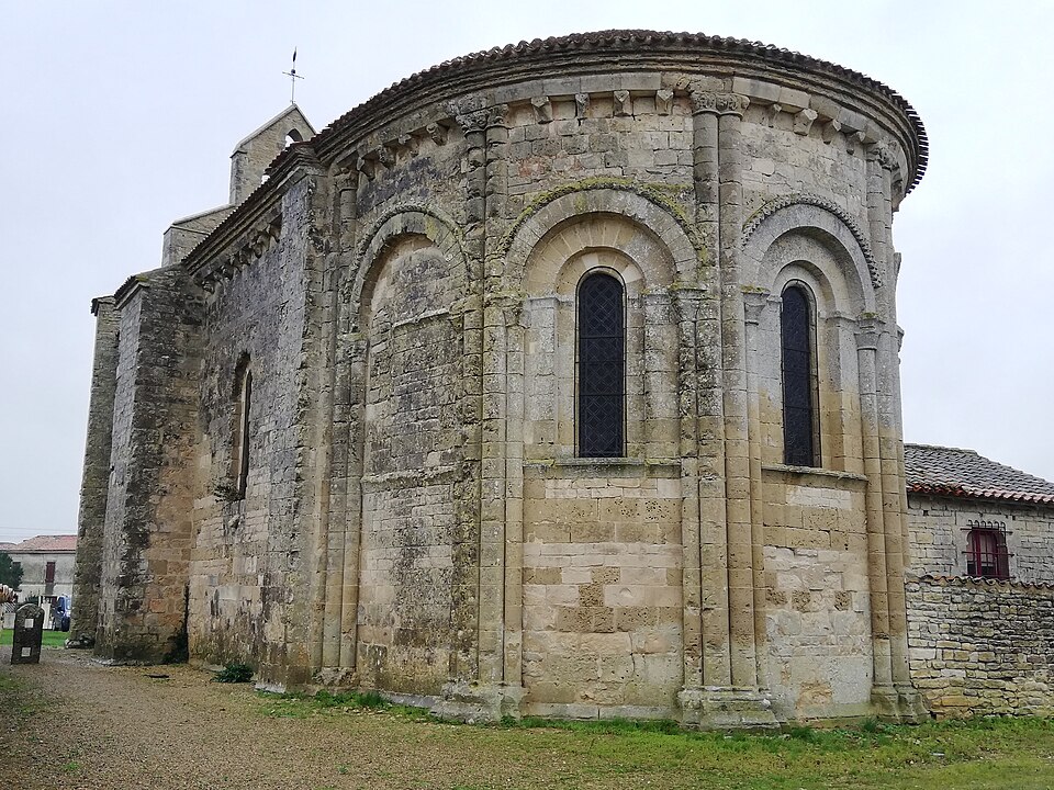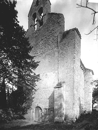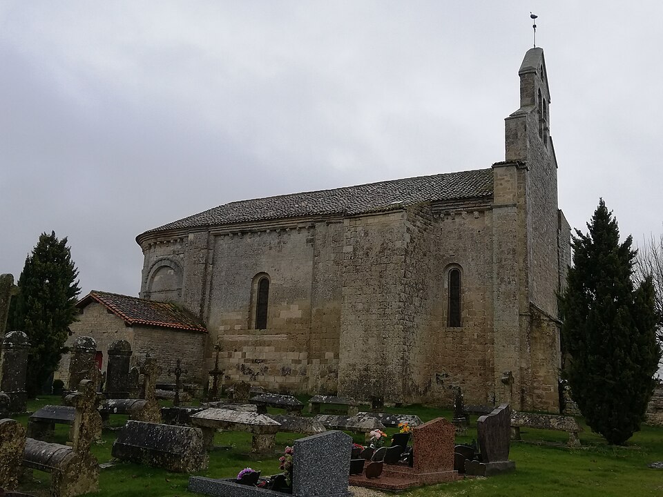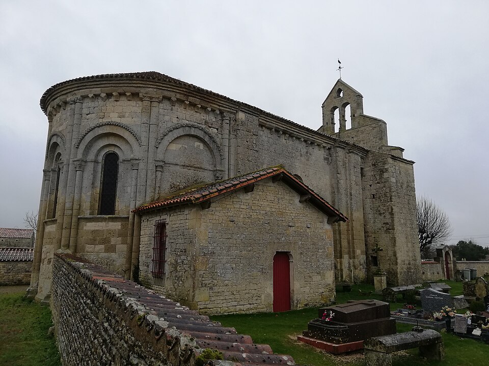 Datée du XIIe siècle, l'église paraît avoir été inachevée ou partiellement détruite : la nef, non voûtée, ne comporte qu'une seule travée. Le pignon de la façade, postérieur, est surmonté d'un campanile à deux ouvertures en plein cintre. L'entrée du sanctuaire s'organise autour de deux groupes de sept colonnes reposant sur de larges soubassements qui se développent sur tout le périmètre de l'édifice ; leurs chapiteaux sont ornés. Contre le mur de la travée de la nef s'élève un important contrefort dont la partie basse, voûtée en berceau, abrite un ossuaire qui servait à recueillir les ossements du cimetière.