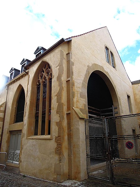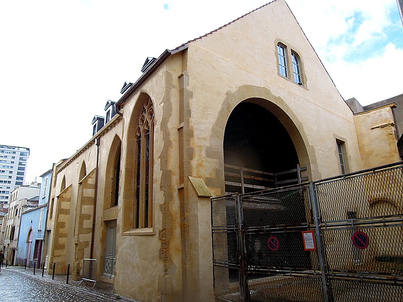 L'ancienne église Saint‑Étienne‑le‑Dépensié, dite aussi Dépenné, se situe rue Gaudrée à Metz, à proximité de l'église Saint‑Maximin. Les paroisses de Saint‑Maximin et de Saint‑Eucaire sont attestées dans le quartier Outre‑Seille dès le VIIIe siècle ; l'ecclesia Sancti Stephani apparaît au début du XIIe siècle et devient paroisse après 1190, tandis qu'une ruelle nommée « Saint Estenne lou depaney » est mentionnée en 1245. L'édifice, dédié au pape Étienne Ier, porte l'épithète « le Dépenné » en référence au martyre du saint, représenté jusqu'à la Révolution sur le bas‑relief du tympan de la porte d'entrée. La façade, rythmé par de solides contreforts, s'ouvre sur trois fenêtres gothiques ; la nef ainsi que les piliers et contreforts datent des XIVe et XVe siècles. D'après les pouillés du diocèse, au XVIe siècle l'église comptait, outre l'autel dédié à saint Étienne, deux autres autels consacrés à saint Thomas et saint Nicolas. Le clocher est figuré sur une gravure d'Israël Silvestre datée de 1667. Après la Révolution, l'église n'est plus affectée au culte et la paroisse est réunie à celle de Saint‑Maximin en 1791. Vendue à une date non précisée, elle est partiellement démolie en 1807, son chevet l'est en 1872 ; l'édifice est ensuite transformé en entrepôt et en habitation, la nef servant notamment de magasin à bière et de logement. La façade sur rue est classée au titre des monuments historiques depuis le 24 mars 1928 et la nef a été inscrite le 30 octobre 1989. Une stèle funéraire gallo‑romaine, représentant la silhouette d'un homme debout, est encastrée dans l'un des contreforts. Une étude d'E. Freindt, « Un coin du vieux Metz, l’église Saint‑Etienne le Dépenné » (Les Amis de Metz, n°3, 1961), traite de ce lieu ; des ressources complémentaires se trouvent notamment sur Clochers de France, l'Observatoire du patrimoine religieux et la base Mérimée.