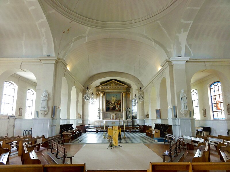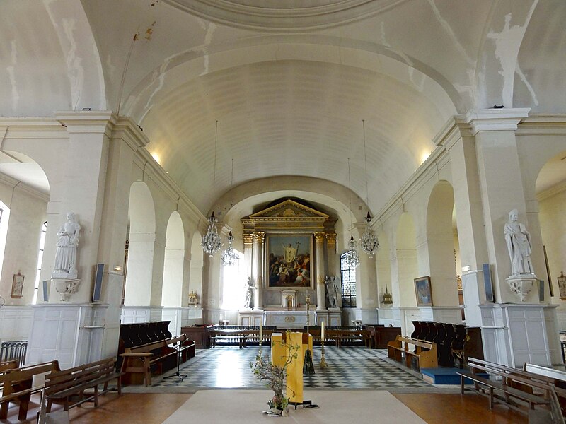 Seule église rurale conçue par Mansart, l'édifice mêle des éléments architecturaux traditionnels et modernes et s'inspire notamment de l'église Notre-Dame de Versailles. Sa façade, trapue et surmontée d'une croix à fleur de lys, est orientée vers le midi et se signale par un clocher haut de 42 mètres. L'oculus au‑dessus de la porte et le clocher latéral élancé témoignent d'un héritage gothique, tandis que l'ordonnancement des façades révèle le chaînage vertical inspiré de la place des Vosges. L'intérieur, d'abord sobre, a ensuite reçu des éléments venus de la chapelle de Versailles, dont un maître-autel en marbre orné de statues d'anges classées monuments historiques en 1905. Sous une marche du chœur reposent les entrailles d'Alexandre Bontemps, premier valet de chambre du roi et gouverneur de Marly et de Versailles. À droite de l'autel, la chapelle du Calvaire présente un Christ en croix installé sur le dossier du siège qu'occupait Louis XIV à l'église. Au‑dessus de la porte de la sacristie se trouve la cloche Ave Maria, datée de 1473, venue du prieuré Saint-Étienne et donnée à l'église à la fin du XIXe siècle par les propriétaires du Chenil ; elle porte la gravure d'un saint Michel terrassant un dragon. Le transept gauche abrite un autel dédié à saint Thibaut de Marly, flanqué de vitraux dont l'un, réalisé en 1903 par le maître-verrier Hirsch, montre le saint offrant à Louis IX et à Marguerite de Provence une corbeille de onze lys. La tribune d'orgue et la chaire sont en chêne sculpté. Le mobilier liturgique actuel — autel, ambon et siège de présidence en onyx et bois — a été réalisé par l'artiste Jean‑François Ferraton en 2018.