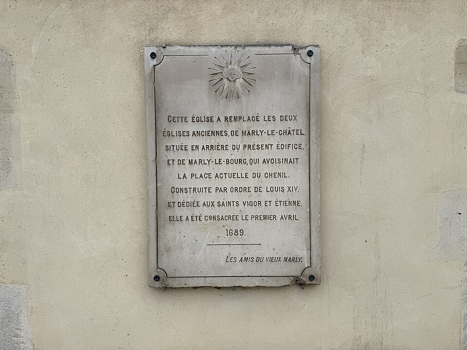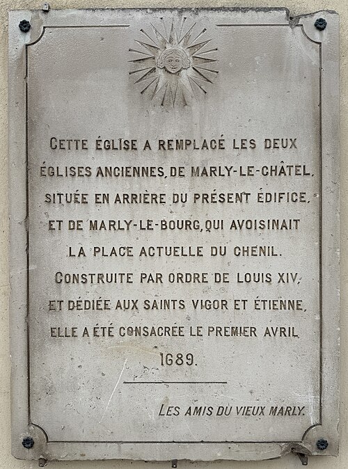 L'église royale Saint-Vigor-Saint-Étienne de Marly-le-Roi, construite de 1688 à 1691 à la demande de Louis XIV par Jules Hardouin-Mansart, se situe au 17 bis rue de Saint-Cyr, dans les Yvelines. Elle a été offerte par le roi aux habitants de Marly-Chastel et Marly-Bourg après la fusion des deux paroisses en 1681. Louis XIV, qui avait acquis la baronnie de Marly-le-Chastel en 1676 et fait édifier une résidence royale dans les années 1679-1685, chargea Mansart de bâtir la nouvelle église sur l'emplacement d'un sanctuaire du XIe siècle. La première pierre fut posée le 24 avril 1688 par le contrôleur du château de Marly, Louis de Rusé, et l'édifice fut consacré le 1er avril 1689. En 1710, le maître-autel de l'ancienne chapelle du château de Versailles y fut installé. Pendant la Révolution, l'église fut vidée de ses meubles et des chasses de reliques en bronze furent fondues pour la fabrication de canons ; trois des quatre cloches d'origine furent fondues en 1794. La grosse cloche restante, pesant 3 500 livres, fut descendue en 1824 puis fondue pour donner naissance aux deux cloches actuelles, Antoinette et Éléonore. L'église et certains de ses éléments, comme les anges de Jean-Baptiste Jouvenet, ont été inscrits à l'Inventaire supplémentaire des monuments historiques en 1977.