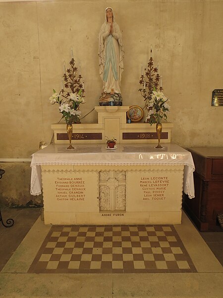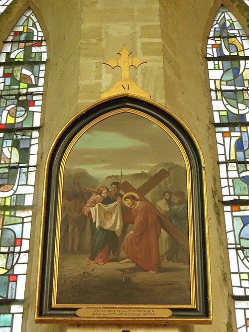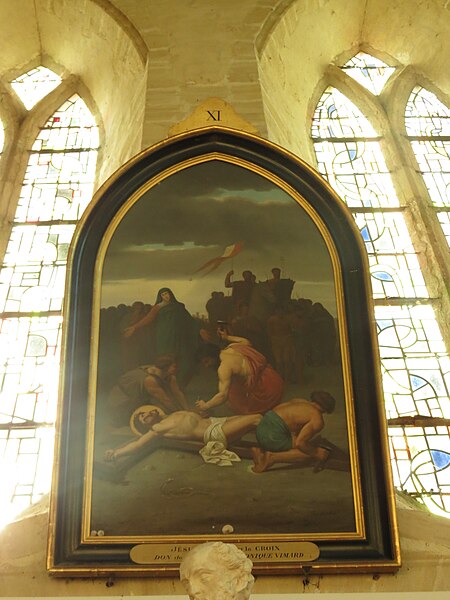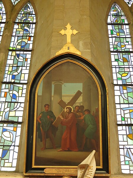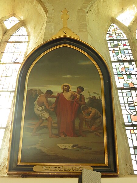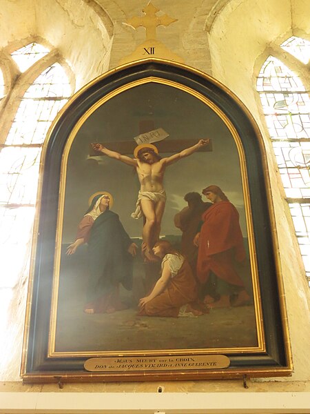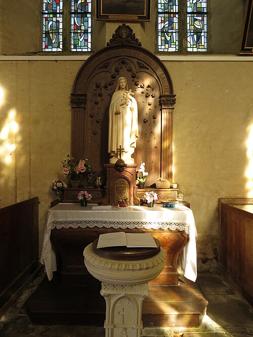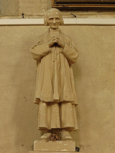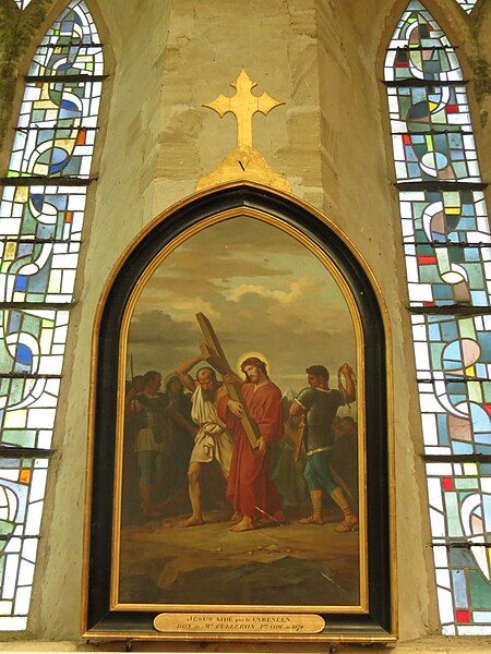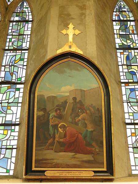 D'autres peintures comprennent une représentation du baptême du Christ et quatorze tableaux du chemin de croix datés de 1875, certains portant le nom des donateurs. Plusieurs statues et autels secondaires témoignent de la vague de dévotion religieuse qui aboutit à la canonisation de nombreux saints entre 1850 et 1930; on y trouve notamment des autels à sainte Thérèse de Lisieux, au Sacré-Cœur et à la Vierge, ainsi que des statues du saint curé d'Ars, de sainte Jeanne d'Arc, de sainte Marie, de saint Joseph et de saint François d'Assise. Le mobilier comprend enfin des bancs en pin, anciennement numérotés ou loués à des familles, une chaire du XVIIIe siècle, un confessionnal du XIXe siècle et dans le chœur des stalles dont les miséricordes non figuratives datent du XVIIIe siècle.
