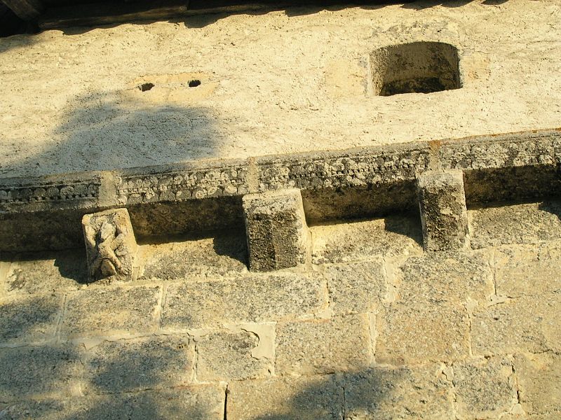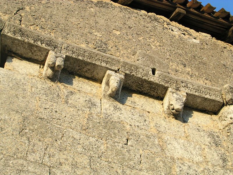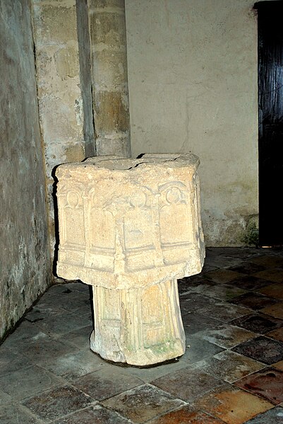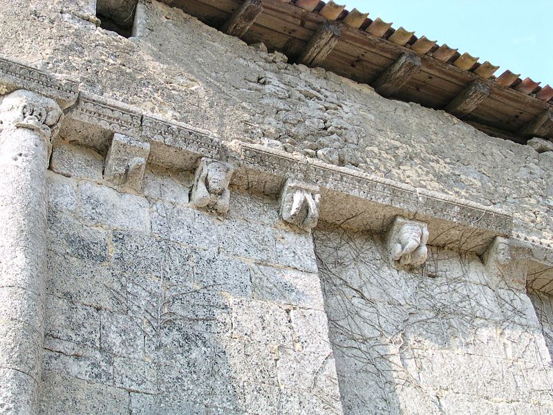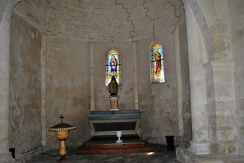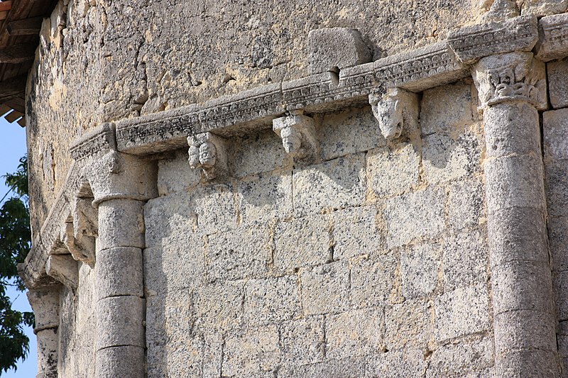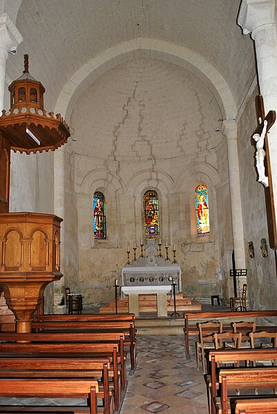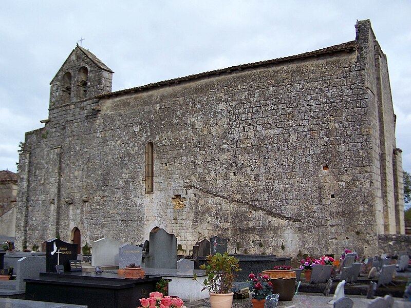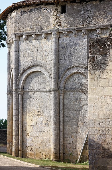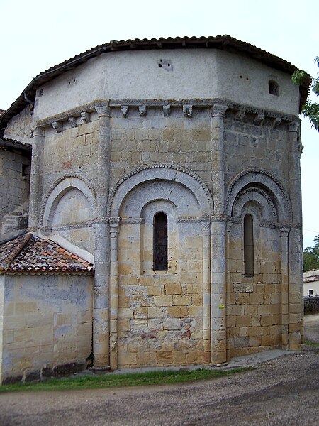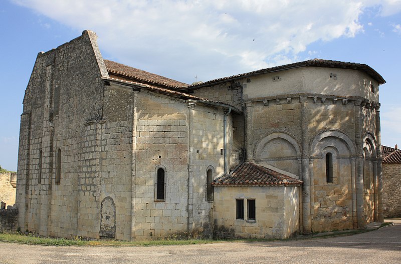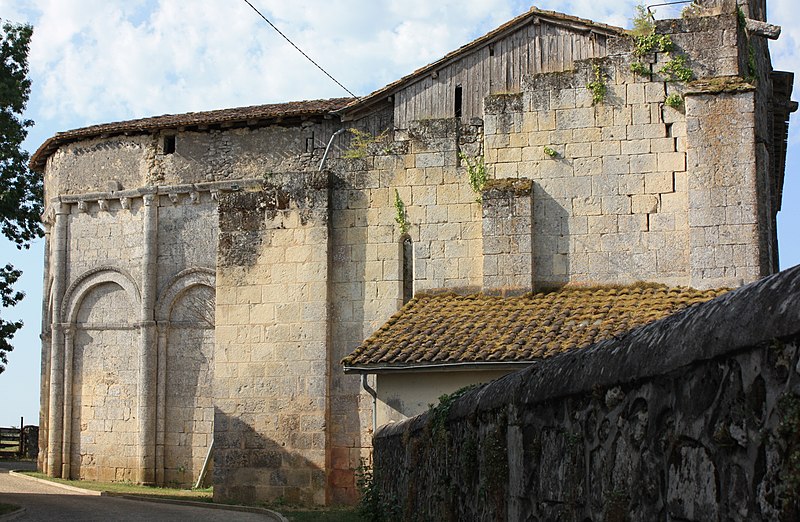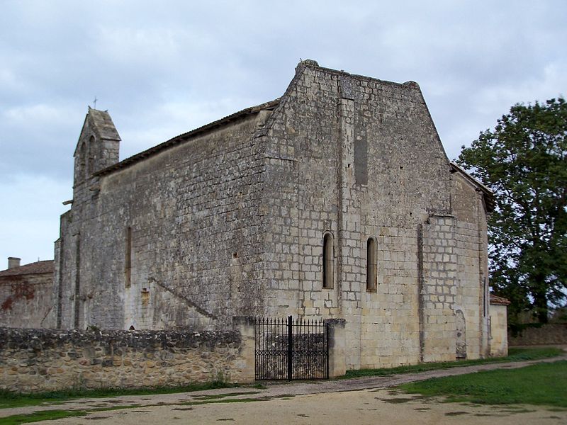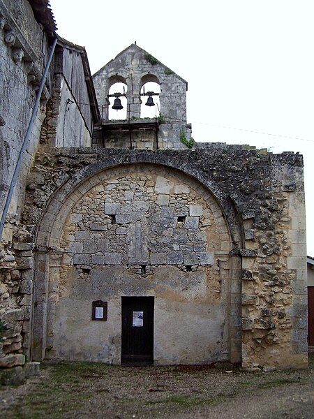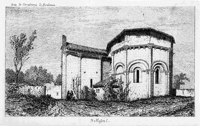 L'église Saint-Eutrope et l'ancien prieuré de Bellefond forment un ensemble ecclésiastique situé au sud du bourg, dans la commune de Bellefond (Gironde). Le prieuré fut fondé et mis en chantier par des chanoines réguliers de l'ordre de Saint-Augustin, qui ne purent achever la nef. Il fut soumis au monastère de La Sauve‑Majeure à la fin du XIIe siècle, les sources mentionnant 1186 et 1190. Les moines de La Sauve rebâtirent la partie orientale : un transept de 22 mètres, une abside pentagonale de 16,8 mètres flanquée d'absidioles et le mur occidental ; la nef resta inachevée. La façade ouest, édifiée au XIIIe siècle probablement à titre provisoire, donne à l'ensemble un caractère singulier. L'édifice a été remanié au XVIe siècle et a subi d'importantes dégradations lors des guerres de Religion ; l'absidiole nord fut rasée vers 1850. En 1655, le prieuré fut uni au monastère des Feuillants de Bordeaux, qui restaurèrent l'église après leur prise de possession et le gardèrent jusqu'à la Révolution. Une restauration menée de 1863 à 1866 modifia profondément l'intérieur : des voûtes furent mises en place dans le transept et la sacristie, et l'entrée actuelle fut aménagée en 1865 à la croisée nord du transept. Les parties inférieures du mur d'enceinte qui entourait l'église, le cimetière et les bâtiments claustraux subsistent en grande partie à l'état de ruine ; des vestiges, dont une porte et une échauguette, ont été dégagés récemment. L'édifice conserve une porte romane et des contreforts plats attribués au XIIe ou au XIIIe siècle. À l'intérieur, le décor principal est exclusivement abstrait ; les chapiteaux de l'abside présentent des affinités stylistiques avec ceux de la partie haute de la nef de La Sauve‑Majeure, réalisés dans la seconde moitié du XIIe siècle, tandis que d'autres chapiteaux gothiques ont été remaniés lors du rehaussement du mur sud‑est du sanctuaire. Parmi les éléments mobiliers, les fonts baptismaux datent du XIVe siècle et proviennent de la chapelle Saint‑Jean‑Porte‑Latine de La Goilanne, aujourd'hui disparue. Les vitraux de l'abside, datés de 1867, sont l'œuvre de l'atelier Lieuzère et fils de Bordeaux et ont été offerts par J. L. Aymen ; ceux de l'absidiole sud et du mur sud, datés de 1886, ont été réalisés par l'atelier G. P. Dagrand de Bordeaux et donnés par Juste de Minvielle. À l'extérieur, le programme secondaire se compose d'une suite de modillons figurés, représentations typiques de l'Aquitaine romane visant à dénoncer les relations impures et les écueils du vœu de chasteté ; on y reconnaît divers motifs humains et bestiaires tels que le lisseur de barbe, un exhibitionniste, un homme bicéphale, deux hommes reliés par un serpent, des bêtes tenant des proies, des masques maléfiques, une salamandre, un monstre à deux têtes, un cochon, un serpent et des motifs floraux. L'église est inscrite au titre des monuments historiques par arrêté du 3 novembre 1925, et les ruines de l'ancien prieuré sont protégées par un arrêté du 12 avril 2001.