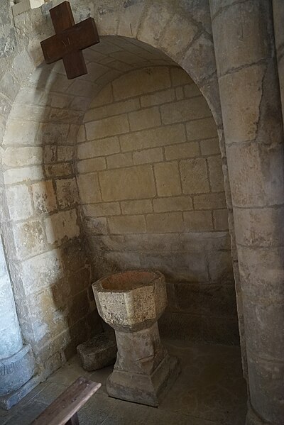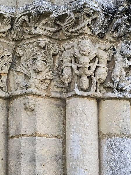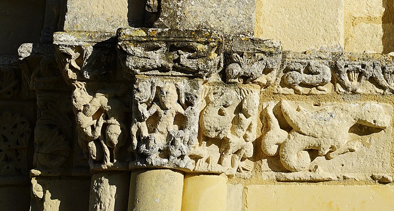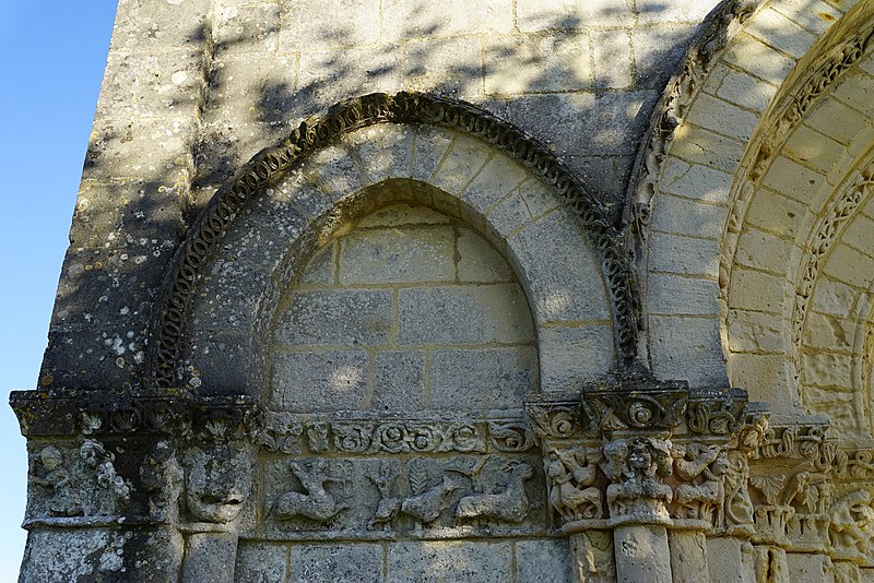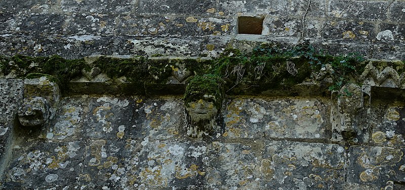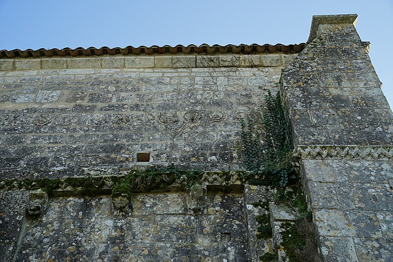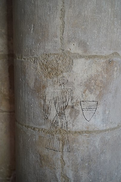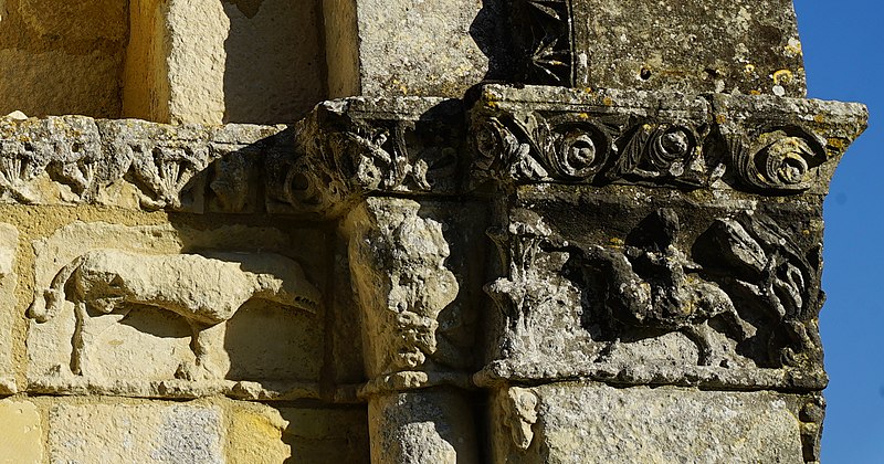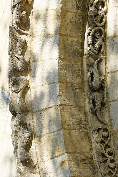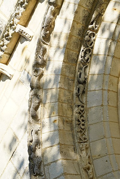 Gravures et détails sculptés ajoutés sur la façade et dans les murs de la nef.