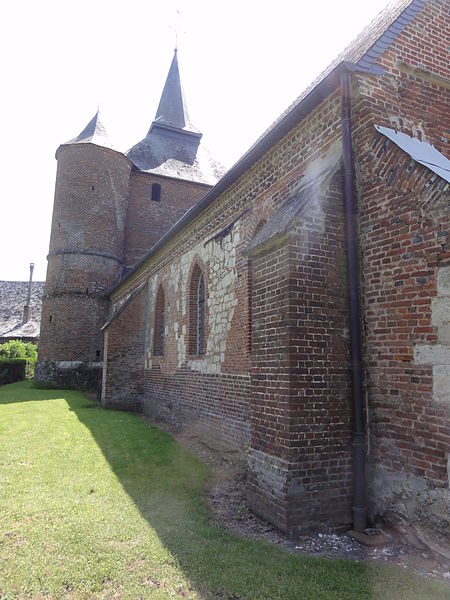 L'église Saint-Event se trouve à Rogny, dans l'Aisne (France). L'édifice se compose de deux parties distinctes : une nef unique, aujourd'hui très remaniée, et un donjon de plan carré. Le donjon est construit en brique sur un soubassement de grès et décoré de croisillons en brique vernissée. Le chœur occupe le rez-de-chaussée du donjon et est couvert d'une voûte en brique particulièrement haute (80 m). On accède à une salle supérieure par une tourelle qui abrite un escalier à vis et est percée de sept meurtrières. L'épaisseur des murs du donjon dépasse deux mètres à la base et la salle intérieure mesure 7,20 m, des dimensions supérieures à celles des plus gros donjons connus, comme ceux de Prisces ou de Saint-Algis. À l'origine, le donjon devait atteindre au moins 16 m, mais ses murs ont été arasés et le deuxième étage supprimé. L'édifice est une église fortifiée et le monument a été inscrit au titre des monuments historiques en 1989.