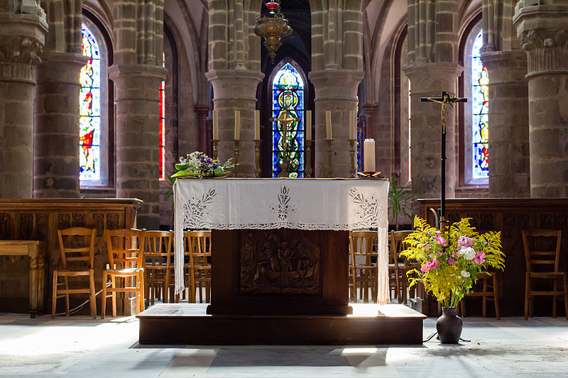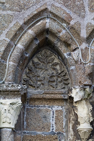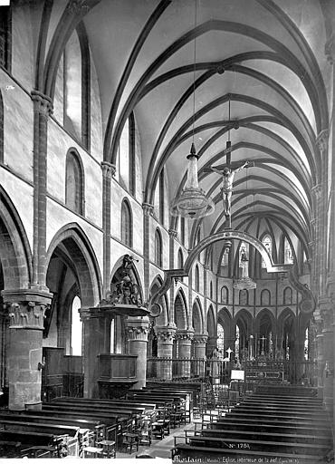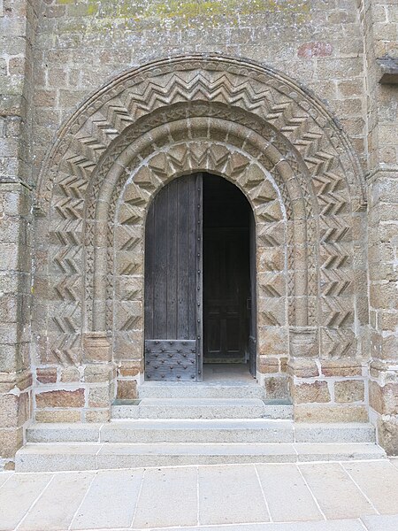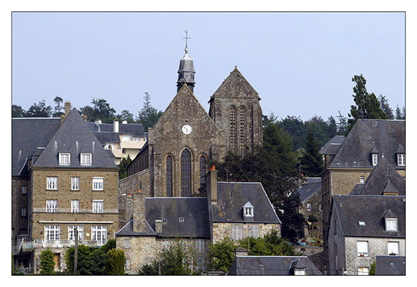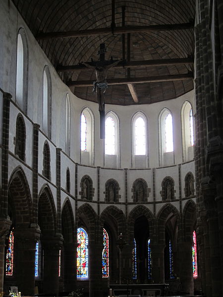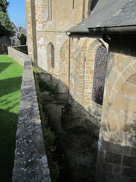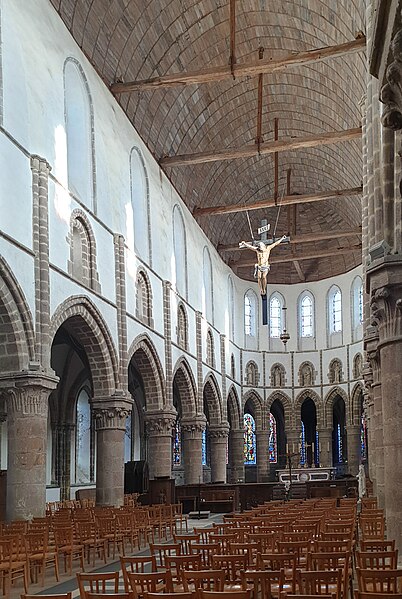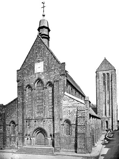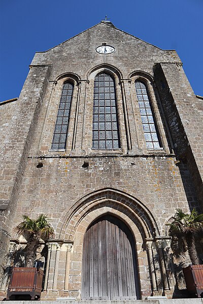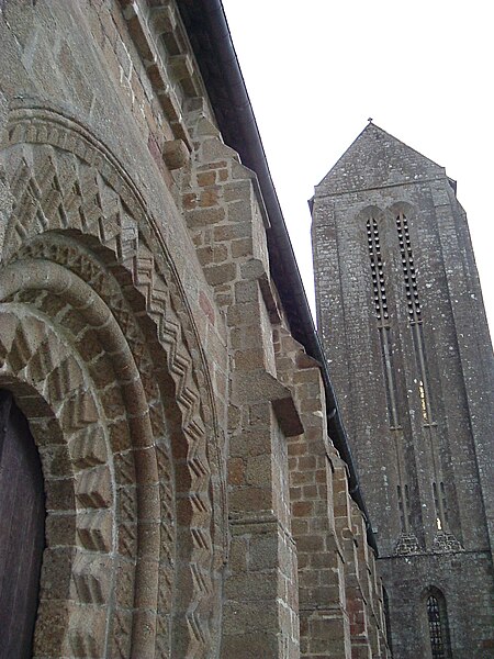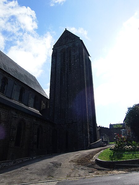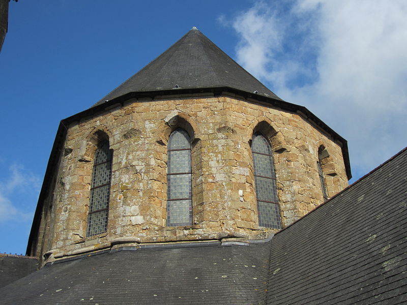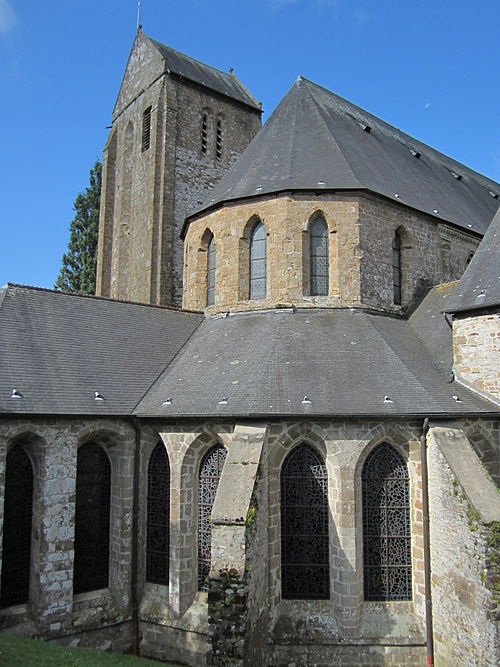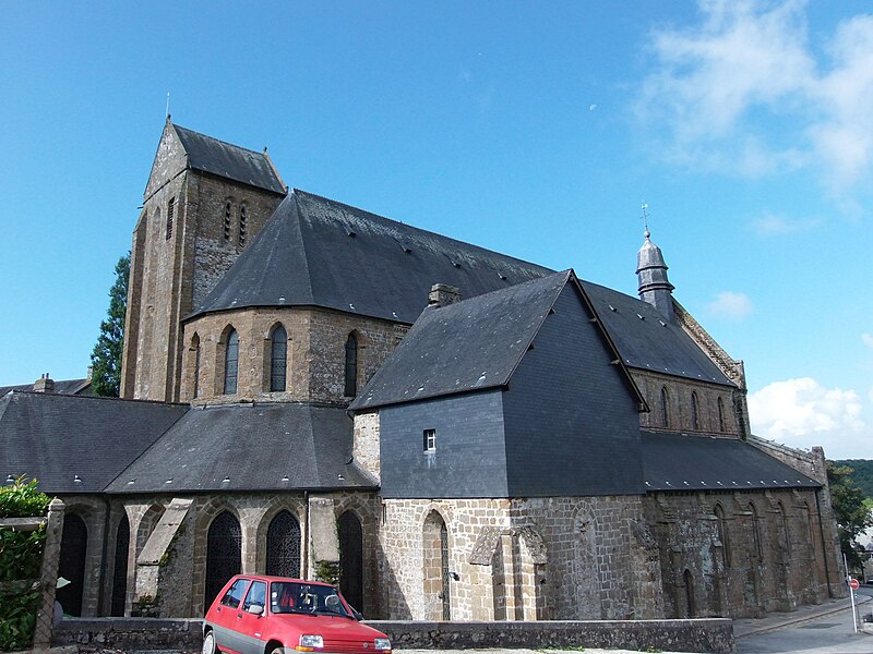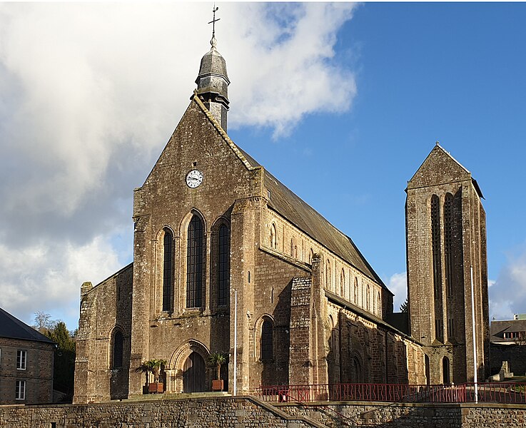 La collégiale Saint-Évroult se dresse à Mortain, dans le département de la Manche, et fait l’objet d’un classement au titre des monuments historiques. Fondée en 1082 par Robert, comte de Mortain, frère utérin de Guillaume le Conquérant, elle fut érigée en collégiale et dotée de chanoines par les soins de son fondateur et de son épouse Mathilde de Montgommery, avec l’accord des autorités ecclésiastiques et la présence de plusieurs évêques et seigneurs à sa dédicace. Robert institua un doyen et huit prébendes à la charge du fondateur, auxquelles s’ajoutèrent sept prébendes créées par les barons du comte ; des églises, des dîmes, terres et revenus furent affectés pour assurer leur entretien. Le fils du fondateur, Guillaume de Mortain, et d’autres bienfaiteurs augmentèrent les dotations, tandis que des dispositions particulières organisèrent les droits et privilèges des chanoines, notamment sur l’enseignement et certaines offrandes. L’édifice primitif fut en partie détruit par un incendie en 1204 ; la reconstruction, engagée à partir de 1216, fut largement financée par Mathilde de Dammartin et Philippe Hurepel, aboutissant à l’église actuelle datée des années 1230–1250. La collégiale dut faire face aux troubles des siècles suivants, notamment aux atteintes subies pendant les guerres de Religion et aux changements de l’organisation capitulaire, avec des réductions et des indemnités versées aux chanoines à la fin de l’Ancien Régime. Sur le plan éducatif, la collégiale soutint des enseignements : la prébende théologale et la prébende préceptorale furent chargées de prêcher, catéchiser et instruire les jeunes, et le collège connut des réformes et des rétablissements entre le XVIIe et le XVIIIe siècle. Parmi les reliques conservées figure le corps de saint Guillaume Firmat, élevé dans la collégiale au XIIe siècle et vénéré sur un autel du bas-côté sud. D’un point de vue architectural, seul subsiste de l’église romane incendiée le portail géométrique du mur sud, datant du début du XIIe siècle ; le reste de l’édifice résulte de la reconstruction du XIIIe siècle, œuvre mêlant influences de l’Île-de-France et traits normands selon les parties et les architectes successifs. Construite en granit, la collégiale présente une nef de neuf travées, un chevet circulaire et des bas-côtés formant un déambulatoire ouvrant sur une chapelle unique ; la nef, autrefois limitée par un badigeonnage, a retrouvé après la restauration de 1993 la voûte en bois mise en valeur. Les éléments stylistiques témoignent d’un premier gothique francilien pour les colonnes massives aux tailloirs carrés et d’un vocabulaire normand pour les faisceaux de colonnettes adossées, le chœur et le clocher latéral avec leurs culots et tailloirs caractéristiques. La façade occidentale, sobre, est rythmée par des contreforts et un portail occidental du XIIIe siècle ; deux tours avaient été projetées au droit du chœur, mais seule la tour droite, coiffée en bâtière, fut achevée aux XVe–XVIe siècles. Le chapitre possédait deux dignités, doyen et chantre, et quatorze prébendes dont celle de Gorron, et disposait de fiefs, rentes et maisons attachés à ces bénéfices. Le mobilier et le trésor de la collégiale comprennent plusieurs pièces remarquables : un chrismale anglo-saxon de la fin du VIIe siècle, orné de cuivre repoussé et portant une inscription runique, vingt-quatre stalles du XVIe siècle sculptées de miséricordes figurées, un maître-autel du milieu du XVIIIe siècle en marbre, une grande lampe de sanctuaire en bronze doré, un chandelier pascal, le buffet d’orgue du XVIIIe siècle et divers tableaux et panneaux datés du XVIIe au XIXe siècle. La chapelle Saint-Michel conserve un panneau de la Cène daté de la fin du XVIe ou du début du XVIIe siècle, et plusieurs statues et éléments liturgiques complètent le mobilier classé ou signalé. Le sceau ogival du chapitre, daté du XVIe siècle, représente deux bustes accolés et une croix fleurie ; l’ensemble témoigne de l’importance liturgique et communautaire de la collégiale dans l’histoire religieuse et patrimoniale de Mortain.