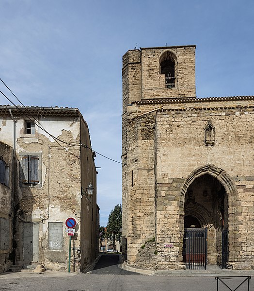 L'église Saint-Félix de Lézignan-Corbières, située dans l'Aude (région Occitanie), dépend du diocèse de Carcassonne et Narbonne et est inscrite au titre des monuments historiques depuis 1951. Elle apparaît dans des documents anciens : un diplôme de Charlemagne du 5 avril 806 l'attribue à l'abbé de Lagrasse, et la charte de 899 la mentionne déjà comme sanctuaire de la ville. Dans une bulle papale de 1119, Lézignan figure parmi les possessions de l'abbaye de Lagrasse pour ses églises Saint-Félix et Saint-Nazaire, avec la dénomination de « castrum ». Dès le IXe siècle, le territoire de Lézignan était morcelé en trois parts, revenant respectivement à Lagrasse, à des émigrés espagnols et au fisc royal, ce qui empêcha les abbés de Lagrasse d'obtenir la seigneurie entière malgré leurs revendications. Au XIIIe siècle, l'église devient le siège d'une prévôté et, selon les registres du Vatican, elle est paroissiale en 1351 ; le prieuré est rattaché à la mense conventuelle en 1453, après quoi l'édifice est desservi par des prêtres séculiers désignés par le chapitre. Les campagnes de construction et de transformation sont longues : la reconstruction datée par l'inscription d'une panne à 1334 concerne la première moitié du XIVe siècle, et la partie occidentale fut achevée ou rebâtie un siècle plus tard. Jean de Corsier, lors de sa visite en 1453-57, constate que l'église est bien réparée mais pas entièrement achevée. Sur le plan architectural, l'édifice présente une vaste nef unique divisée en quatre travées, bordée de chapelles latérales — sept chapelles, la huitième ayant été remplacée par le porche — et terminée par un chevet à sept pans. Le chevet, véritable point de départ des travaux gothiques aux XIIIe-XIVe siècles, est encadré au nord par une tourelle carrée et au sud par une ancienne sacristie prolongée au XIXe siècle par une nouvelle sacristie appuyée aux contreforts. Le clocher, puissante tour carrée qui encadre la travée du fond avec le porche, s'ouvre sur une chapelle par une large arcade ; ses étages supérieurs sont voûtés, le premier en arc de cloître et le second en coupole, et un escalier à vis polygonal, plus élevé d'un étage, lui est accolé à l'ouest. De l'époque romane subsistent surtout le mur pignon occidental et quatre massifs encadrant la nef au droit des second et troisième doubleaux, reconnaissables au petit appareil allongé en calcaire gris ; ces éléments suggèrent une nef romane à charpente reposant sur arcs diaphragmes. Lors de la reconstruction gothique, certains bois réemployés proviennent de voliges taillées à la hache, retrouvées lors de travaux et datées probablement des XIe ou XIIe siècles. Un clocher-mur percé de quatre baies limite le fond de la nef actuelle ; il aurait été conservé ou élevé après l'abandon d'un projet de tours latérales, hypothèse située vers le milieu du XIIIe siècle, ou bien résulter d'une reprise plus récente liée à une réparation ou à l'éclairement d'une tribune. Les quatre premières chapelles du côté du chœur sont considérées comme postérieures, peut‑être du XVe siècle, et l'achèvement au XVe siècle concerne essentiellement la travée de fond, ses chapelles adjacentes, le porche et le clocher-donjon. La nef, initialement couverte en lauzes et charpentée sur arcs diaphragmes, se trouve aujourd'hui voûtée en briques depuis les travaux de 1856, qui ont également porté sur les boiseries du chœur et la surélévation du dallage. Une tribune édifiée en 1877, placée sur le revers de la façade occidentale, accueille un orgue pneumatique ; lors de ces travaux, d'anciennes baies du clocher-mur furent dégagées. Des campagnes de restauration récentes ont permis de dégager le crépi du mur intérieur ouest et de mettre au jour le mur carolingien primitif. L'intérieur est rythmé par des arcs doubleaux reposant sur des piliers séparant les chapelles, dont certaines accueillent des vitraux dédiés à sainte Colette, saint Régis et saint Félix ; le vitrail central porte les armoiries de la ville. L'église conserve plusieurs œuvres et meubles d'intérêt : statues de la bienheureuse Bonne d'Armagnac et de sainte Claire d'Assise, une représentation de saint François recevant les stigmates datée du XVIIe siècle, deux statues dans le chœur dont l'une serait saint Antoine de Padoue, le maître-autel en marbre du XVIIIe siècle et une chaire à prêcher des XVIIe/XVIIIe siècles. La chapelle Saint-François a reçu en 1792 les tableaux, bustes et statues du monastère des Clarisses lors de sa sécularisation. Le trésor de l'église a souffert de plusieurs vols : le buste de la bienheureuse Bonne d'Armagnac fut dérobé le 22 novembre 1980 puis restitué, un panneau peint de la Nativité attribué à l'école allemande du XVe siècle fut volé en mai 1981, et plusieurs ciboires, calices et patènes des XVIIe et XVIIIe siècles furent dérobés dans la nuit du 23 au 24 octobre 1990.