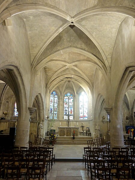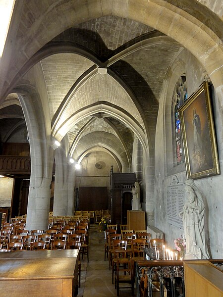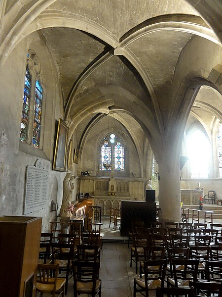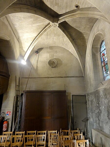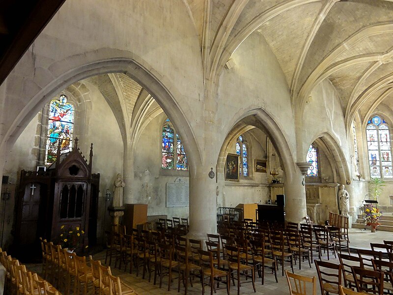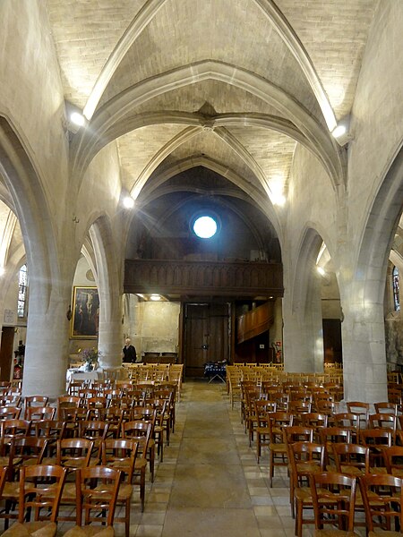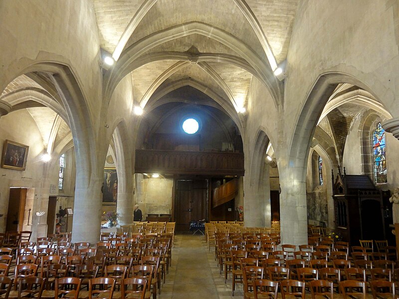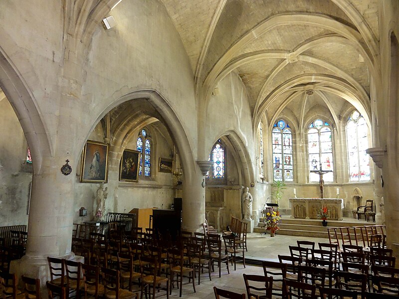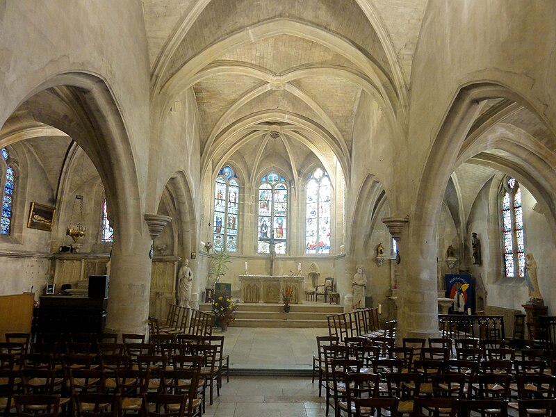 L'église Saint‑Firmin est une paroisse catholique de Vineuil‑Saint‑Firmin (Oise), située près de Chantilly, dans le Parc naturel régional Oise‑Pays de France, au nord de la rue de Senlis (RD 924) dans l'ancien village de Saint‑Firmin. L'édifice actuel a remplacé une église médiévale et a été reconstruit en une unique campagne entre 1540 et 1543 grâce au mécénat du connétable Anne de Montmorency. De dimensions modestes, son architecture relève d'un gothique flamboyant simple et harmonieux, marqué par des formes et des proportions équilibrées. L'homogénéité générale se révèle malgré une grande diversité des réseaux de fenêtres : sur quinze baies, au plus trois présentent le même dessin. Les cinq verrières historiées de la Renaissance, regroupées dans le chœur et offertes en grande partie par Anne de Montmorency et ses proches, constituent la principale richesse de l'édifice. Ces verrières, longuement attribuées à des maîtres de l'époque et restaurées sous la direction d'Auguste Steinheil en 1881‑1882, sont protégées comme objets aux titres des monuments historiques depuis 1886. L'église elle‑même a été inscrite au titre des monuments historiques par arrêté du 13 février 1970 et a bénéficié de travaux de restauration au cours de la même période. L'édifice est orienté selon un plan basilical simple : une nef accompagnée de deux bas‑côtés, un faux transept peu saillant et un chœur d'une seule travée formant une abside à cinq pans. La longueur totale atteint 27 mètres et la largeur 16 mètres, le clocher s'implantant sur la première travée du bas‑côté nord et se coiffant d'une flèche en charpente. L'intérieur est voûté d'ogives simples ; nef et croisée forment un vaisseau central homogène, sans fenêtres hautes, ce qui crée un espace relativement sombre et intime. Les ogives, de type surbaissé et prismatique, les piliers monocylindriques appareillés en tambour et les grandes arcades témoignent d'un vocabulaire sobre du dernier gothique. Les bas‑côtés reprennent les mêmes dispositions structurelles tout en offrant des baies latérales aux remplages variés, illustrant la variété des réseaux de l'édifice. Le chœur, élevé à la même hauteur que le vaisseau central mais surélevé par trois marches, présente six ogives rayonnantes autour d'une clé centrale frappée des armes d'Anne de Montmorency. Extérieurement, l'église est construite principalement en moellons hourdés, avec un moyen appareil et des éléments de pierre de taille pour les contreforts, les encadrements et la corniche ; seules quelques croix d'antéfixe offrent un décor sculpté de style flamboyant. Le portail latéral, en anse de panier, est entouré d'une niche abritant une statue polychrome de saint Firmin céphalophore ; de petits griffons flanquent l'entrée, sans que leur datation soit certaine. Le clocher, implanté de façon inhabituelle au nord du vaisseau, présente une tourelle d'escalier ronde et un étage de beffroi sobre, compensés par la finesse de sa flèche en charpente. L'église conserve un mobilier riche : outre les verrières, plusieurs statues et tableaux anciens sont classés ou protégés. Parmi les statues figurent un saint Jean en bois et un Ecce Homo en bois, classés et restaurés en 1944, ainsi que deux statues en marbre de saint Jacques et de sainte Marie‑Madeleine, classées depuis 1912 ; la Vierge de douleur en bois et une statue d'un saint évêque complètent l'ensemble. Les tableaux comprennent notamment une Éducation de la Vierge attribuée à un maître anonyme de l'école française du XVIIe siècle, restaurée en 2003, ainsi que plusieurs toiles des XVIIIe et XIXe siècles, certaines restaurées récemment. Le mobilier comporte aussi une cloche parrainée par le duc et la duchesse d'Aumale, un monument aux morts communal, des fonts baptismaux installés en 1860, des châsses en cuivre doré et un maître‑autel néogothique offert par la famille Willequez et consacré en 1866. Plusieurs dalles et plaques funéraires anciennes, dont celle de Guillaume Siby et d'Élisabeth Le Roy et la dalle de Louis de Butor, ont été conservées et redressées dans la chapelle des fonts baptismaux ou le bas‑côté sud. L'historique liturgique et paroissial reflète les bouleversements de l'époque moderne : après des regroupements de paroisses au sortir de la guerre de Cent Ans, l'édifice fut rebâti au XVIe siècle, endommagé pendant la Révolution et restauré au XIXe siècle. Au XIXe siècle, la vente envisagée des fragments de vitraux pour financer des réparations n'aboutit pas et les fragments furent reconstitués dans les cinq baies du chœur vers 1840 ; la sacristie date de 1855 et la tribune de 1868. Le hameau de Vineuil a pris le nom de Vineuil‑Saint‑Firmin en 1909 et dispose d'une petite chapelle néoromane transformée au XIXe siècle, aujourd'hui fermée pour raisons de sécurité. L'église n'a plus de prêtre résident depuis la mort de l'abbé Fernand Verté en 1991 et dépend désormais de la paroisse Sainte‑Famille de Chantilly ; les messes dominicales y sont généralement célébrées environ deux fois par mois, le dimanche à 9 h 30. Les vitraux du chœur présentent une iconographie hagiographique et biblique riche — scènes de la crucifixion, arbre de Jessé, saints patronaux et figures de donateurs — et leur attribution à un atelier précis reste discutée dans la bibliographie. Les baies des bas‑côtés ont quant à elles été, pour la plupart, refaites au XIXe siècle et comprennent des verrières historiées et ornementales réalisées après la restauration des verrières du chœur. L'accès à l'église s'effectue depuis un parvis en terrasse accessible par au moins sept marches, la rue de Senlis et le sentier de l'Église entourant l'édifice ; seules l'élévation méridionale et une partie du chevet sont aisément visibles depuis la voie
