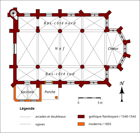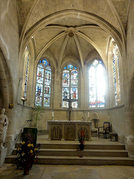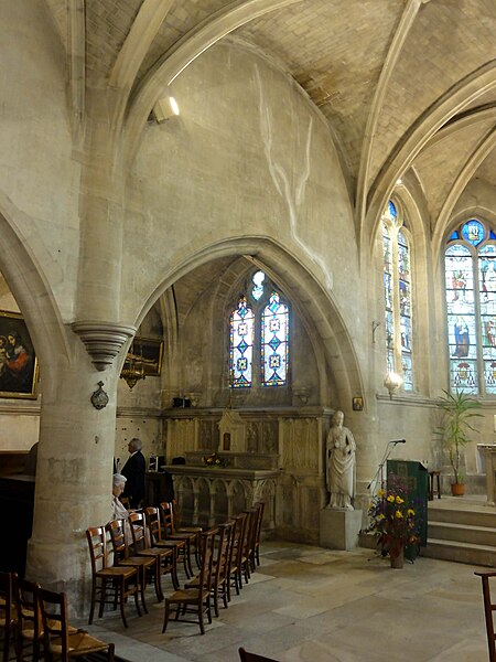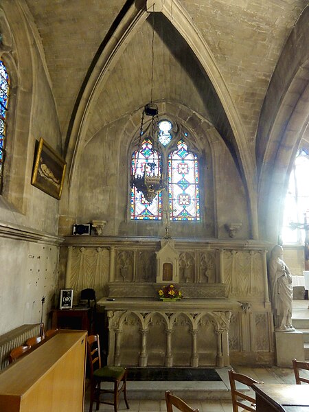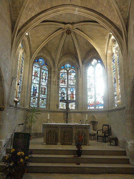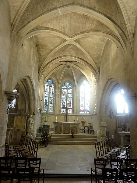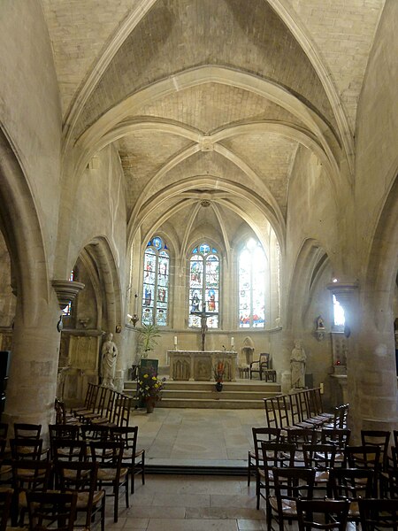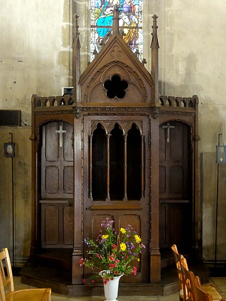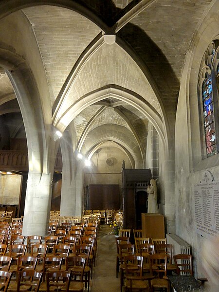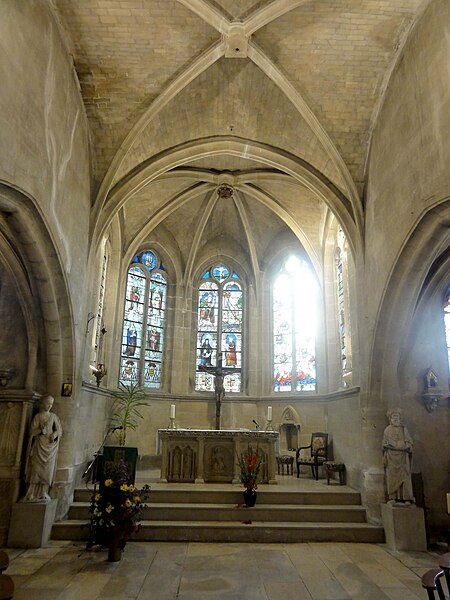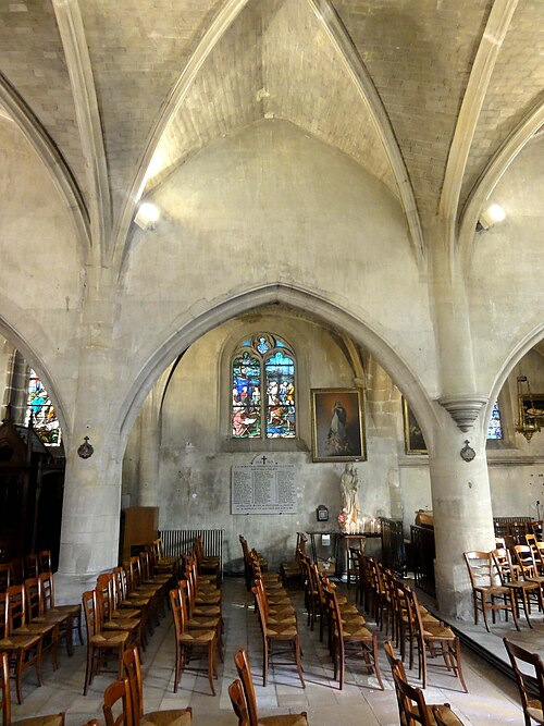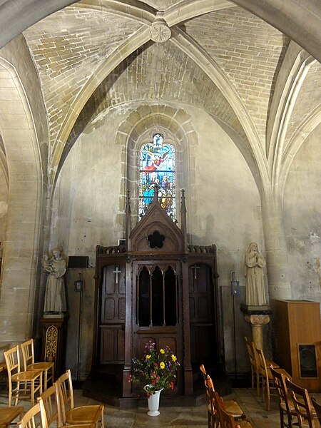 L'église Saint‑Firmin est une paroisse catholique de Vineuil‑Saint‑Firmin (Oise), située près de Chantilly, dans le Parc naturel régional Oise‑Pays de France, au nord de la rue de Senlis (RD 924) dans l'ancien village de Saint‑Firmin. L'édifice actuel a remplacé une église médiévale et a été reconstruit en une unique campagne entre 1540 et 1543 grâce au mécénat du connétable Anne de Montmorency. De dimensions modestes, son architecture relève d'un gothique flamboyant simple et harmonieux, marqué par des formes et des proportions équilibrées. L'homogénéité générale se révèle malgré une grande diversité des réseaux de fenêtres : sur quinze baies, au plus trois présentent le même dessin. Les cinq verrières historiées de la Renaissance, regroupées dans le chœur et offertes en grande partie par Anne de Montmorency et ses proches, constituent la principale richesse de l'édifice. Ces verrières, longuement attribuées à des maîtres de l'époque et restaurées sous la direction d'Auguste Steinheil en 1881‑1882, sont protégées comme objets aux titres des monuments historiques depuis 1886. L'église elle‑même a été inscrite au titre des monuments historiques par arrêté du 13 février 1970 et a bénéficié de travaux de restauration au cours de la même période. L'édifice est orienté selon un plan basilical simple : une nef accompagnée de deux bas‑côtés, un faux transept peu saillant et un chœur d'une seule travée formant une abside à cinq pans. La longueur totale atteint 27 mètres et la largeur 16 mètres, le clocher s'implantant sur la première travée du bas‑côté nord et se coiffant d'une flèche en charpente. L'intérieur est voûté d'ogives simples ; nef et croisée forment un vaisseau central homogène, sans fenêtres hautes, ce qui crée un espace relativement sombre et intime. Les ogives, de type surbaissé et prismatique, les piliers monocylindriques appareillés en tambour et les grandes arcades témoignent d'un vocabulaire sobre du dernier gothique. Les bas‑côtés reprennent les mêmes dispositions structurelles tout en offrant des baies latérales aux remplages variés, illustrant la variété des réseaux de l'édifice. Le chœur, élevé à la même hauteur que le vaisseau central mais surélevé par trois marches, présente six ogives rayonnantes autour d'une clé centrale frappée des armes d'Anne de Montmorency. Extérieurement, l'église est construite principalement en moellons hourdés, avec un moyen appareil et des éléments de pierre de taille pour les contreforts, les encadrements et la corniche ; seules quelques croix d'antéfixe offrent un décor sculpté de style flamboyant. Le portail latéral, en anse de panier, est entouré d'une niche abritant une statue polychrome de saint Firmin céphalophore ; de petits griffons flanquent l'entrée, sans que leur datation soit certaine. Le clocher, implanté de façon inhabituelle au nord du vaisseau, présente une tourelle d'escalier ronde et un étage de beffroi sobre, compensés par la finesse de sa flèche en charpente. L'église conserve un mobilier riche : outre les verrières, plusieurs statues et tableaux anciens sont classés ou protégés. Parmi les statues figurent un saint Jean en bois et un Ecce Homo en bois, classés et restaurés en 1944, ainsi que deux statues en marbre de saint Jacques et de sainte Marie‑Madeleine, classées depuis 1912 ; la Vierge de douleur en bois et une statue d'un saint évêque complètent l'ensemble. Les tableaux comprennent notamment une Éducation de la Vierge attribuée à un maître anonyme de l'école française du XVIIe siècle, restaurée en 2003, ainsi que plusieurs toiles des XVIIIe et XIXe siècles, certaines restaurées récemment. Le mobilier comporte aussi une cloche parrainée par le duc et la duchesse d'Aumale, un monument aux morts communal, des fonts baptismaux installés en 1860, des châsses en cuivre doré et un maître‑autel néogothique offert par la famille Willequez et consacré en 1866. Plusieurs dalles et plaques funéraires anciennes, dont celle de Guillaume Siby et d'Élisabeth Le Roy et la dalle de Louis de Butor, ont été conservées et redressées dans la chapelle des fonts baptismaux ou le bas‑côté sud. L'historique liturgique et paroissial reflète les bouleversements de l'époque moderne : après des regroupements de paroisses au sortir de la guerre de Cent Ans, l'édifice fut rebâti au XVIe siècle, endommagé pendant la Révolution et restauré au XIXe siècle. Au XIXe siècle, la vente envisagée des fragments de vitraux pour financer des réparations n'aboutit pas et les fragments furent reconstitués dans les cinq baies du chœur vers 1840 ; la sacristie date de 1855 et la tribune de 1868. Le hameau de Vineuil a pris le nom de Vineuil‑Saint‑Firmin en 1909 et dispose d'une petite chapelle néoromane transformée au XIXe siècle, aujourd'hui fermée pour raisons de sécurité. L'église n'a plus de prêtre résident depuis la mort de l'abbé Fernand Verté en 1991 et dépend désormais de la paroisse Sainte‑Famille de Chantilly ; les messes dominicales y sont généralement célébrées environ deux fois par mois, le dimanche à 9 h 30. Les vitraux du chœur présentent une iconographie hagiographique et biblique riche — scènes de la crucifixion, arbre de Jessé, saints patronaux et figures de donateurs — et leur attribution à un atelier précis reste discutée dans la bibliographie. Les baies des bas‑côtés ont quant à elles été, pour la plupart, refaites au XIXe siècle et comprennent des verrières historiées et ornementales réalisées après la restauration des verrières du chœur. L'accès à l'église s'effectue depuis un parvis en terrasse accessible par au moins sept marches, la rue de Senlis et le sentier de l'Église entourant l'édifice ; seules l'élévation méridionale et une partie du chevet sont aisément visibles depuis la voie