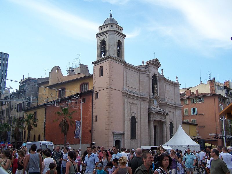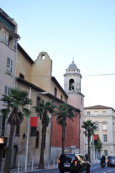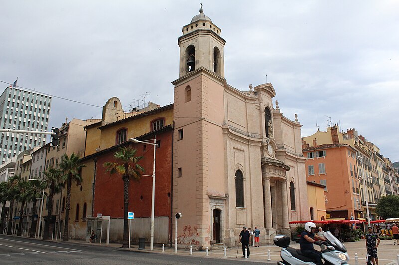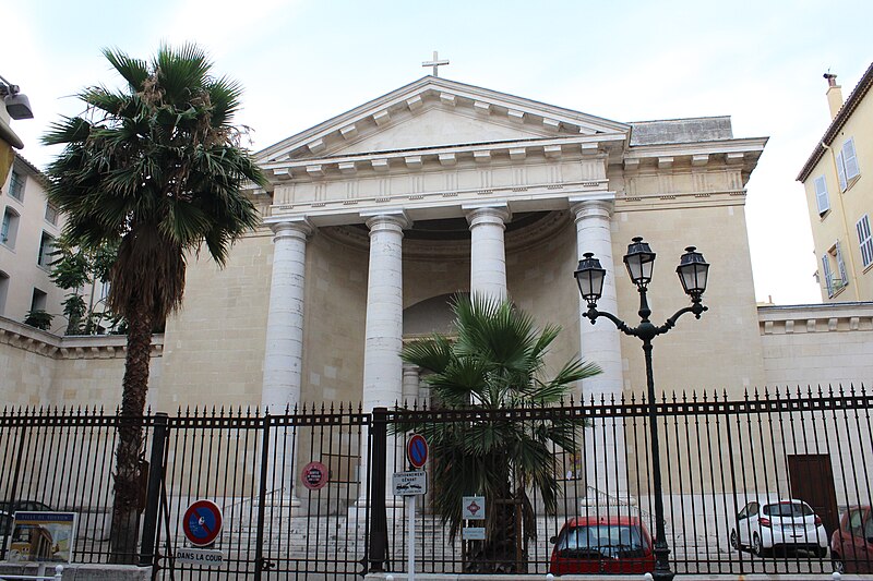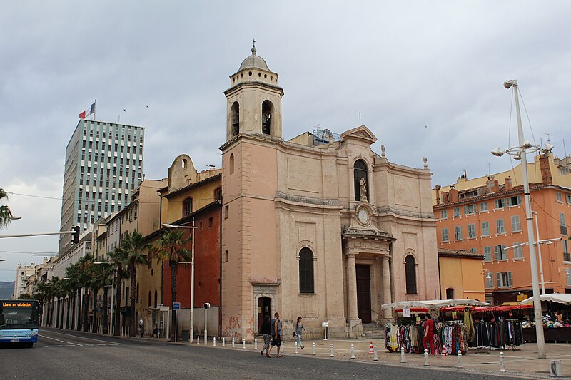 L'église Saint-Louis est une église catholique située à Toulon, dans le département du Var. En 1705, Monseigneur de Chalucet, alors évêque de Toulon, décide d'édifier une nouvelle église pour desservir la partie ouest de la ville. En 1707, il crée une paroisse dans l'église Saint-Sébastien, située à l'angle des rues Pierre-Sémard et des Savonnières. Il obtient du roi Louis XIV la concession d'une partie de la place d'Armes et pose la première pierre en 1709. Alors que la construction est déjà bien avancée, les murs atteignant plus de trois mètres, les travaux sont interrompus en 1720, huit ans après la mort de Monseigneur de Chalucet, en raison d'une épidémie de peste qui décime 15 000 habitants, soit la moitié de la ville. Les travaux reprennent en 1767 puis sont à nouveau stoppés en 1776, alors que l'église est pratiquement achevée. Le roi Louis XVI, estimant que l'édifice gênait les manœuvres de la garnison sur la place d'Armes, ordonne sa démolition, effectuée en 1780. En contrepartie, et à la suite d'une demande du conseil municipal — accompagnée, paraît-il, d'un « pot de vin » de 300 bouteilles de champagne — le roi accorde un nouveau terrain sur l'emplacement du couvent des Capucins. Le nouvel édifice est bâti par Sigaud de 1782 à 1788. En 1794, pendant la Révolution française, il est consacré au culte de la Raison et de l'Être suprême, puis il sert de dépôt de munitions et de caserne jusqu'en 1803, quand Napoléon Ier le rend au culte catholique. L'église est consacrée le 25 janvier 1858 par l'évêque de Fréjus, Monseigneur Jordany. Restaurée après-guerre par Colas, elle constitue un bel exemple d'architecture néo-classique, en forme de temple grec. Elle comporte trois nefs séparées par des architraves reposant sur une double colonnade dorique. Le chœur, entouré de dix colonnes corinthiennes, est surplombé d'une coupole à lanternons. L'édifice est classé au titre des monuments historiques depuis 1945. Des ressources et liens incluent Clochers de France, GCatholic.org, l'Observatoire du patrimoine religieux, la base Mérimée, une visite virtuelle et plusieurs portails consacrés aux monuments historiques, à l'architecture chrétienne et à Toulon.