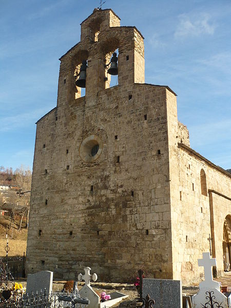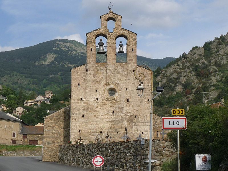 L'église Saint‑Fructueux de Llo (Sant Fructuós de Llo en catalan) est une église romane située à Llo, en Cerdagne, dans le département des Pyrénées‑Orientales (région Occitanie). Elle est mentionnée pour la première fois dans l'Acte de Consécration de la Cathédrale de la Seu d'Urgell au Xe siècle sous le nom d'Allone. L'édifice roman actuel date du XIIe siècle et est classé au titre des monuments historiques depuis le 3 août 1932. L'église se compose d'une nef unique voûtée en berceau brisé et d'un chevet semi‑circulaire ; la nef était à l'origine éclairée au sud par trois baies aujourd'hui masquées par des chapelles latérales postérieures. Le chevet en cul‑de‑four est décoré d'une corniche en dents de scie portée par des corbelets sculptés. L'édifice est principalement bâti en pierre de taille, seules quelques parties, notamment les chapelles latérales et le sommet du clocher‑mur, étant en moellon. Le clocher, constitué par le surhaussement de la façade, est percé de baies à jour où sont placées les cloches ; il se présente comme un clocher‑mur à trois baies. L'accès se fait par un porche méridional orné de quatre colonnettes aux chapiteaux à feuilles d'acanthe qui supportent une grande archivolte décorée de cannelures rayonnantes et de motifs en saillie (têtes de taureaux, d'oiseaux, de monstres). Les arêtes des redents qui cantonnent les colonnettes portent une gorge agrémentée de têtes humaines ou de chapiteaux sculptés. Le portail ne comporte pas de tympan ; la porte en bois moderne conserve deux marteaux à anneau du XVIe siècle. Le portail méridional est encadré de colonnes en granit dont les chapiteaux en marbre à motifs végétaux soutiennent une archivolte à quatre voussures : la première est un arc torique, la seconde une frise plissée, la troisième présente des ornements similaires à ceux de la fenêtre absidiale et la quatrième est non ornée. Le chevet, élevé en grand appareil, est surmonté d'une frise de dents d'engrenage et d'une corniche biseautée soutenue par des modillons sculptés représentant animaux et motifs géométriques. La fenêtre absidiale, à double ébrasement, possède des claveaux biseautés décorés de boules, d'animaux et de visages fantastiques.