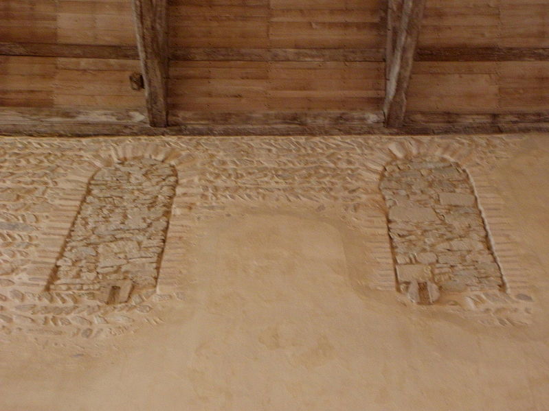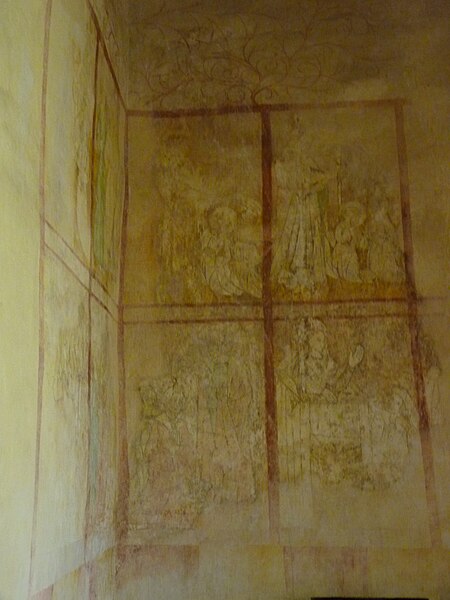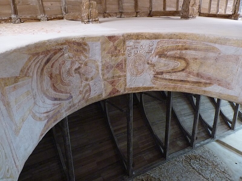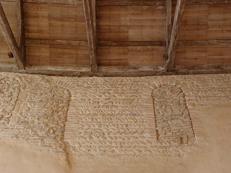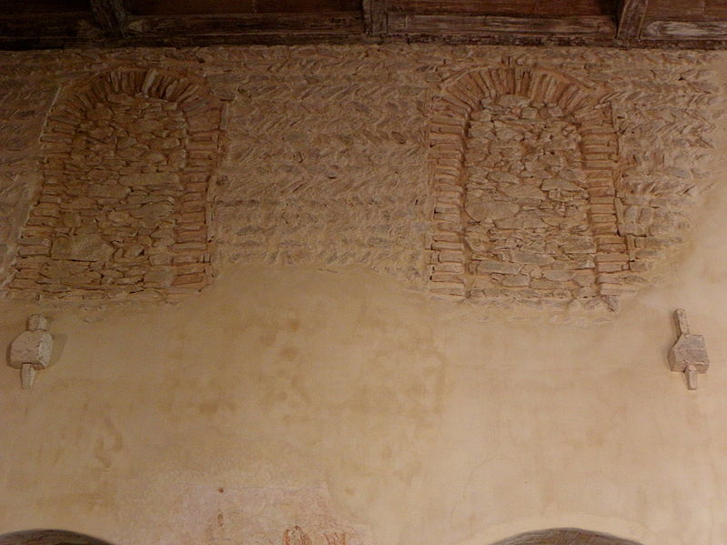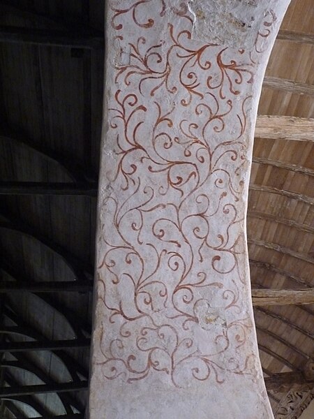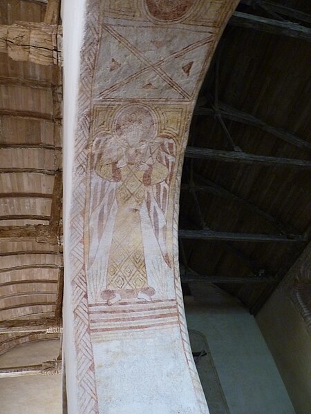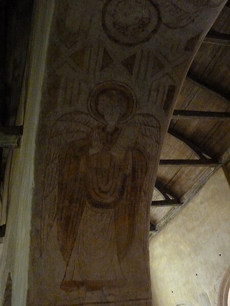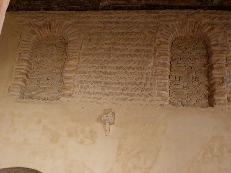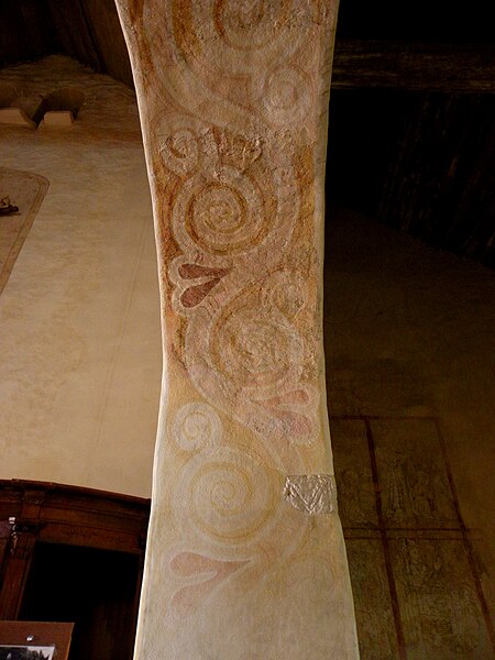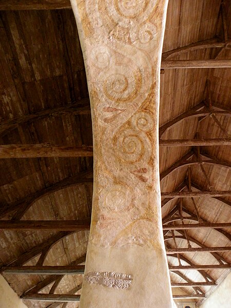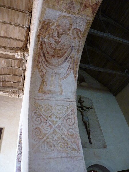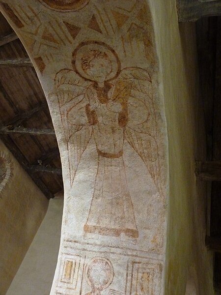 La nef romane, composée de cinq travées et flanquée de bas-côtés, est couverte d'une charpente ; ses arcades en plein cintre retombent directement sur des piliers carrés dépourvus d'imposte. Au-dessus, le mur nu était percé de grandes fenêtres peu ébrasées montant jusqu'aux cintres ; ces baies ont été murées lors de la reconstruction qui a rehaussé la couverture des bas-côtés, alors que la nef était à l'origine largement éclairée par des collatéraux plus bas. On note la présence d'un appareillage en opus sicatum dans la maçonnerie de la façade occidentale ; ces dispositions, caractéristiques du premier art roman, plaident pour une datation autour ou plutôt avant l'an 1000. Sous l'enduit ont été découvertes, à l'intrados des grandes arcades, des fresques romanes ainsi que des peintures gothiques et du XVIIe siècle. Les peintures romanes représentent des anges et des saints en pied accompagnés d'inscriptions, insérés dans un décor géométrique et végétal, et comprennent une très rare représentation de saint Michel psychopompe avec un apport stylistique byzantin. Elles sont sans équivalent par leur style, semblent indépendantes des écoles régionales qui ont produit les autres peintures bretonnes, et ont été exécutées avec une gamme de pigments très réduite ; leur stylisation rappelle à plusieurs égards les sculptures de chapiteaux romans, notamment celles de l'église Saint-Pierre-et-Saint-Paul de Fouesnant. La datation de ces peintures fait l'objet d'un débat : elles sont placées par divers auteurs entre le IXe et le XIIe siècle, certains estimant un début du XIe siècle, d'autres les rattachant au XIIe, tandis qu'une hypothèse propose des couches anciennes du Xe siècle retouchées au XIIe siècle.