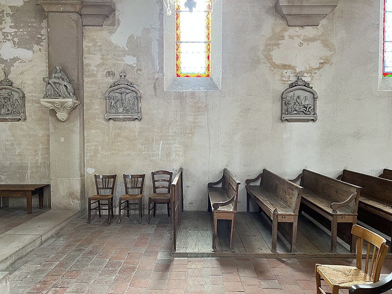 Le mobilier comprend notamment une pietà et une sainte Catherine en pierre, attribuées aux XVe ou XVIe siècles et découvertes enfouies dans l'ancien cimetière voisin, un Christ en croix en bois peint du XVIIIe siècle, une toile du XVIIIe siècle représentant saint Gengoux en soldat romain dans un autel latéral, ainsi qu'un confessionnal et une chaire à prêcher en bois sculpté.