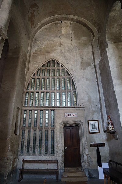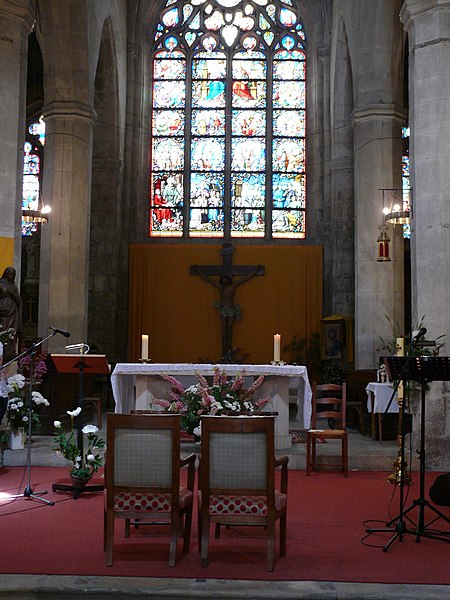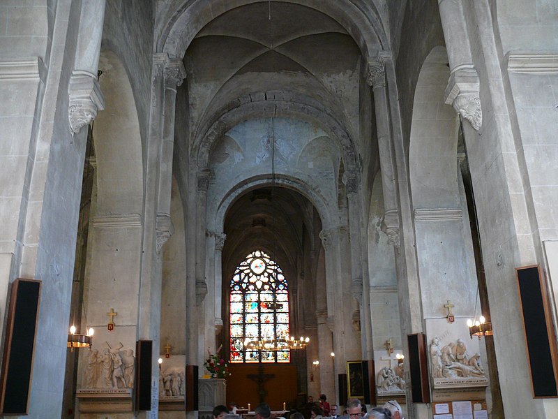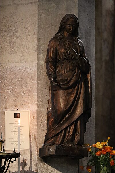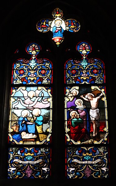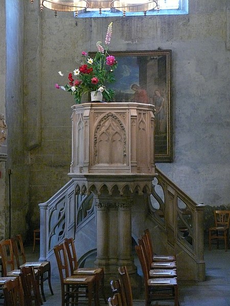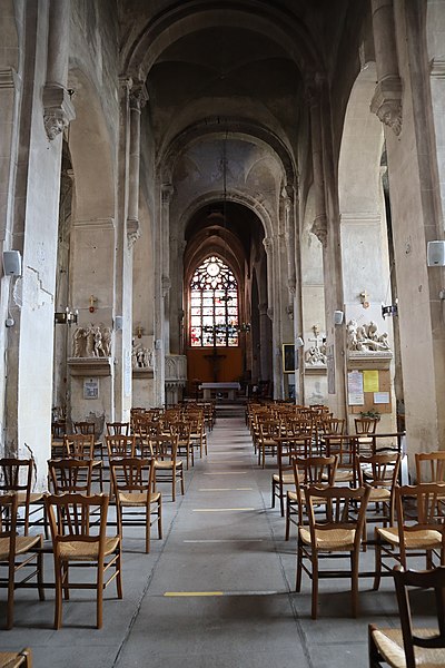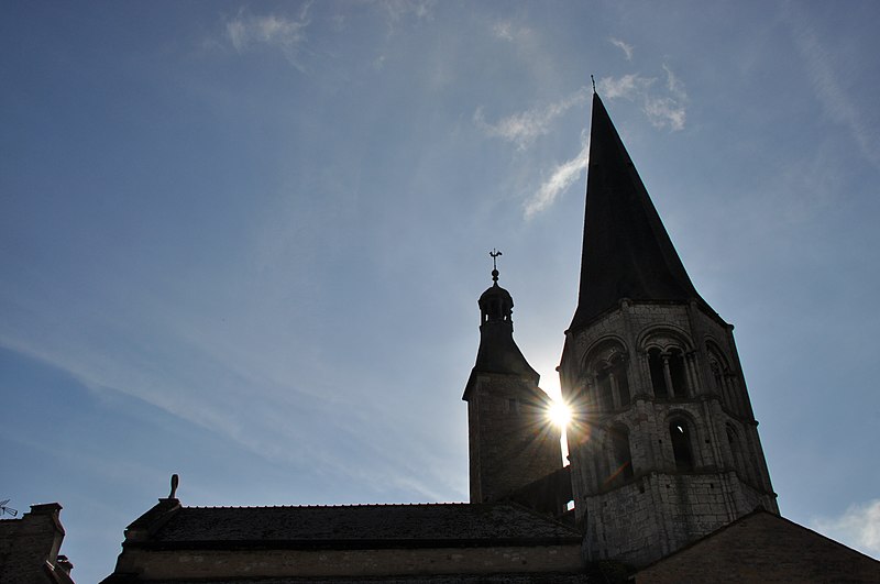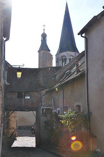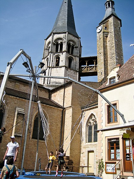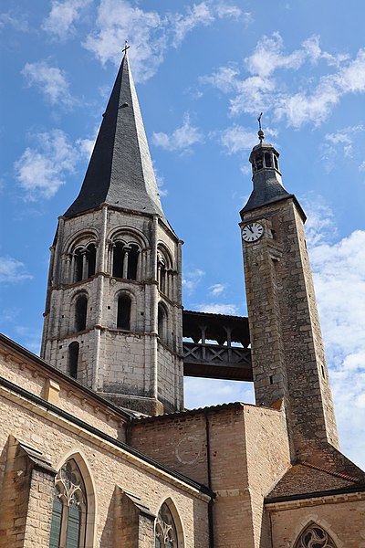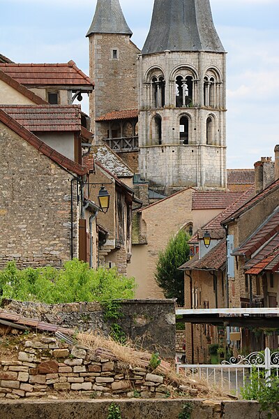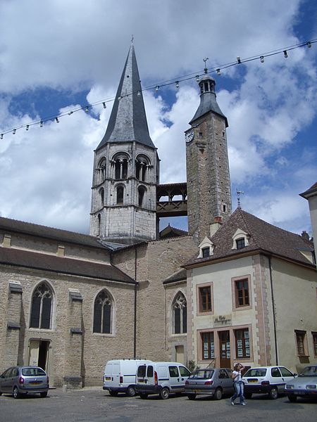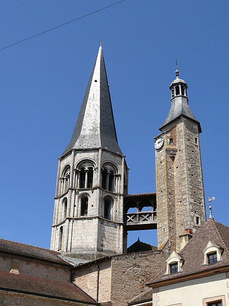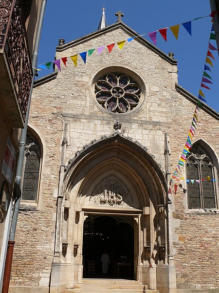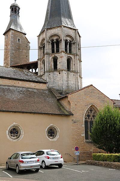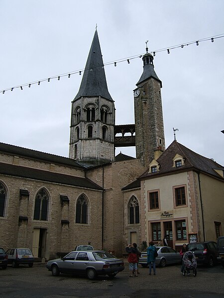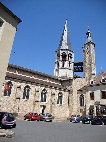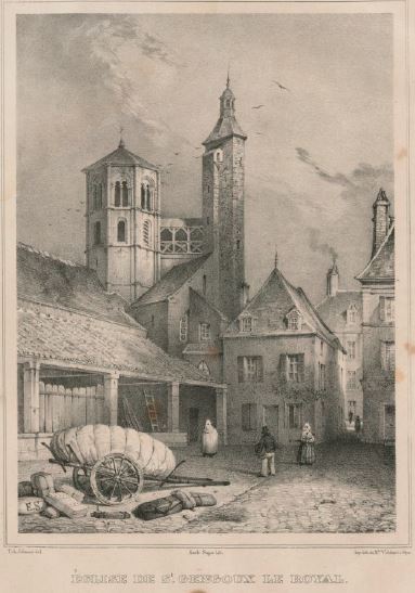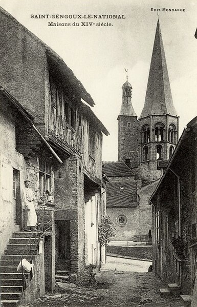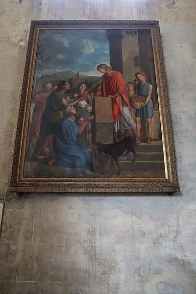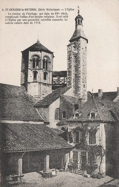 L'église Saint‑Gengoux est située à Saint‑Gengoux‑le‑National en Saône‑et‑Loire. Elle date du XIIe siècle et relève de la paroisse Saint‑Louis‑entre‑Grosne‑et‑Guye, dont le siège est à Saint‑Gengoux‑le‑National. Au Xe siècle, un doyenné dépendant de l'abbaye de Cluny est établi sur le site. L'église est achevée à la fin du XIIe siècle. Elle est incendiée par les huguenots vers 1556 puis reconstruite. En 1802, quatre chapelles attenantes sont détruites pour permettre la construction d'une halle aux blés, elle‑même démolie à la fin du XIXe siècle. En 1867, le toit trapu est remplacé par une flèche pointue en ardoise dessinée par Eugène Viollet‑le‑Duc. De nombreux travaux ont été réalisés aux XVIIIe et XIXe siècles : la nef et les bas‑côtés datent du XVIIIe siècle et les interventions de 1821, 1850, 1874 et 1890 ont concerné la toiture, les murs et les chapelles. Depuis 1899, des reliques de saint Gengoux (un morceau de la tête du tibia) sont conservées dans l'édifice, rapportées par le curé‑archiprêtre. En 2003, la passerelle couverte en bois reliant la tour de l'Horloge au clocher octogonal a été rétablie en bois après avoir été remplacée par un tablier métallique. Depuis août 2004, l'église est inscrite à la Fédération européenne des sites clunisiens. L'édifice est protégé au titre des Monuments historiques par arrêté du 29 octobre 1926. Consacrée et relevant du diocèse d'Autun, l'église appartient à la paroisse Saint‑Louis‑entre‑Grosne‑et‑Guye et reste un lieu de culte catholique. L'architecture comprend une nef de quatre travées avec bas‑côtés, un transept et un chœur de trois travées. Le clocher octogonal, partie romane de l'édifice, s'élève sur la croisée du transept et comprend trois étages. Un pontet en bois relie ce clocher à la tour de l'horloge. L'église a conservé des vitraux du XIXe siècle installés sur une quarantaine d'années ; ceux de la nef, posés dans les années 1890, visent à illuminer le vaisseau central. Le chœur a reçu des vitraux illustrés réalisés par les ateliers parisiens d'Édouard Didron en 1874 et de la maison Sainte‑Croix de Georges‑Claudius Lavergne en 1899, qui témoignent du renouveau catholique de la seconde moitié du XIXe siècle et prennent en compte le contexte local de la Bourgogne‑du‑Sud. Dans la chapelle sud, Didron a représenté le Christ du Sacré‑Cœur et Marguerite‑Marie Alacoque de Paray‑le‑Monial. Le vitrail central de l'abside, par Lavergne, place dans le registre inférieur des lancettes, aux portes du Paradis, des serviteurs de Dieu tels que Jean‑Marie Vianney, curé d'Ars, et Jeanne d'Arc, qui ne seront canonisés qu'au début du XXe siècle. Le clocher abrite deux cloches : l'une datée de 1629, sonnant en fa dièse, l'autre datée de 1806, fondue par Cardon à Mâcon et sonnant en do. Les images disponibles montrent la nef, le chœur, un détail du clocher, le vitrail du chœur, la rose et un dessin de 1835. Parmi le mobilier, un tableau classé au titre des Monuments historiques depuis le 11 août 2017 représente saint Gengoux distribuant du pain aux pauvres ; il s'agit d'une huile sur toile de 200 x 188 cm peinte en 1849 par Hippolyte Bonnardel. Dans ce tableau, le saint, devant son château et vêtu d'une cape rouge, domine la scène tandis que les pauvres, aux visages las et aux vêtements usés, lèvent les yeux vers lui.