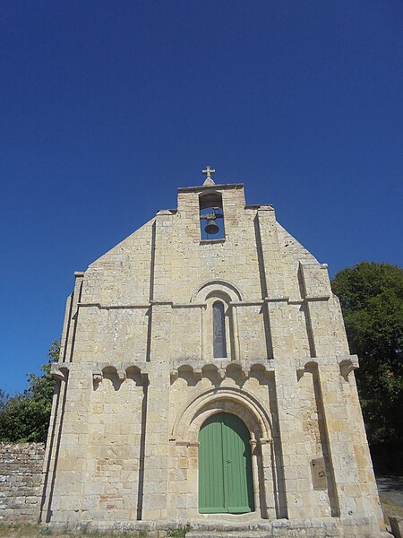 L'église s'implante sur le site d'un cimetière médiéval traditionnel, jadis plus étendu. La construction actuelle ne paraît pas remonter au-delà du XIIe siècle. Le chœur en hémicycle a été détruit, de même qu'une chapelle latérale sud, édifiée à la fin du Moyen Âge ; les arcades qui la mettaient en communication avec la nef sont encore visibles. La façade illustre un type local, avec un mur pignon percé d'un campanile, et des lauzes subsistent sur les rampants. Les voussures du portail sont sobrement ornées d'un tore et d'un bandeau de perles. Le cimetière est clos par un mur de pierres sèches. La plupart des tombes datent du XIXe siècle.