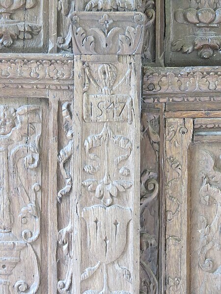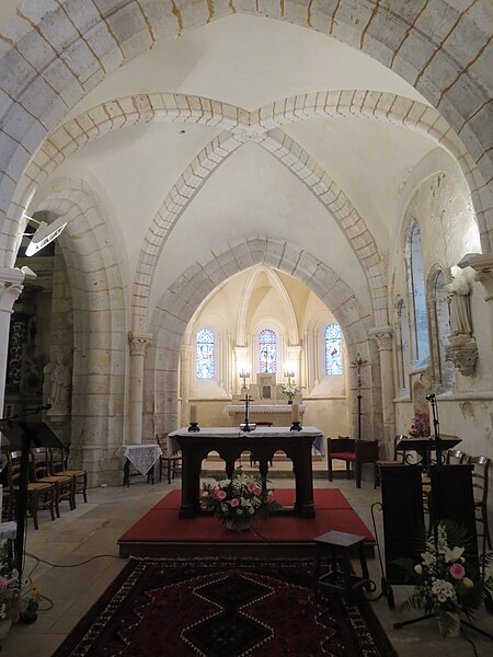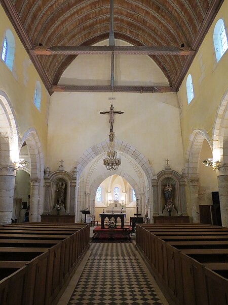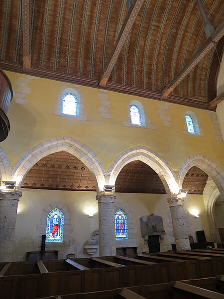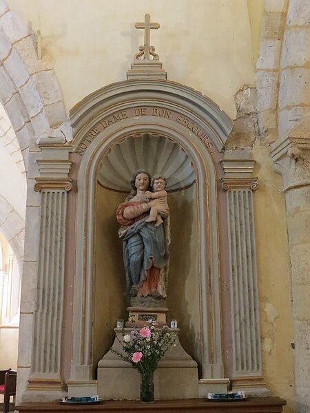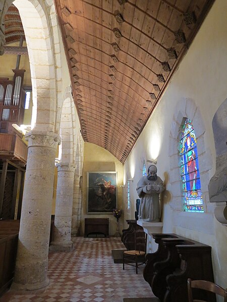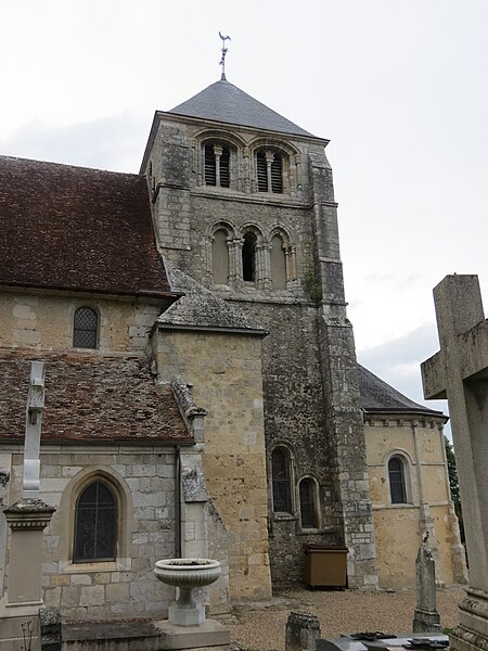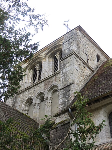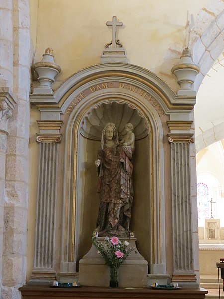 L'église Saint‑Georges d'Aubevoye (Eure) est dédiée à saint Georges et fait l'objet d'une inscription au titre des monuments historiques par arrêté du 24 avril 2009. L'édifice présente des phases de construction des XIIe, XIIIe, XVe et XVIe siècles : la nef conserve au pignon ouest un appareillage en opus spicatum daté du XIIe siècle, tandis que la partie restante a été reprise au XIIIe siècle avec l'ajout des bas‑côtés. Le chœur est décrit comme présentant un chevet à trois pans coupés, parfois qualifié d'heptagonal, et la chapelle Saint‑Georges, datée du XVe siècle, prolonge la nef côté nord contre le chœur. Une tour‑clocher d'origine XIIe siècle, remaniée au XVe siècle puis réparée après 1806, s'appuie sur la travée ouest du chœur ; sa consolidation est attestée en 1845 et des travaux de réfection des murs, de la charpente et de la nef ont été menés entre 1869 et 1874. La façade occidentale, précédée d'un porche de charpente, est percée de deux petites meurtrières, et l'accès s'effectue par une porte à double vantail datée de 1547, classée monument historique en 1903 et protégée sous un auvent. L'édifice suit un plan allongé à trois vaisseaux, la nef centrale étant plus élevée que les collatéraux ; la toiture est à longs pans pour le vaisseau central et en appentis pour les bas‑côtés, qui sont renforcés par des contreforts à ressauts. Des baies en plein cintre ouvrent l'abside, tandis que les collatéraux reçoivent des baies brisées ; la tour‑clocher conserve des arcatures aveugles résultant de l'effondrement ancien d'un niveau de fenêtres et d'une flèche, lié à l'affaissement du mur est du troisième étage. Le mobilier comprend une Vierge à l'Enfant, un Saint‑Nicolas offert au XVe siècle par les habitants du Roule, et une statue de saint Bruno provenant de la chartreuse de Bourbon‑lèz‑Gaillon, chacun classé aux monuments historiques en 1907, ainsi qu'une plaque de marbre noir portant les noms des Bourbon‑Soissons transférée lors de la dispersion des meubles de la chartreuse, classée en 1984, et onze stalles en bois sculpté originaires de la chartreuse. Une statue de saint Fiacre du XVe siècle orne la façade sud. Les vitraux, attribués aux ateliers Duhamel‑Marette, ont été posés grâce à de nombreux donateurs albaviens entre 1872 et 1889, dont la famille Dumarest ; l'atelier Didron est également mentionné par Adolphe Vard comme artisan du vitrail. Une tribune a été installée au‑dessus de la porte d'entrée en 1920 et les orgues ont été livrés en 1923 à la suite d'une souscription publique. La tour abrite trois cloches bénies respectivement le 24 septembre 1819 (« Geneviève »), le 2 février 1896 (« Henriette Sophie Georgette ») et le 14 mars 1926 (« Notre‑Dame des Victoires »), cette dernière portant les noms des 33 habitants morts pour la France pendant la guerre 1914‑1918. L'église est située au sein d'un cimetière ancien qui comprend un carré militaire de la Première Guerre mondiale et des tombes de divers âges ; il n'y a plus de créations de sépultures et de nombreuses tombes anonymes sont signalées en vue d'une reprise par la commune. Sont inhumés dans ce cimetière le chanoine honoraire et camérier du pape monseigneur Joseph Aubert (décédé le 31 octobre 1959), plusieurs anciens maires, la marquise de Combray et la musicienne Marie‑Emmanuelle Bayon. À gauche de la grille d'entrée principale se situe l'ancien local des charitons.