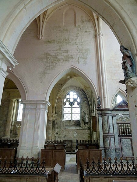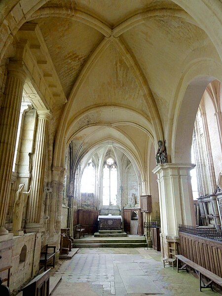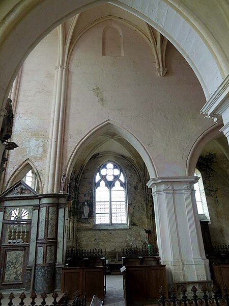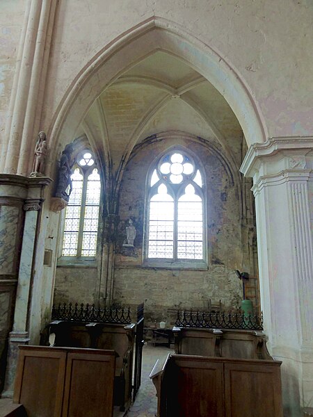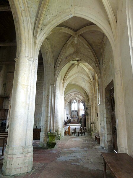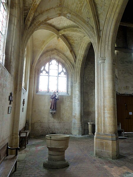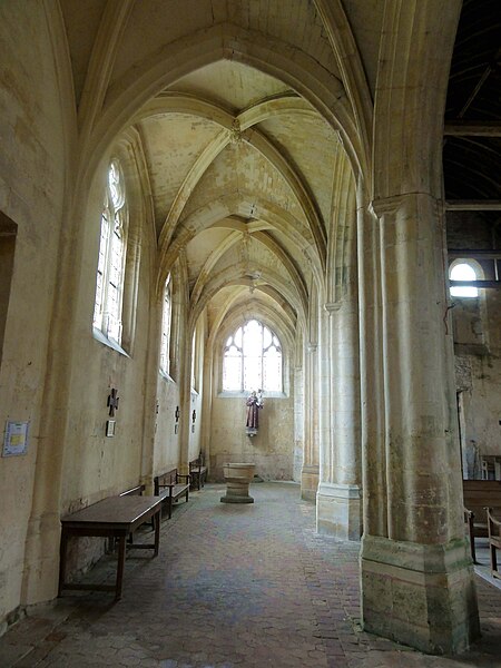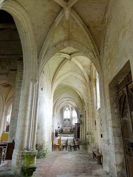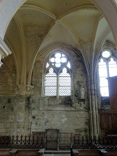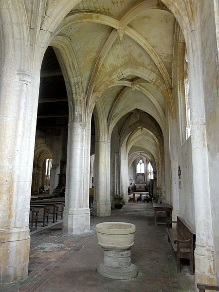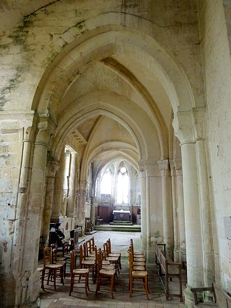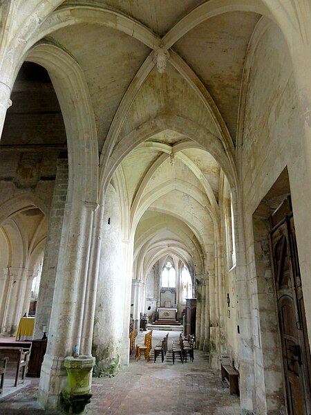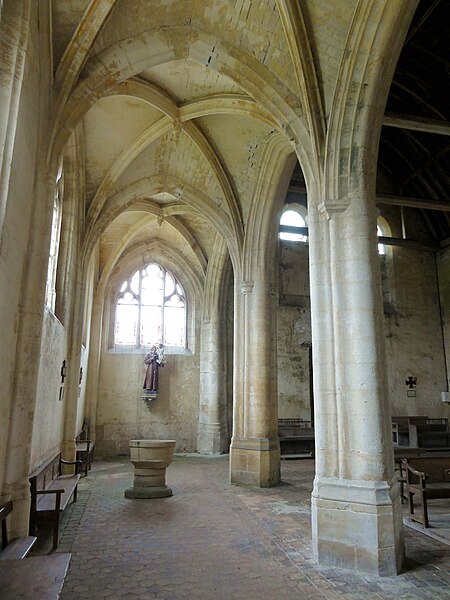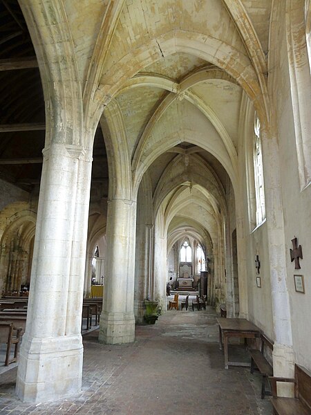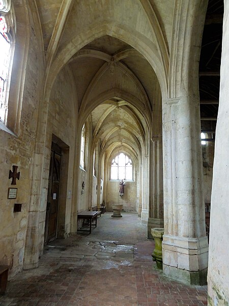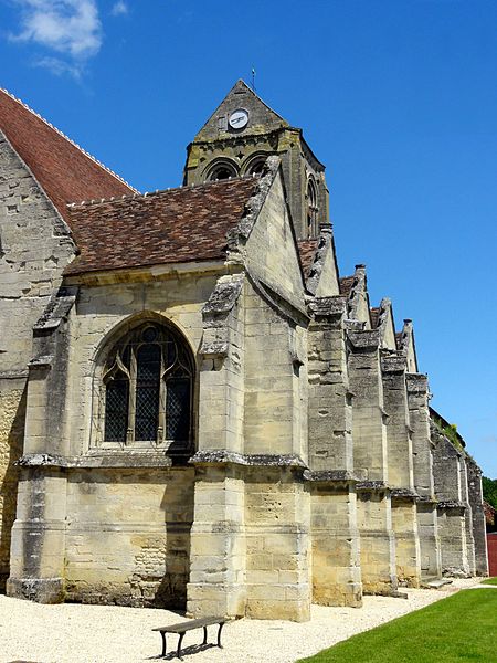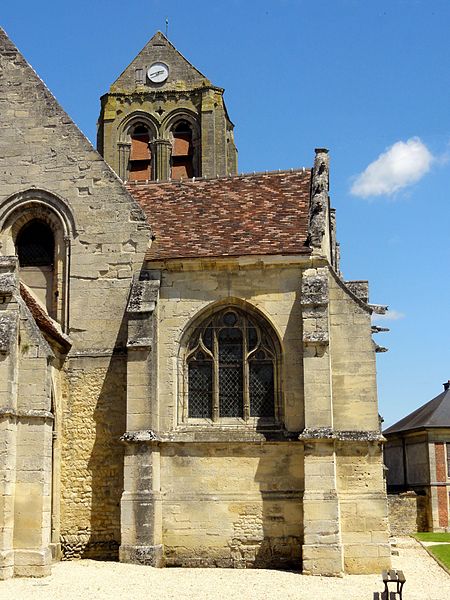 L'église Saint-Georges d'Ully-Saint-Georges, dans l'Oise, est un vaste édifice composite qui rassemble des éléments issus principalement de trois grandes phases de construction : une période romane tardive (années 1130–1140), une campagne gothique rayonnante autour de 1265 et des remaniements gothiques flamboyants au second quart du XVIe siècle. Des pans de mur en opus spicatum, de part et d'autre du portail occidental, laissent supposer l'existence d'un bâtiment antérieur, peut‑être du XIe siècle. Les parties romanes les plus anciennes sont le transept et la première travée des bas‑côtés du chœur ; elles témoignent de l'emploi précoce du voûtement d'ogives et de piliers cantonnés qui annoncent l'architecture gothique. L'édifice compte au total cinq voûtes d'ogives antérieures au milieu du XIIe siècle, et fait ainsi partie du groupe d'édifices du département dotés de voûtes d'ogives si anciennes. Au début du XIIIe siècle, le clocher reçoit un étage de beffroi et la nef est dotée d'un nouveau portail abrité par un porche voûté d'ogives. Vers 1265, les parties orientales sont rebâties selon un plan ambitieux comprenant trois absides à pans, tandis que l'achèvement des absides des bas‑côtés pourrait intervenir plus tardivement, aux XIVe ou XVe siècles. À la fin de la période gothique, la nef est refaite et pourvue d'une nouvelle charpente ainsi que d'un collatéral sud dont la dernière clé de voûte porte la date de 1545. De modestes interventions se succèdent ensuite à la Renaissance et à l'époque moderne, notamment des reprises de piliers, l'aménagement d'un autel dans le croisillon nord et le repercement de certaines fenêtres. L'ornementation en vitraux, abondante à la fin du XVIe siècle, subit des réparations entre 1689 et 1694 puis de sévères destructions lors d'orages en 1706 et 1788. Les archives anciennes concernant la construction et les restaurations sont peu nombreuses et l'édifice n'a pas fait l'objet d'une étude exhaustive. Classée monument historique par arrêté du 28 février 1951, l'église a cependant souffert de la négligence et de l'altération des matériaux : un premier entrait de la nef cède en 1946. Des travaux de restauration partielle, sous la direction de l'architecte Jean‑Pierre Paquet, ont permis de réparer la charpente de la nef et la couverture du bas‑côté sud entre 1952 et 1954 puis en 1961, mais la restauration complète reste inachevée. Un comité de sauvegarde local s'efforce d'obtenir les financements nécessaires à la conservation de l'édifice. Implantée au centre du village, place de l'Église, la façade ouest donne sur un parvis jouxtant la rue de Noailles, tandis que l'élévation méridionale ouvre sur une grande pelouse correspondant à l'ancien cimetière déplacé sous le Second Empire ou peu avant. La grange dîmière du XVe siècle, contiguë au parvis, a été inscrite aux monuments historiques dès 1933 et participe à la compréhension du cadre seigneurial et ecclésiastique ancien. Sur le plan paroissial, la seigneurie d'Ully‑Saint‑Georges appartenait aux comtes de Beaumont jusqu'au XIIIe siècle puis passa en avouerie à l'abbaye de Saint‑Denis, qui conserva la seigneurie jusqu'en 1692 avant la remise des biens à la maison royale de Saint‑Louis. Les registres paroissiaux, conservés depuis 1654, et diverses sources anciennes documentent la vie religieuse locale, les pratiques sacramentelles et les difficultés matérielles des curés de campagne. La Révolution entraîne la saisie des objets liturgiques et des cloches, l'interdiction du culte à partir de novembre 1793 et la vente des biens de la fabrique, dont le produit est connu dans les archives. Après le Concordat de 1801 puis la restauration du diocèse de Beauvais en 1822, la communauté paroissiale est désormais intégrée à la paroisse Sainte‑Claire de Mouy ; l'activité religieuse se limite aujourd'hui à quelques messes anticipées célébrées certains samedis en soirée et à quelques offices particuliers.