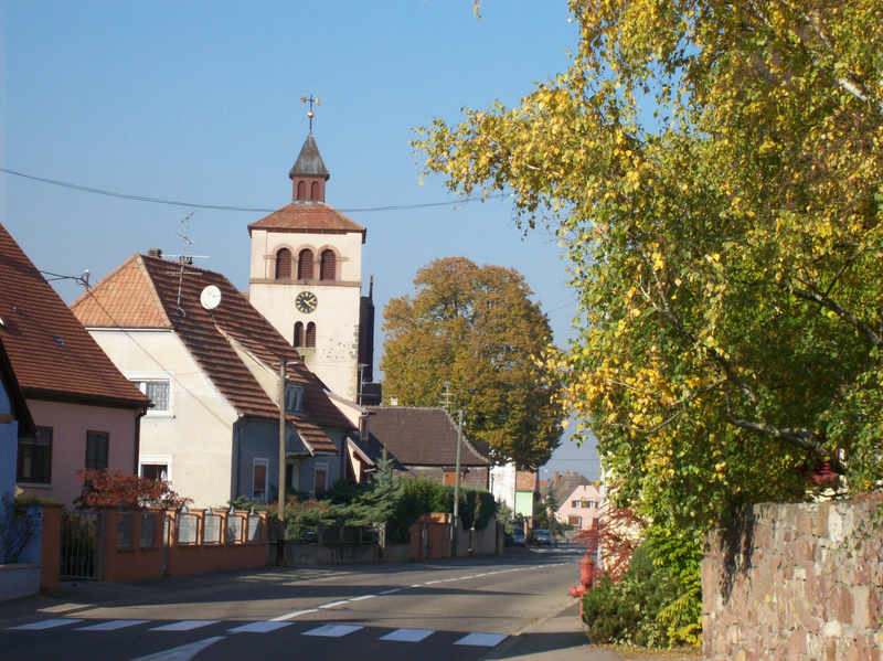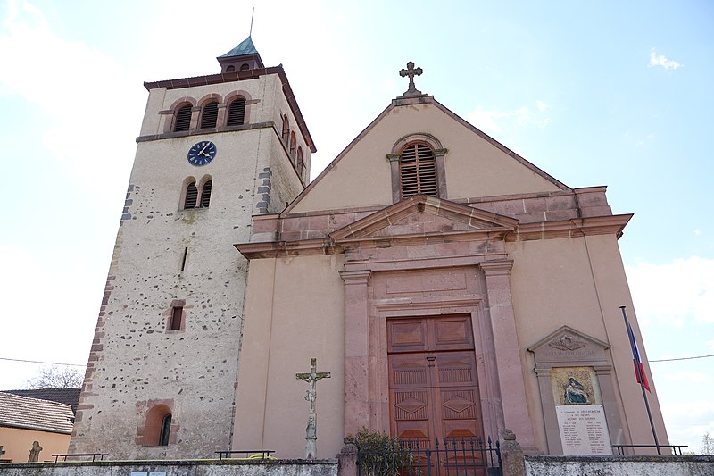 L'église Saint-Georges se situe Grand-Rue à Urschenheim, dans le département du Haut-Rhin. De l'édifice médiéval subsiste uniquement la tour-choeur de la seconde moitié du XIIe siècle, dont le rez-de-chaussée est orné de peintures monumentales étudiées. L'ancienne église comportait une nef unique et l'accès s'effectuait par un chemin entre l'enclos et la remise ; certains auteurs mentionnent une reconstruction partielle de la nef en 1760. Le mur de clôture porte la date de 1793, indiquant sa construction ou sa restauration à cette époque. Urschenheim devint paroisse au début du XIXe siècle (en 1804 ou 1802 selon les sources). Face à la croissance de la communauté, un projet de reconstruction est évoqué dès 1836 ; la première pierre est posée le 27 juillet 1840 et les travaux s'achèvent en 1842 pour un montant de 34 595 francs. La nef et le chœur actuels datent de cette campagne, de même que le dernier étage de la tour. La tour compte cinq niveaux : les quatre premiers relèvent encore de l'époque romane, le dernier étant une adjonction du XIXe siècle. Le premier niveau, qui faisait alors office de chœur, est voûté d'arêtes reposant sur des colonnes à chapiteaux cubiques et décoré de fresques romanes ; le troisième niveau s'ouvre vers l'extérieur par des baies géminées à arcs en plein cintre et colonnettes octogonales. La tour est classée au titre des monuments historiques depuis 1895, classement confirmé par arrêté en 1930 ; l'accès aux étages supérieurs n'a pas été possible lors des investigations mentionnées. L'église a été touchée par un bombardement le 30 janvier 1945, entraînant notamment la destruction des vitraux, ce qui a motivé une importante campagne de restauration menée en 1952-1953 par Léon Zack sous la direction du curé Vetter. Lors de ces travaux, le parti pris fut résolument contemporain et entraîna la disparition ou la dissimulation de décors et de mobilier antérieurs. Les neuf verrières actuelles, réalisées en 1957 par l'atelier Albert Gerrer d'après un carton de Léon Zack, reprennent un même motif géométrique à base de segments de cercle, mais leurs couleurs varient selon l'emplacement : jaune et rouge dans la nef, violet et jaune dans le chœur. L'ancien autel a été conservé, avancé dans le chœur et privé de son décor peint, masqué par un antependium exécuté par l'atelier Passe-Lequesne d'après un carton de Léon Zack, dans les mêmes tons que les vitraux du chœur. L'autel est surmonté d'une grande toile de Zack représentant l'Ascension et encadré par deux pierres dressées gravées par Zack, portant respectivement saint Arbosgast et sainte Odile. La nef et le chœur ont fait l'objet d'une nouvelle rénovation en 1988-1989 et les élévations extérieures ainsi que la toiture de la tour ont été rénovées en 1994. Une statue de la Vierge à l'Enfant attribuée au XVe siècle est mentionnée par plusieurs auteurs depuis Kraus, mais elle n'a pas été retrouvée.