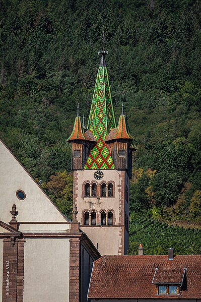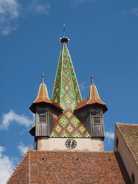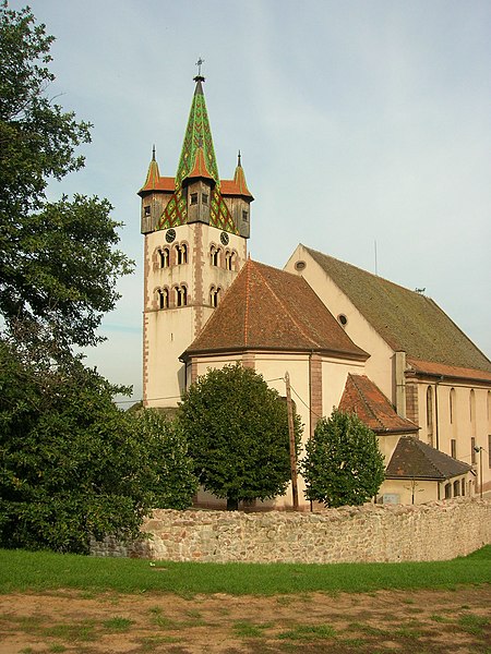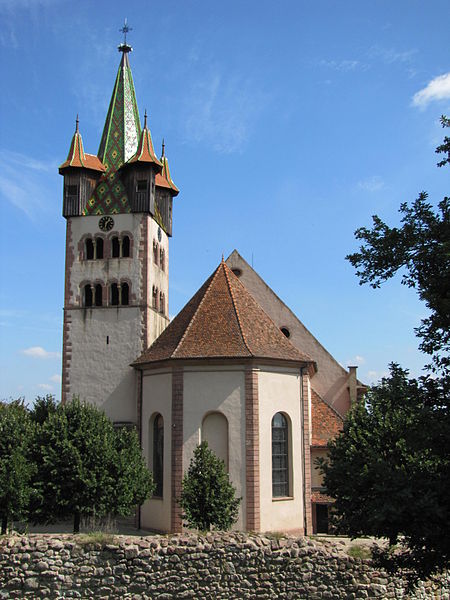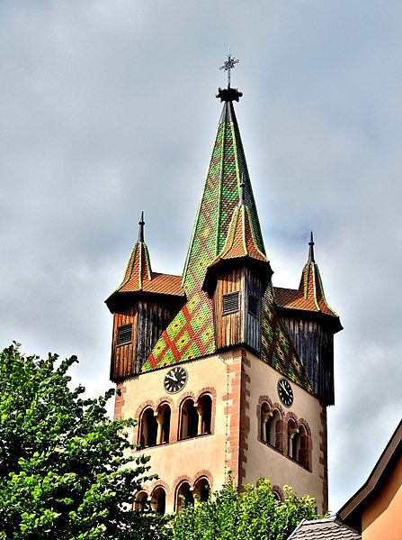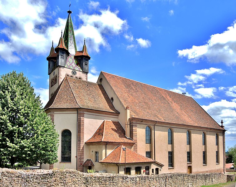 Tour-clocher : classement par arrêté du 22 août 1901 ; Monument funéraire d'Hélène Rimelin : inscription par arrêté du 3 juin 1932 ; Eglise (à l'exception du prolongement moderne de la sacristie) , y compris l'ossuaire et le mur d'enceinte avec ses portails d'accès (cad. 6 100) : inscription par arrêté du 30 octobre 1990