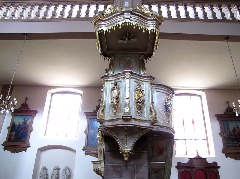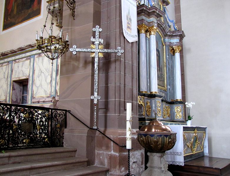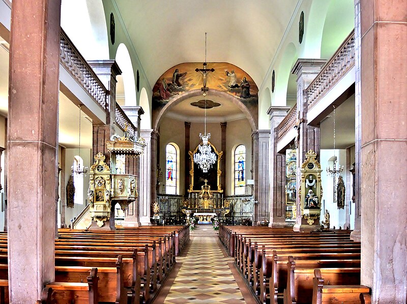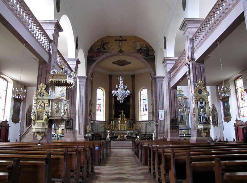 L'église catholique Saint-Georges se situe rue de l'Église à Châtenois, dans le Bas-Rhin, et fait l'objet d'une protection au titre des monuments historiques : classée depuis 1901 et inscrite en 1932 et 1990. La première église paroissiale aurait été dédiée à la Vierge Marie ; au XIIe siècle un nouvel édifice fut élevé et consacré à saint Georges. Le site comprenait un cimetière fortifié, le château fort épiscopal, un ossuaire et une chapelle Saint‑Pierre citée au XVe siècle et détruite au XVIIe ou au XVIIIe siècle. De l'église romane, démolie au XVIIIe siècle, subsiste la tour-clocher dont les élévations datent des XIe, XIIe et de la première moitié du XVIe siècle ; elle fut intégrée au nouvel édifice entrepris en 1759 et achevé en 1761 par l'entrepreneur Martin Dorgler. La toiture du clocher fut refaite vers 1525 et son couronnement, daté de 1530, comporte quatre échauguettes d'angle entièrement réalisées en châtaignier. Le beffroi en châtaignier, daté de 1630, a été remplacé en 1922 lors de la pose de nouvelles cloches. La nef et le chœur, construits en 1759, conservent un ameublement pratiquement d'origine. L'église abrite notamment un orgue Silbermann (1765), une croix de procession recouverte de nacre datée de 1763, ainsi que des tableaux polychromes en relief du XVIe siècle. On y trouve également un monument funéraire d'Hélène Rimelin datant du premier quart du XVIIe siècle.