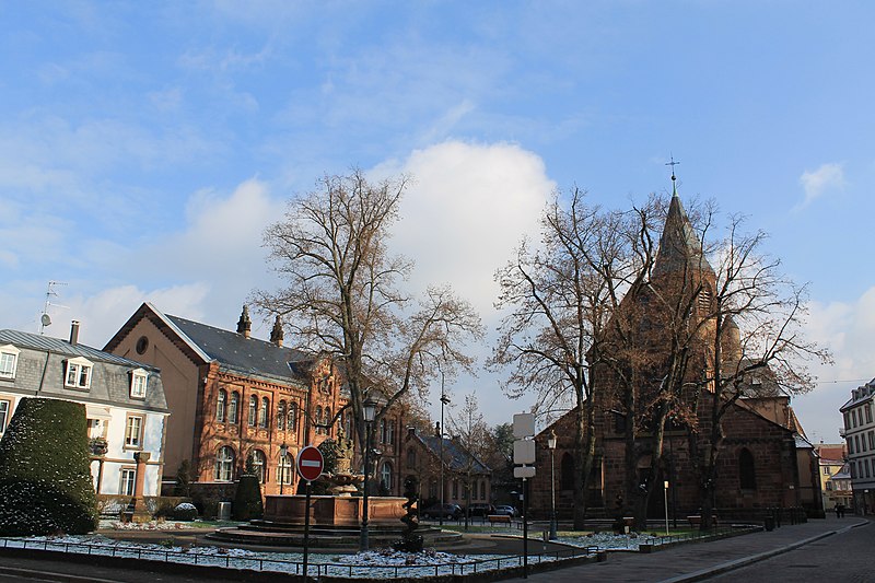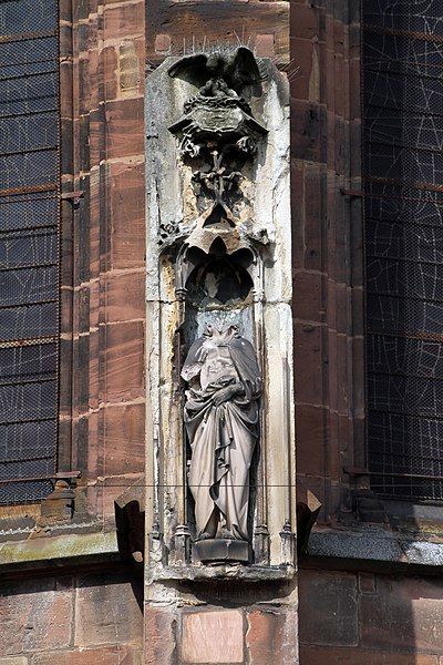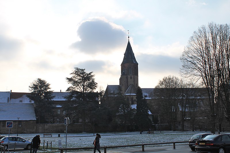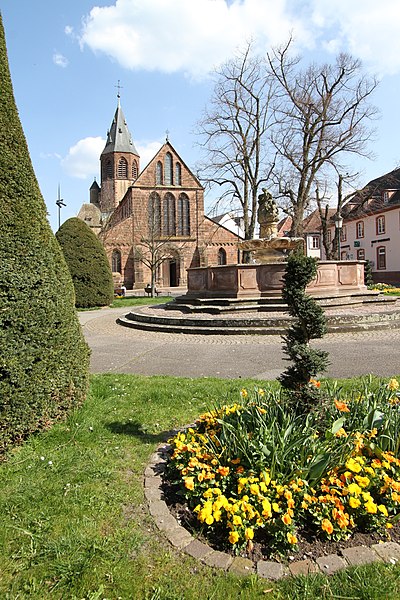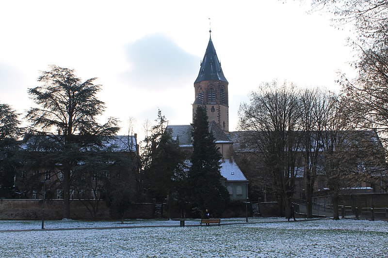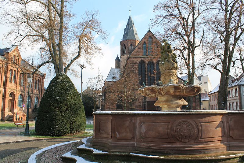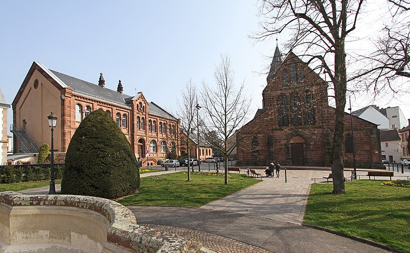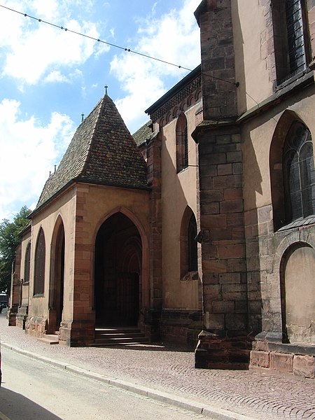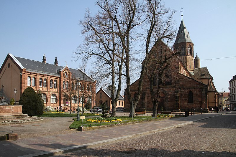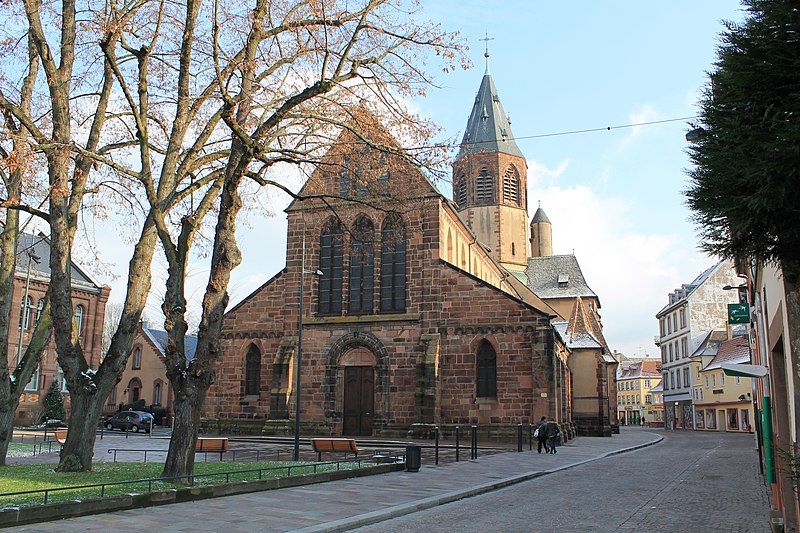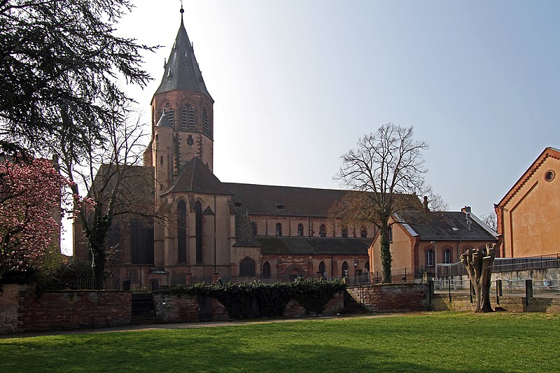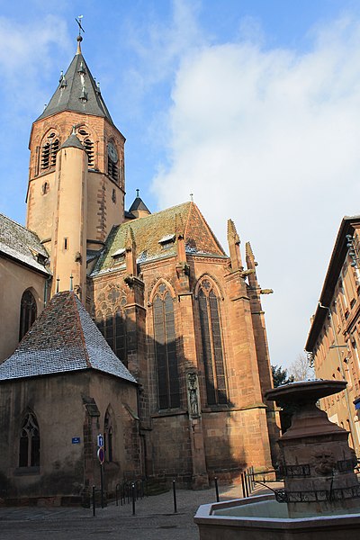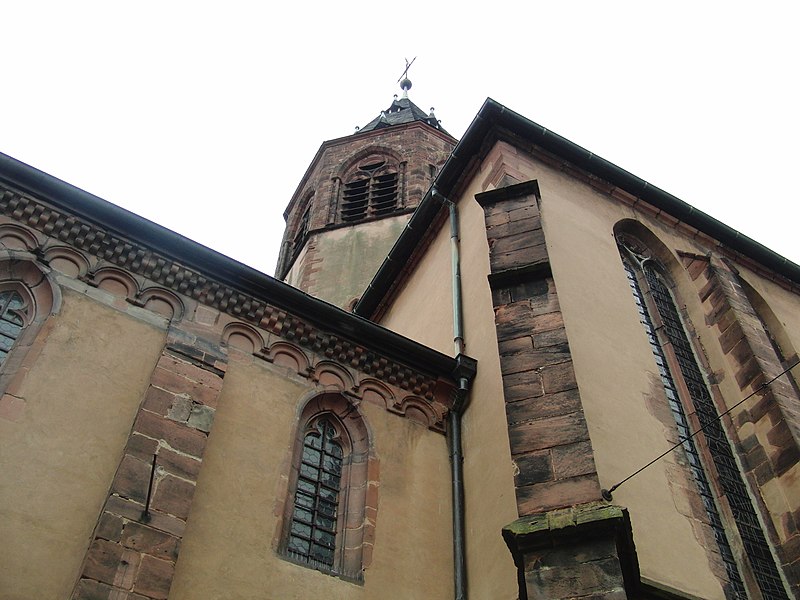 L'église Saint-Georges, située rue Saint-Georges à Haguenau (Bas-Rhin, Alsace), est classée monument historique depuis 1848 et figure parmi les principaux édifices religieux de la ville aux côtés de l'église Saint-Nicolas et de la basilique de Marienthal. La paroisse Saint-Georges est créée en 1143 et la première église romane, autorisée par l'évêque Frédéric le Borgne, est achevée et consacrée à la fin du XIIe siècle ; de cet édifice subsistent notamment deux tourelles d'escalier, la base de la tour, des vestiges de crypte, une abside semi‑circulaire et une partie du bas‑côté sud. Des vestiges de chapelles datées de 1170 et 1184 sont encore visibles dans le bas‑côté sud. Les constructions ont été réalisées en grès des Vosges du Nord et en briques crépies ; la façade occidentale, la partie supérieure de la tour de croisée et le chevet présentent un petit et moyen appareil en pierre de taille. La nef primitifement charpentée à trois vaisseaux est reconstruite vers 1200–1220 ; elle compte dix travées et, à l'extérieur, un soubassement mouluré qui épouse les contours des trois portails romans ainsi que des lésènes et frises de damiers et d'arceaux. Les fenêtres hautes romanes sont conservées dans les sept travées orientales ; à l'intérieur dix arcades en plein cintre, portées par des colonnes à chapiteaux cubiques, ouvrent sur les bas‑côtés. Les piles de l'arc triomphal sont sculptées d'atlantes et de monstres affrontés, seules sculptures conservées de la campagne du premier quart du XIIIe siècle. La charpente de la nef a été refaite en plusieurs campagnes datées par dendrochronologie en 1228, 1229 et 1258. Le transept et une tour clocher octogonale dotée de petites lucarnes sont ajoutés au début du XIIIe siècle ; l'ouverture de la croisée sur les bras s'effectue par une double arcade inspirée de la cathédrale de Strasbourg. Les voûtes d'ogives du transept sont parmi les plus anciennes de l'édifice, leurs clés étant sculptées d'une rose emblématique, de feuillages, d'une tête de feuilles et du Bon Pasteur. L'ancienne tour‑chœur romane est surhaussée et transformée en tour de croisée, achevée en 1268 ; son niveau supérieur est appareillé en grès et percé de grandes baies gothiques, et cinq cloches sont alors suspendues, dont deux datées de 1268 qui subsistent encore. Le chœur gothique et l'abside à pans coupés, réalisés par un atelier apparenté au chantier de la cathédrale de Strasbourg, sont achevés pour la consécration de 1283 ; à l'extérieur les fenêtres du chœur sont entourées de cordons sculptés de feuillages retombant sur têtes d'hommes et d'animaux, et des gargouilles et pinacles ornent les contreforts, qui abritaient des statues déposées en 1913 au musée historique de Haguenau. Le chœur est remanié vers 1360 ; la chapelle Saint‑Jacques est construite en 1496 et la chapelle Saint‑Jean par maître Stuckart en 1517–1519. En 1523, la tour eucharistique et la sacristie sud sont réalisées par Friedrich (Frédéric) Hammer. Le vaisseau central est voûté en 1609 et les voûtes occidentales des bas‑côtés sont reprises en 1611. Au cours du deuxième quart du XVIIIe siècle la sacristie nord est bâtie et l'église est remise « au goût du jour », et une sacristie réservée aux chanoines est ajoutée en 1738 après le transfert du chapitre de Surbourg à Haguenau en 1737. Une importante restauration au XIXe siècle introduit de nouvelles peintures murales, des vitraux et du mobilier néo‑gothique ; les statues des contreforts du chœur sont descendues en 1913 et certaines conservées au musée. L'édifice est gravement endommagé lors des bombardements de 1944–1945 ; la restauration menée entre 1958 et 1963 supprime l'essentiel du décor néo‑gothique et installe des verrières modernes, et la voûte réticulée actuelle remplace l'ancien plafond en bois. De nombreuses marques de tâcherons romanes et gothiques sont encore visibles. Parmi les éléments remarquables du mobilier, la custode (Sakramentshäuschen) de 1523, attribuée à Friedrich Hammer, est une pièce de pierre finement ciselée représentant le buisson ardent ; la chaire à prêcher illustre saint Georges terrassant le dragon, des chandeliers datent du XVIe siècle, un crucifix de 1488 subsiste et l'autel majeur en grès rose des Vosges est l'œuvre de Louis Rudloff réalisée lors de la reconstruction de 1963. Le grand orgue néo‑roman provient de la maison Walcker (buffet de 1867, menuiserie Klem). Le retable du Jugement dernier, dont les volets peints datent de 1496–1497 et sont attribués à Diebold Martin, se trouve dans le transept sud ; le transept nord abrite le retable du Saint‑Sacrement du XVe siècle. Les vitraux contemporains, au nombre de 61 et réalisés par Jacques Le Chevallier entre 1956 et 1969, composent des cycles représentant la Résurrection au centre, les grands prophètes et les évangélistes, les mystères du rosaire et des figures de saints patronaux, tandis que des verrières antérieures de 1845 figuraient des empereurs. Des dispositifs d'étalonnage médiévaux sont encore lisibles sur les contreforts du transept sud et les « griffes du diable » près du Chörel et de la chapelle Saint‑Jacques renvoient à des traditions locales liées à la protection de saint Georges. Sur les cinq cloches coulées à Haguenau en 1268 par Heinrich, deux médiévales subsistent et, traditionnellement, elles sonnent encore à 22 heures pour annoncer la fermeture des portes de la ville ; d'autres cloches ont été fondues aux époques révolutionnaire et pendant la Première Guerre mondiale et remplacées ultérieurement. En 2018 la municipalité et la paroisse ont décidé d'harmoniser le jeu campanaire : une cloche de 1923 a été refondue et trois nouvelles cloches accordées au Sol, au La et au Si ont été coulées en octobre 2018 par les entreprises Bodet et la