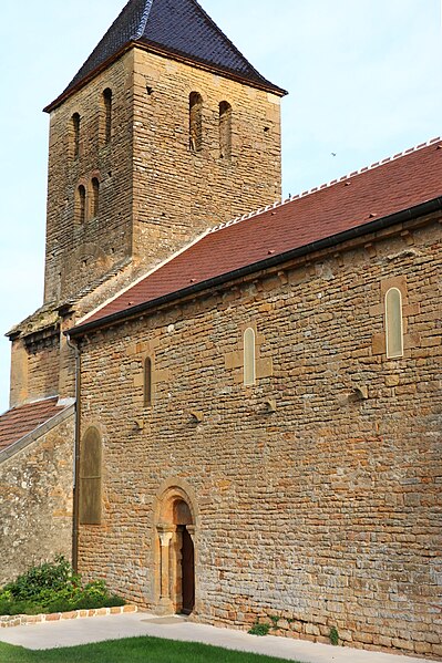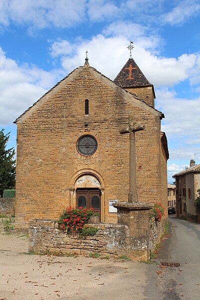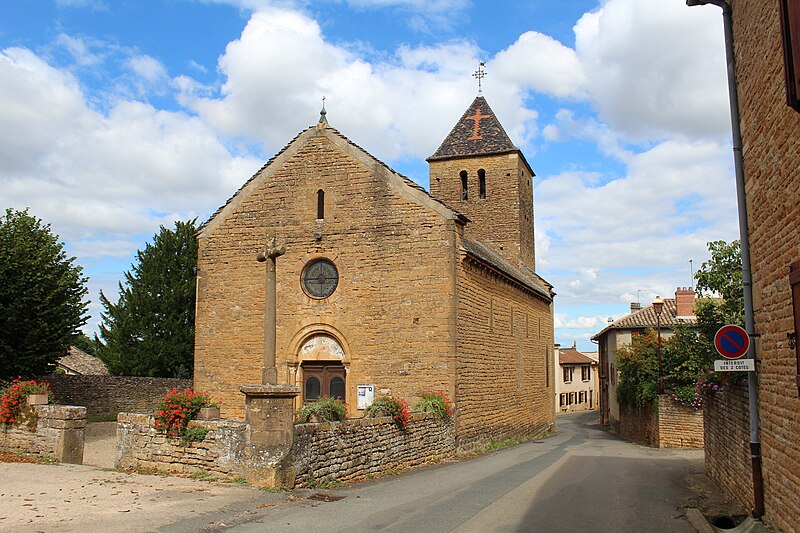L’église Saint-Georges de Vinzelles se situe sur la commune de Vinzelles, en Saône-et-Loire, dans la région Bourgogne-Franche-Comté. De construction sobre, elle date de la fin du XIe siècle ou du tout début du XIIe siècle et relève du style roman. Ses murs sont épais et ses ouvertures particulièrement étroites, fortement ébrasées à l’intérieur, les vitraux affleurant presque à l’extérieur. Vers 1860, l’auvent qui précédait le portail roman a été démoli. Le clocher a été restauré en 1923 et une statue de la Vierge a été posée au-dessus de l’abside. En 1970, l’artiste Michel Bouillot a aménagé le chœur roman. L’édifice est inscrit au titre des monuments historiques par arrêté du 10 avril 1929. Une peinture murale, visible sur le cul-de-four de l’abside, représente un Christ en gloire qui bénit de deux doigts levés à hauteur des yeux et tient dans la main gauche un livre portant les lettres grecques alpha et oméga sur la couverture. Le chœur est éclairé par trois petits vitraux portant des initiales : SG à gauche (Saint Georges, patron de l’église), IHS au centre (Jésus Sauveur des Hommes) et AM à droite (Ave Maria, hymne à la Vierge). L’église dépend de la paroisse Notre‑Dame‑des‑Vignes‑en‑Sud‑Mâconnais, qui regroupe quatorze villages et dont le siège est à La Chapelle‑de‑Guinchay. Des ressources en ligne sont disponibles, notamment sur Clochers de France, l’Observatoire du patrimoine religieux, la base Mérimée et plusieurs portails consacrés à l’architecture et au patrimoine.