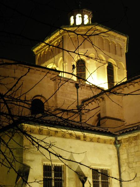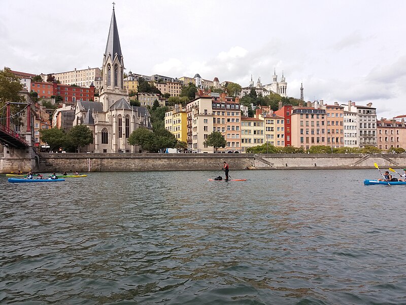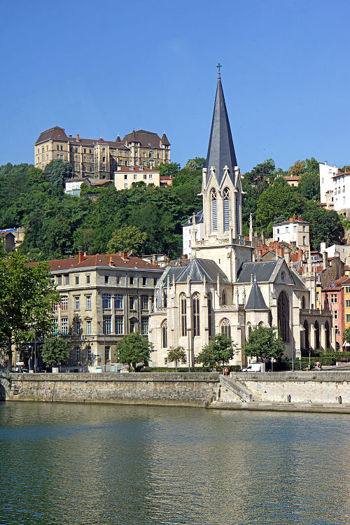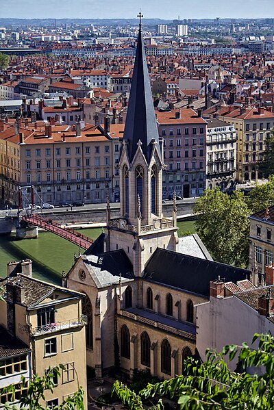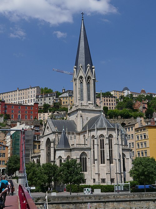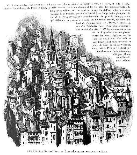 L'église Saint‑Paul, située dans le Vieux‑Lyon, est l'une des plus anciennes églises de la ville et présente des éléments romans et gothiques. La tour‑lanterne est classée monument historique depuis 1920 et l'édifice dans son ensemble depuis 1996. Des documents transmis par l'évêque Leidrade à Charlemagne attestent l'existence d'une église dès le IXe siècle, mais aucun vestige de cette phase primitive n'a été conservé. Les parties romanes visibles aujourd'hui ont été édifiées à partir de la seconde moitié du XIIe siècle et achevées au XIIIe siècle. Le portail Saint‑Laurent, la tour‑lanterne et les sculptures romanes, comme les modillons et les métopes, témoignent de cette période. Aux XVe et XVIe siècles, le monument a reçu des éléments gothiques, notamment la reconstruction du clocher‑porche et l'ajout de chapelles latérales. Les chapelles des bas‑côtés, construites entre le XVe et le XVIIe siècle, sont voûtées en style gothique avec liernes, tiercerons et clefs pendantes. Au XVIIe siècle fut élevé un portail d'ordre dorique. L'église a été le lieu de repos du théologien Jean Gerson. Au XVIIIe siècle, l'abside principale a été allongée par l'architecte Cyr Decrénice. À la fin du XVIIIe siècle, l'édifice était en très mauvais état; après les dommages de la Révolution et le manque d'entretien, d'importants travaux de restauration ont été menés au XIXe siècle par trois générations d'architectes Benoît. Ces interventions ont concerné notamment la façade occidentale, les chapiteaux de la nef et la restauration des peintures de Borel. La flèche en pierre détruite en 1817 n'a été remplacée que par une flèche en bois en 1875. La dernière grande campagne de restauration du XIXe siècle, menée entre 1898 et 1904, a assaini l'intérieur et retiré le plâtre qui le recouvrait depuis le XVIIIe siècle; à cette occasion disparurent les statues des Quatre Évangélistes sculptées par Jean‑François Legendre‑Héral en 1830. L'ensemble de l'édifice a fait l'objet d'une restauration en 2002. Aujourd'hui, les prêtres de la communauté de l'Emmanuel participent à l'animation de la paroisse; le curé est actuellement le père Eric Mouterde. L'église présente, entre autres éléments remarquables, une tour‑lanterne, des métopes romanes figurant animaux, humains et monstres, une nef romano‑gothique, un porche roman, plusieurs chapelles et un tympan néo‑gothique du XIXe siècle représentant la conversion de saint Paul.