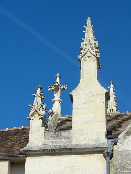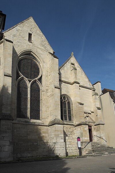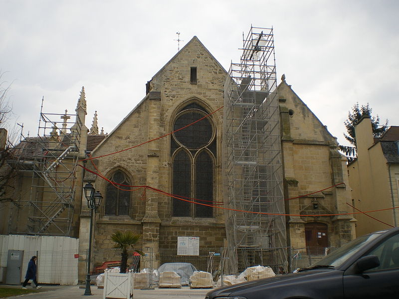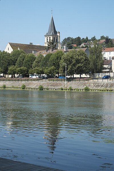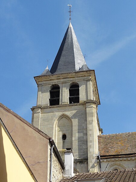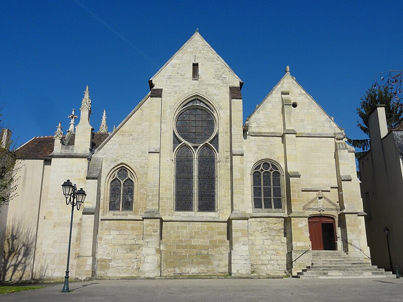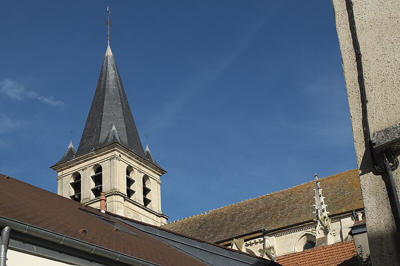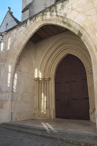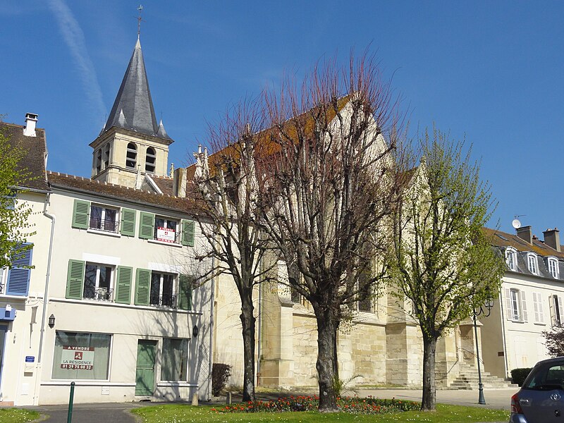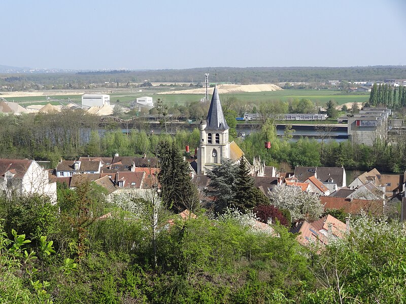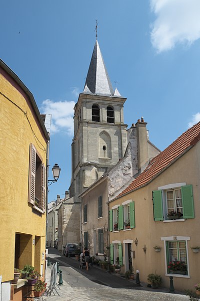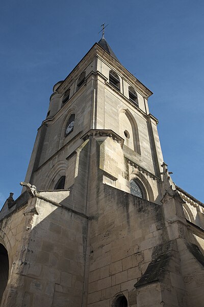 L'église Saint‑Germain d'Andrésy, dans les Yvelines, est une paroissiale dont le noyau gothique s'inscrit entre la fin du XIIe et le premier quart du XIIIe siècle. Bâtie en centre ville sur la rive droite de la Seine, elle s'implante perpendiculairement au quai ; son chevet plat donne sur le fleuve tandis que la façade principale se signale dans une rue trop étroite pour offrir un recul. L'édifice adopte un plan allongé à trois vaisseaux sans transept : une nef centrale voûtée d'ogives, un bas‑coté sud étroit et un collatéral nord de proportions beaucoup plus généreuses. Le collatéral sud est sensiblement plus étroit que le collatéral nord, qui atteint presque la largeur réunie de la nef et du bas‑côté sud mais n'en a qu'environ les deux tiers de la hauteur. L'élévation comporte trois niveaux du côté sud (grandes arcades, triforium, fenêtres hautes) et présente des variations de détail selon les travées. Les voûtes et les profils des nervures diffèrent d'un secteur à l'autre : ogives très archaïques à simples tores dans les travées occidentales du bas‑côté sud, profils à deux tores dans le chœur et la première travée de la nef, profils plus effilés dans le collatéral nord dont une partie a probablement été reprise au XIXe siècle. Le triforium et les ouvertures hautes témoignent d'irrégularités : le triforium du chœur montre des séries d'arcades inégales et certaines fenêtres hautes sont composées d'oculi dont l'authenticité est discutée. La large baie du chevet, aménagée au début du XIVe siècle, occupe presque toute la hauteur et la largeur du mur et remplace un dispositif antérieur. Trois grandes campagnes de construction médiévale se distinguent : les travées occidentales du bas‑côté sud et de la nef relèvent des phases les plus anciennes, le chœur appartient au premier quart du XIIIe siècle, et des percements ou adjonctions ultérieurs interviennent au XIVe siècle puis aux XVIe siècles. À partir de 1517 le bas‑côté sud oriental est rebâti et doté de quatre petites chapelles rectangulaires de style flamboyant, puis, vers 1538, un vaste collatéral nord est ajouté, entraînant la reprise en sous‑œuvre de l'élévation septentrionale. Le collatéral nord, qui conserve des baies en plein cintre avec remplage et des verrières en partie anciennes, présente des proportions robustes, des piliers monocylindriques appareillés et des chapiteaux d'inspiration corinthisante ainsi que des tailloirs et entablements rapportés. La portée importante et la faible élévation de ce collatéral expliquent en partie l'effondrement d'une voûte signalé en 1873 et la reconstruction de voûtes légères, conduite sous la direction de l'architecte Henry Barruel en accord avec l'architecte diocésain Blondel ; certaines voûtes ont été reconstruites selon le procédé Heurteaux et des tailloirs ont été retaillés. D'autres interventions ont été menées au XXe siècle et après‑guerre : chapelles nord‑ouest et sud‑ouest (1958), travaux sur le porche occidental, réouverture d'une baie murée du collatéral nord et démolition d'une maison mitoyenne en 1987. Le clocher présente une structure composite dont les éléments anciens remontent au début du XIIIe siècle tandis que le parement et l'étage de beffroi relèvent d'une mise en œuvre classique ; la cloche de 1605 figure parmi les éléments mobiliers remarqués. L'intérieur offre une grande diversité de sculptures : chapiteaux souvent imaginatifs, supports médiévaux conservés côté chœur, piliers ondulés et culots des phases flamboyantes, ainsi que des clés de voûte et motifs hagiographiques ou décoratifs variés. Le porche occidental, ajouté postérieurement, s'orne de clochetons flamboyants et d'une triple archivolte portée par colonnettes et chapiteaux ; il masque la façade qui conserve des impostes et des éléments de facture ancienne. Le mobilier comprend plusieurs tableaux et verrières protégés : des verrières du XVIe siècle (fragments vers 1520 et ensembles du milieu du XVIe siècle) ont été classées, de même que des vitraux et des panneaux restaurés aux XIXe et XXe siècles, tandis que d'autres verrières modernes datent de 1930, 1958 et des campagnes de 1968–1986. Plus généralement, l'édifice conserve des œuvres picturales classées ou inscrites, des plaques funéraires et un ensemble de vitraux et sculptures qui témoignent des différentes campagnes et restaurations. Inscrite à l'Inventaire en 1925 puis classée monument historique en 1949, l'église Saint‑Germain reste un lieu de culte actif au cœur de la paroisse.