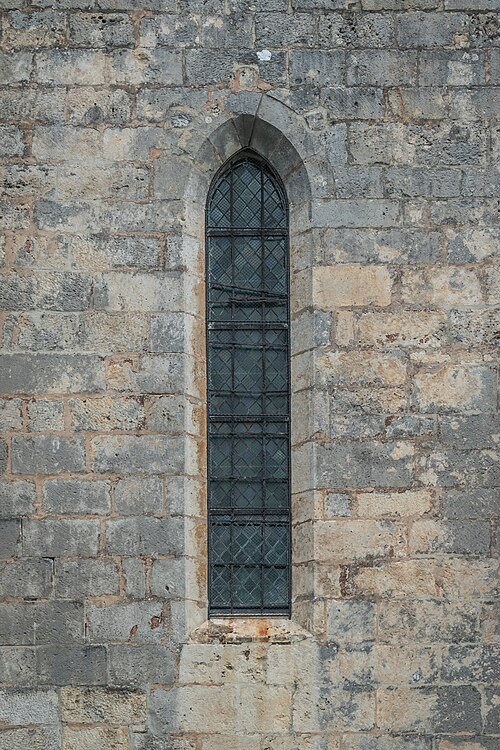 La nef comporte trois travées séparées par deux rangées de piliers soutenant des voûtes en croisées d'ogives. Le chevet du chœur est plat, à la manière des édifices templiers, et percé de deux baies en arc brisé surmontées d'un oculus. Le clocher, implanté à la croisée du transept, présente des baies géminées de types différents sur ses quatre faces. L'église est pourvue d'un porche à fronton triangulaire surmonté d'un bas-relief.