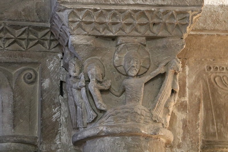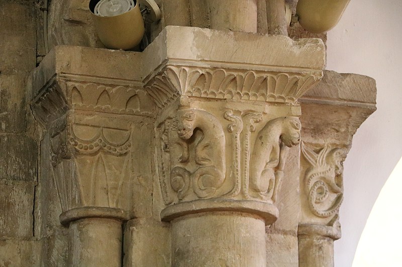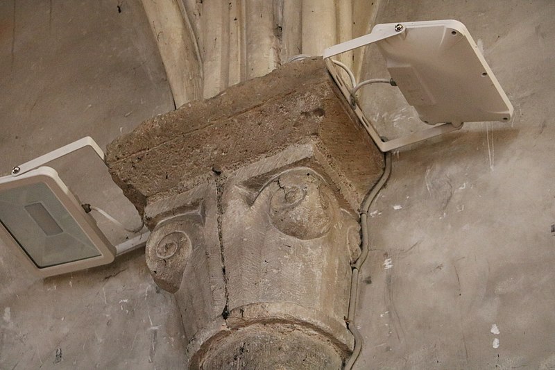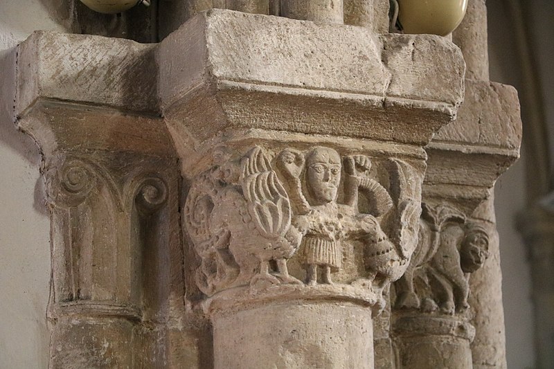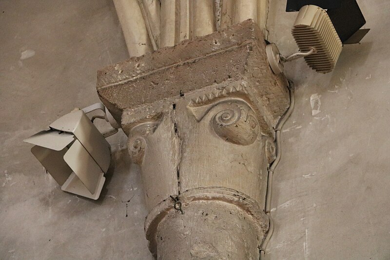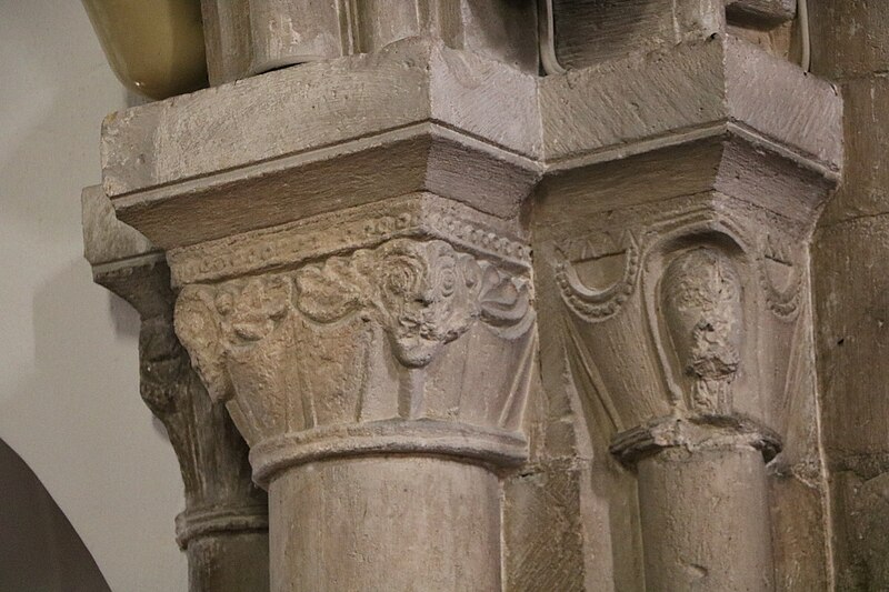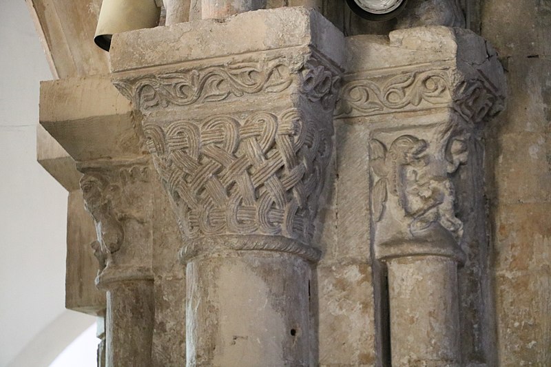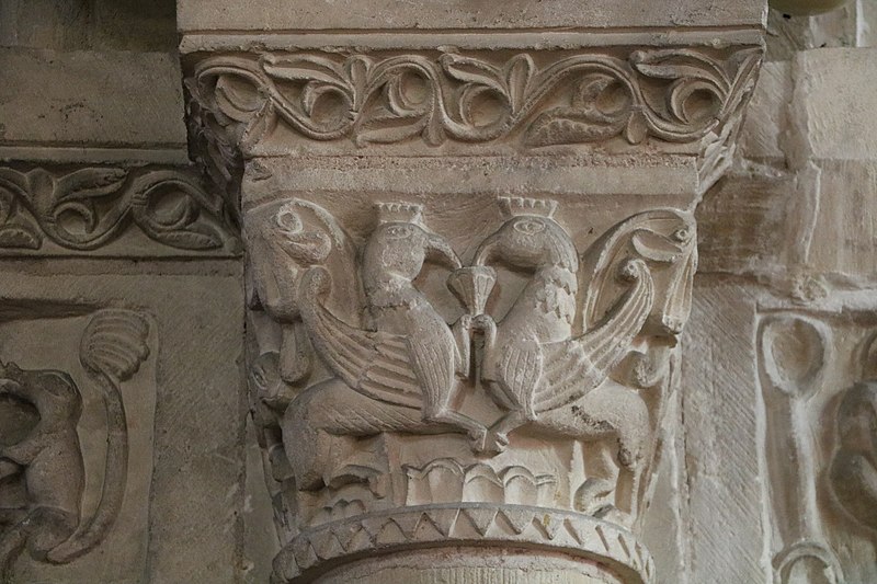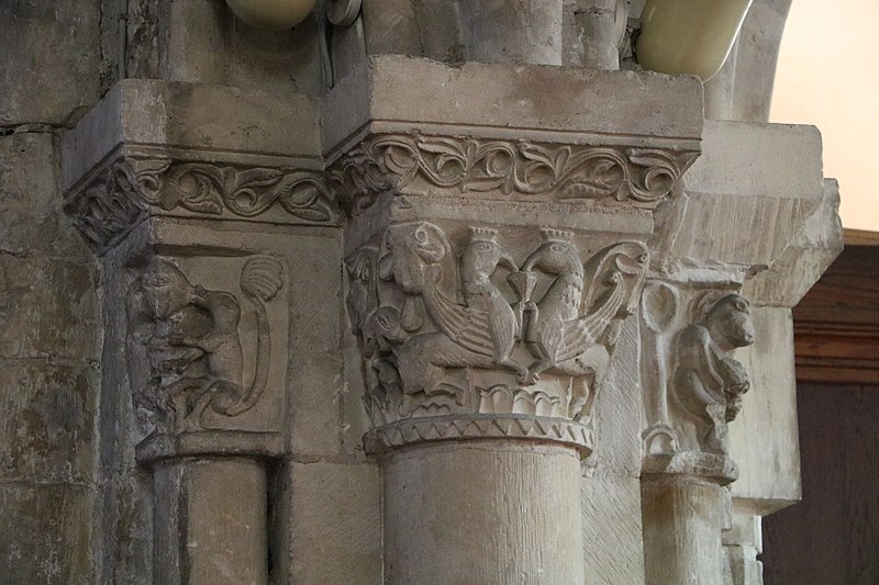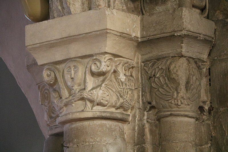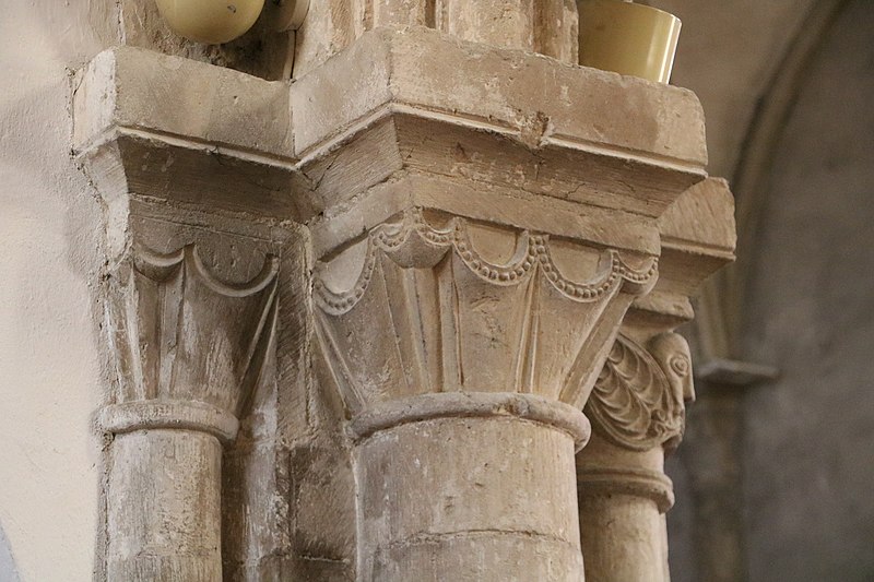 L'église, orientée est-ouest, présente un plan rectangulaire sans transept et deux élévations composées d'arcades et de fenêtres hautes. La nef romane, datée du deuxième quart du XIIe siècle et flanquée de collatéraux, comporte de grandes arcades moulurées et des chapiteaux historiés représentant notamment Daniel dans la fosse aux lions, le baptême du Christ, la punition de l'avare et une scène pouvant évoquer le meurtre d'Abel par Caïn ; on y observe aussi un bestiaire (lions, griffons, dragons, oiseaux, serpents) ainsi que des motifs végétaux et divers décors sculptés. La nef compte cinq travées — quatre de plan barlong et la cinquième, précédant le chœur, de plan carré — qui furent voûtées en croisées d'ogives en 1891, alors que la couverture primitive devait probablement être une charpente à plafond plat. Le porche occidental actuel, construit en 1891, est un pastiche du porche roman conservé dans le bas-côté nord ; le chœur a été refait au XIXe siècle.