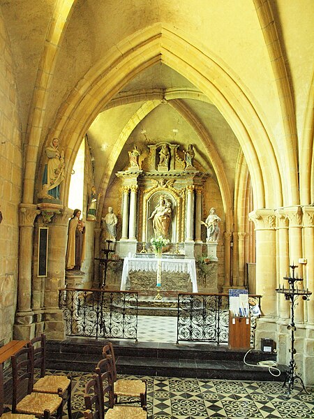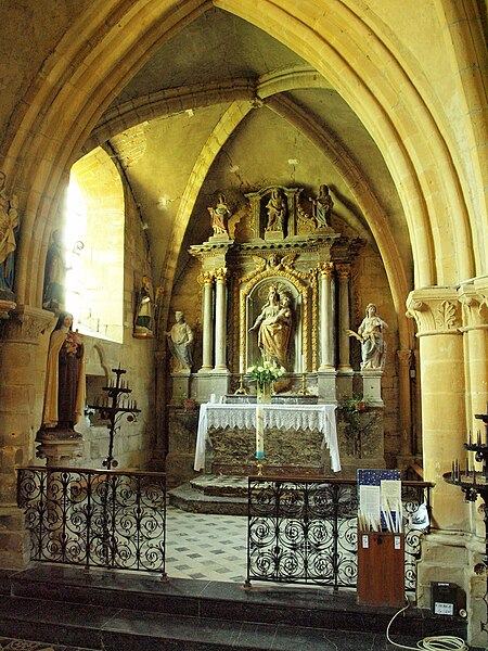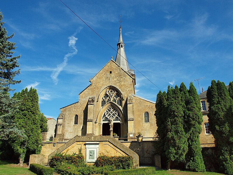 L'église Saint-Germain de Buzancy, dans les Ardennes, est un édifice classé au titre des monuments historiques en 1920. Elle se situe sur la commune de Buzancy, dans le département des Ardennes. Le portail d'entrée, daté du XIIIe siècle, est orné d'une statue de Saint-Germain surmontée d'un tympan formant fenêtre, de deux arcs trilobés, d'une rosace et d'une baie. À l'intérieur, les trois premières travées de la nef appartiennent aux XVe et XVIe siècles ; elles sont suivies de deux travées et du chœur qui, comme les bas-côtés, remontent au XIIIe siècle. Les chapiteaux à feuille de ces parties rappellent la sculpture de la cathédrale de Reims. On y remarque également des stalles en chêne sculpté, un maître-autel à baldaquin et deux autels latéraux. La voie romaine reliant Reims à Trèves, complétée au sud par un chemin vers Buzancy et Stenay, a favorisé le développement du bourg. La paroisse est placée sous l'invocation de saint Germain d'Auxerre et dépend du diocèse de Reims ; au Moyen Âge, l'abbé de Mouzon était le collateur de la cure. L'église a été le siège d'un doyenné en 1261, mais ce siège a été transféré au siècle suivant à Grandpré. Elle a servi de lieu d'inhumation aux marquis d'Anglure. Trois cloches ont été prises par les Allemands pendant la Première Guerre mondiale. La deuxième cloche portait une inscription indiquant qu'elle avait été bénie par messire d'Ormaison et Jean Roba, curé de Buzancy ; elle nommait Scholastique comme marraine, M. Bourlemont, chevalier comte de Chamarande marquis de Buzancy, et sa dame Scholastique d'Anglure comme parrains, et citait les marguilliers Ch. Dupleissis, Jérémie Ciffin, Hamonet Rigobert Coffin ainsi que le greffier, avec la mention Mars 1690. Pour approfondir l'histoire et l'architecture de l'édifice, on peut se référer aux travaux d'Auguste Longnon, Hubert Collin et Patrick Demouy. Des notices et ressources complémentaires sont disponibles sur des sites et bases documentaires spécialisés, notamment Clochers de France, l'Observatoire du patrimoine religieux, la base Mérimée et les fiches du ministère de la Culture concernant la statue de Saint-Germain, le moule de plaque aux armes de Mathieu Augeard, le maître-autel et son baldaquin, les autels latéraux, les châsses-reliquaires de sainte Lucile et les stalles en chêne sculpté. Voir aussi la liste des monuments historiques des Ardennes.