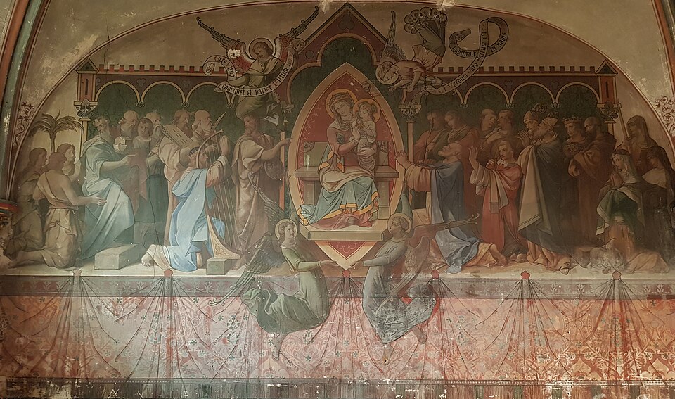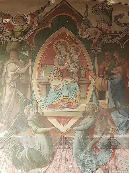La salle dite des catéchismes, construite en 1846 comme chapelle indépendante, a été annexée à l'église entre 1860 et 1880 et fait l'objet d'une inscription aux monuments historiques depuis le 30 novembre 2009. Cette salle, ainsi nommée parce qu'elle accueillait des cours, est entièrement couverte de peintures murales attribuées au chanoine Étienne-Léon Jouy, dit Stéphane Jouy. Sur le mur nord se déploie une Vierge à l'Enfant dans une mandorle entourée d'anges et de saints ou de figures en procession ; sur le mur est figure un Trône de grâce ; le mur sud était occupé par une vaste toile représentant la Cène, aujourd'hui disparue. Ces œuvres illustrent une catéchèse conforme aux préoccupations d'un aumônier soucieux de ses responsabilités et traduisent la volonté de leur auteur, autodidacte et partisan de la tradition gothique, d'instruire, d'édifier et d'intéresser. La municipalité a signé en février 2020 une convention avec la Fondation du patrimoine en vue de la restauration de la salle.