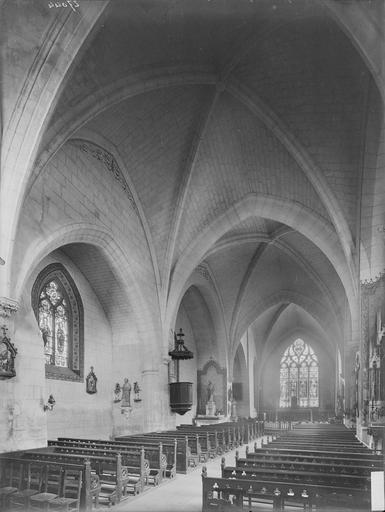 Édifice du XVIe siècle, terminé par un chevet droit percé d'une grande verrière et par un pignon de façade orné d'une imposante rosace. L'intérieur présente quatre travées de largeurs différentes, couvertes de voûtes d'arêtes et flanquées de chaque côté de parties en berceau entre des contreforts intérieurs. L'ornementation est de style Renaissance.