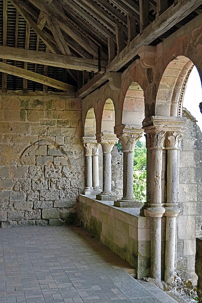 Un court clocher recouvert d'ardoises, d'époque plus récente, se dresse à la croisée du transept.