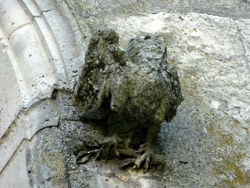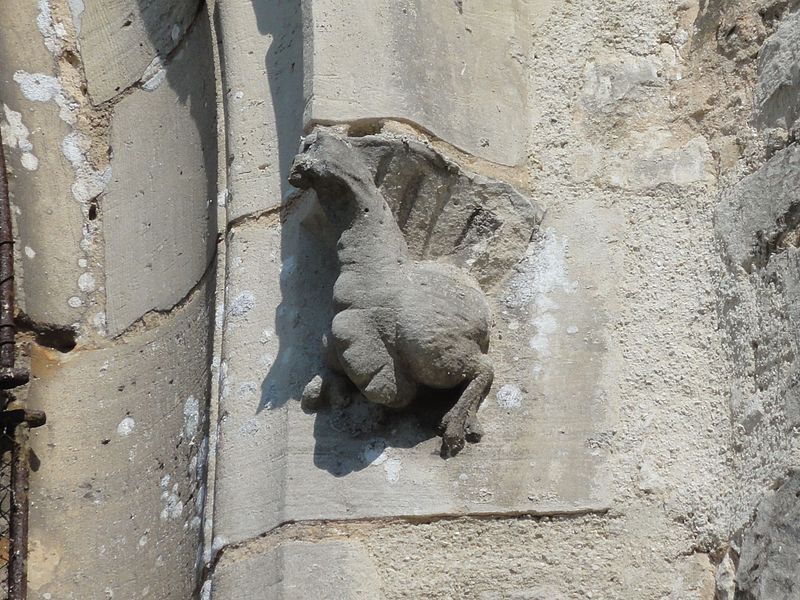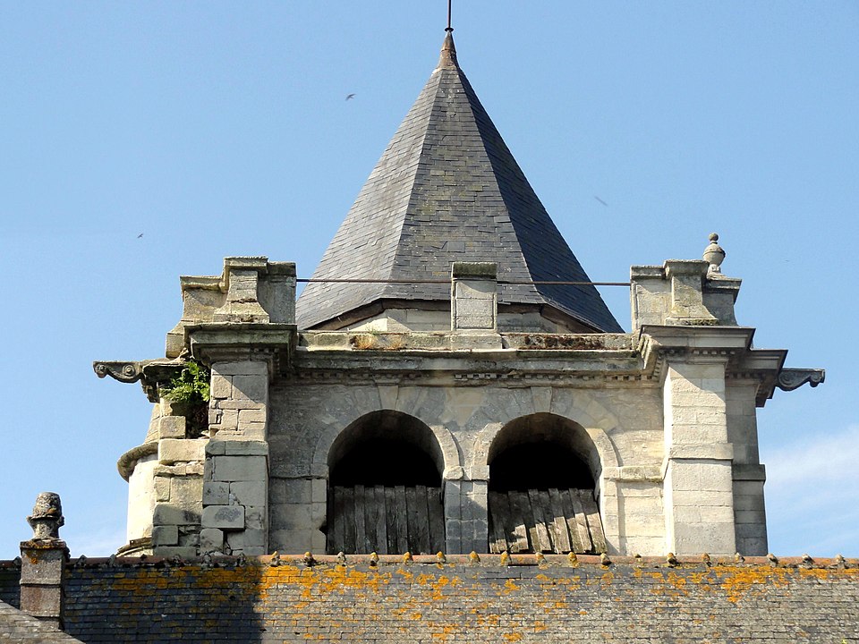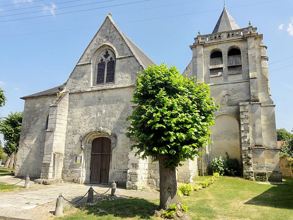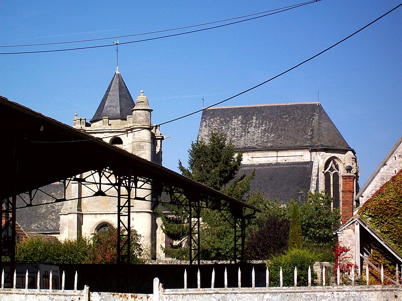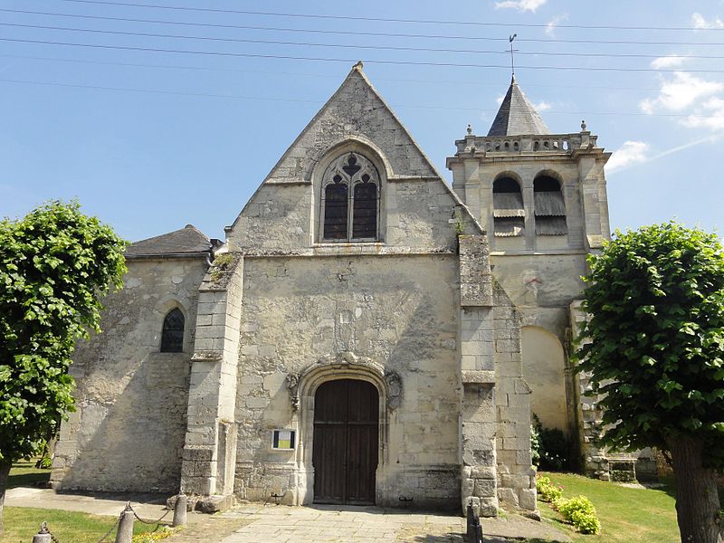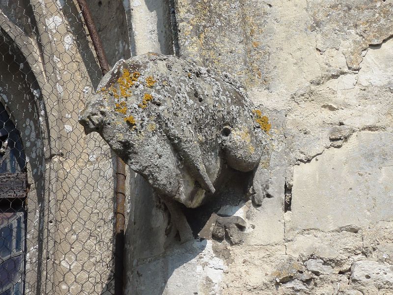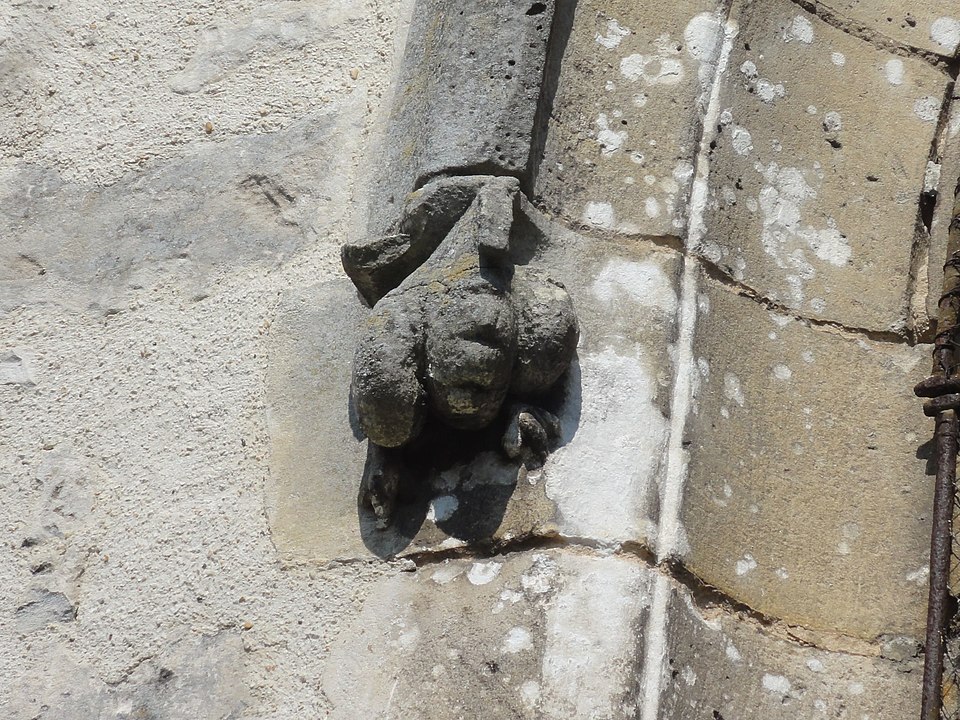 À l'extérieur, le chevet et les contreforts présentent une ornementation flamboyante faite d'arcatures, d'accolades garnies de crochets, de chimères et d'animaux fantastiques, tandis que l'appareil des murs reste inégal. Le clocher, élevé en moellons et pierres de taille, présente un étage de beffroi ajouré de baies en plein cintre, une corniche à denticules, des gargouilles sculptées et une flèche octogonale en charpente couverte d'ardoise.