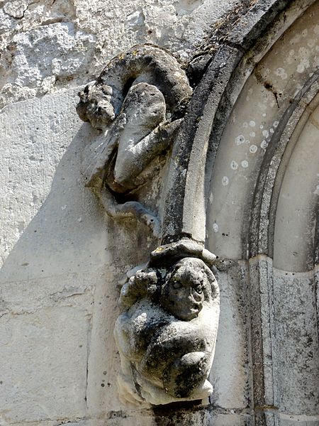 Le portail occidental, de style flamboyant, s'ouvre en anse de panier et est encadré de moulures prismatiques ; il est décoré de chimères sculptées et surmonté d'une fenêtre haute composée de lancettes trilobées. À l'intérieur, quatre grandes arcades en tiers-point séparent la nef du bas-côté ; deux chapiteaux des grandes arcades présentent un décor sculpté remarquable, où l'on reconnaît une colombe, une tête de chien, un dragon, un personnage, des pampres et des feuilles de chou. Le bas-côté nord offre peu d'éléments dignes d'intérêt hormis ses fenêtres flamboyantes et ses culots moulurés qui reçoivent les fausses voûtes.