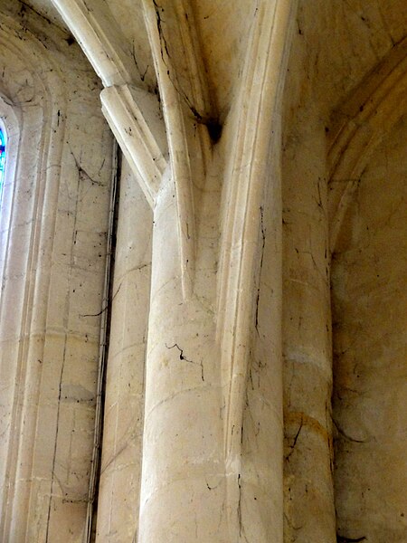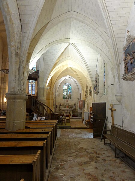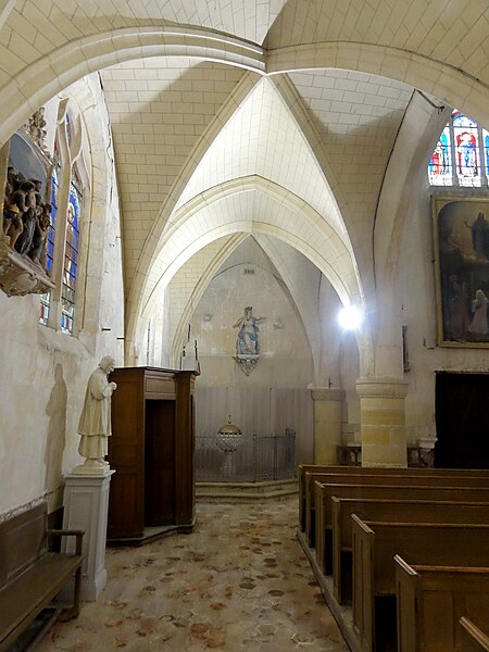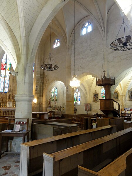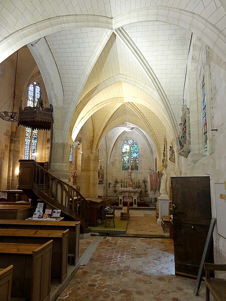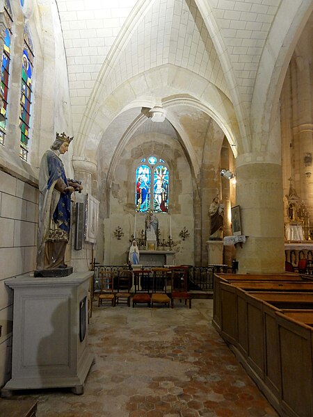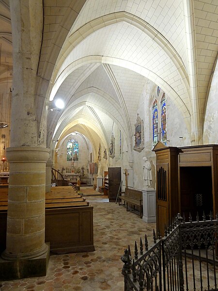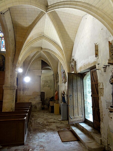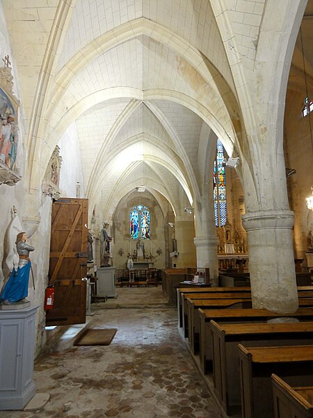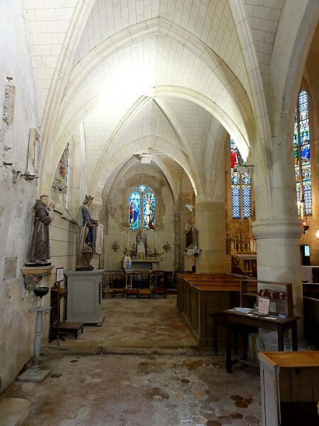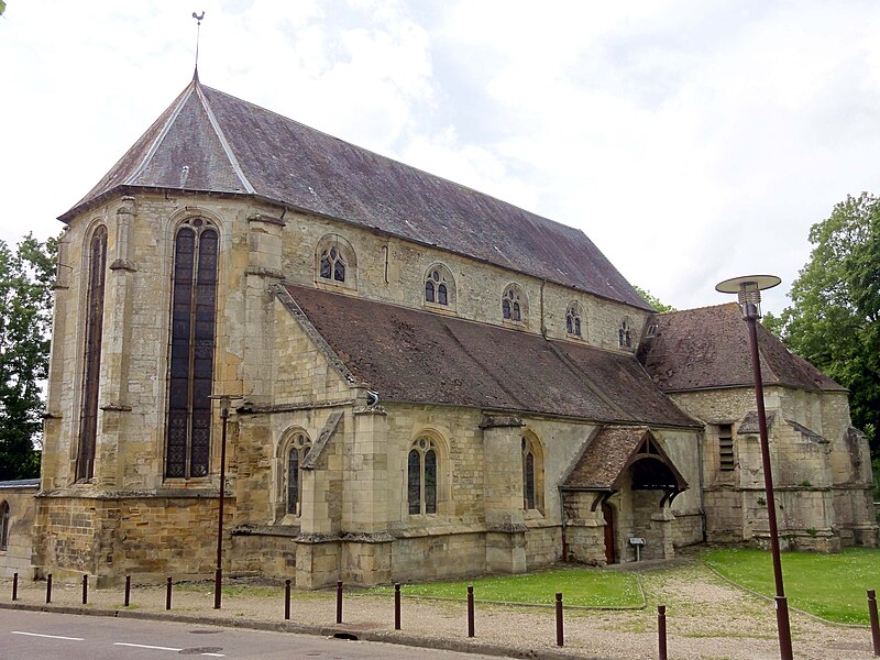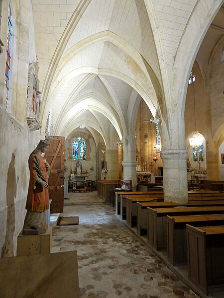 L'église Saint-Germain de Mézy-sur-Seine est bâtie sur l'emplacement d'un premier édifice du XIe siècle et la paroisse est mentionnée dans les sources en 1190. Elle a fait l'objet de plusieurs campagnes de construction : les parties basses du clocher datent du XIIIe siècle et l'édifice a pris sa forme actuelle au milieu du XVIe siècle, comme l'atteste l'inscription de consécration de 1554. L'abbé Richard Gatel puis Nicolas de Pardieu, seigneur de Mézy, ont entrepris la reconstruction du chœur et du chevet. Incendiée et partiellement détruite pendant la guerre de Cent Ans, l'église a été presque entièrement rebâtie à partir des années 1540 dans un gothique flamboyant rustique où les influences de la Renaissance se limitent à la modénature du chœur et au remplage de certaines fenêtres. L'ensemble est construit en pierre et moellons calcaires et couvert en ardoise. Le plan associe un vaisseau central élancé, un chevet polygonal à trois pans et deux bas-côtés qui butent contre deux chapelles latérales à chevet plat ; une sacristie a été ajoutée entre l'abside et le bas-côté sud. Les voûtes sont majoritairement d'ogives dont les nervures retombent sur les piles des grands arcs et sur des colonnes engagées à l'entrée de l'abside. L'ordonnancement des élévations latérales, avec un étage de fenêtres hautes, conserve probablement des dispositions héritées de l'édifice antérieur, et les grandes arcades semblent correspondre à des arcades du début du XIIIe siècle retaillées. L'intérieur se distingue par la belle ampleur du vaisseau central, dont la hauteur atteint environ le double de la largeur, et par des fenêtres hautes relativement petites inscrites dans les lunettes des voûtes. De nombreux éléments restent sobres : piliers monocylindriques, profils simples des grandes arcades et absence de sculpture attendue. Le chœur, voûté dès l'origine, présente des grandes arcades à modénature plus travaillée ; l'arc-doubleau retombe sur un faisceau de trois colonnes et l'abside à trois pans adopte un remplage de type Renaissance à deux formes en plein cintre surmontées d'un oculus. La voûte de l'abside apparaît toutefois trop surbaissée et en décalage avec les autres parties. Les bas-côtés, d'une largeur traditionnelle, conservent des voûtes d'origine dans leurs travées orientales ; les travées antérieures reçoivent des voûtes légères remontant aux années 1870, travaux menés à l'initiative du curé de l'époque, qui ont aussi entraîné des remaniements de fenêtres et la pose de vitraux. L'église n'a jamais été entièrement achevée : le clocher n'a pas été élevé au‑delà de sa souche mais abrite un beffroi en charpente et une cloche, et le portail occidental reste dépourvu d'ornementation. À l'extérieur, l'édifice est en grande partie en moellons, la pierre de taille étant employée pour les contreforts, chaînages, pourtours de baies et corniches ; la pierre tendre a provoqué des phénomènes d'érosion, notamment au clocher. Les contreforts présentent des dispositions variées — polygonaux aux angles de l'abside, larges et plats à l'intersection abside/nef, absents sur les murs gouttereaux du vaisseau central — et une corniche moulurée du XVIe siècle subsiste sur le chœur et le bas-côté nord. Parmi les trois portails, seul celui du nord est décoré mais inachevé ; la souche du clocher se signale par des contreforts massifs et une niche à statue fruste. L'église, implantée perpendiculairement à la rue du Château avec son chevet donnant sur la voie, est dégagée de constructions mitoyennes ; l'ancien cimetière et le portail principal se trouvent au nord, un terrain municipal et un parking avec portail secondaire se situent au sud. Inscrite au titre des monuments historiques par arrêté du 19 juillet 1926, l'église dépend aujourd'hui de la paroisse de Meulan et accueille des messes dominicales un dimanche sur cinq à 9 h. Le mobilier comprend trois éléments classés au titre des objets : une statuette de la Vierge à l'Enfant du XVIIe siècle et quelques ornements liturgiques du XIXe siècle en tapisserie à point, conservés en mairie, ainsi que la plaque commémorative de la consécration de 1554 scellée au début de la nef ; l'inscription gravée en caractères gothiques et rehaussée de barbotine rouge rappelle la date, la dédicace par Étienne Paris, évêque suffragant, et les indulgences promises aux fidèles.